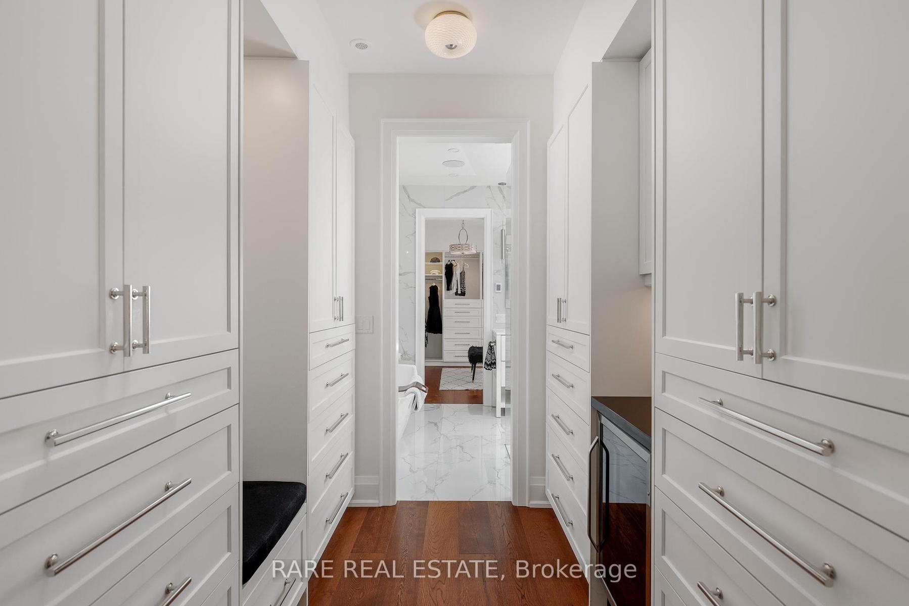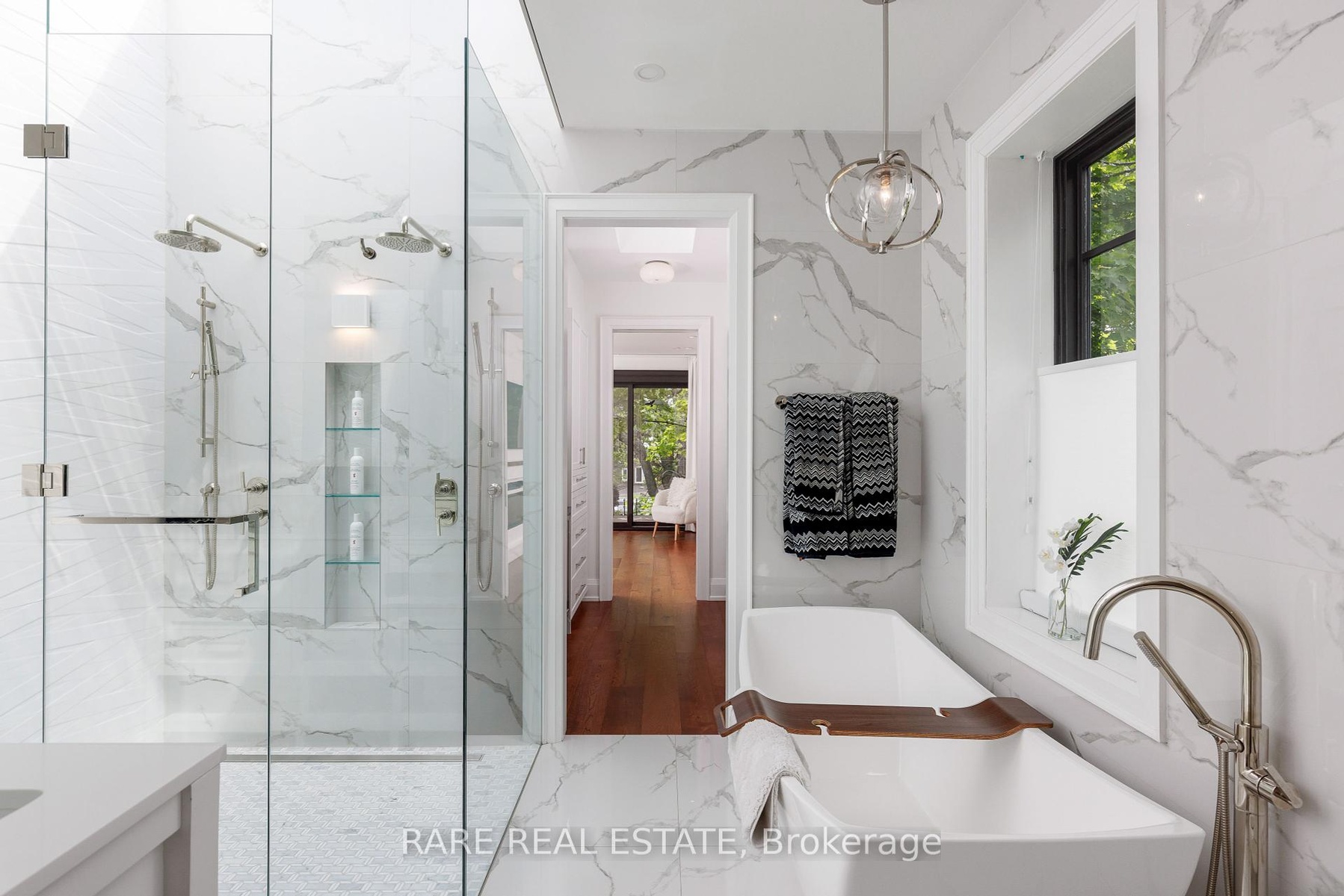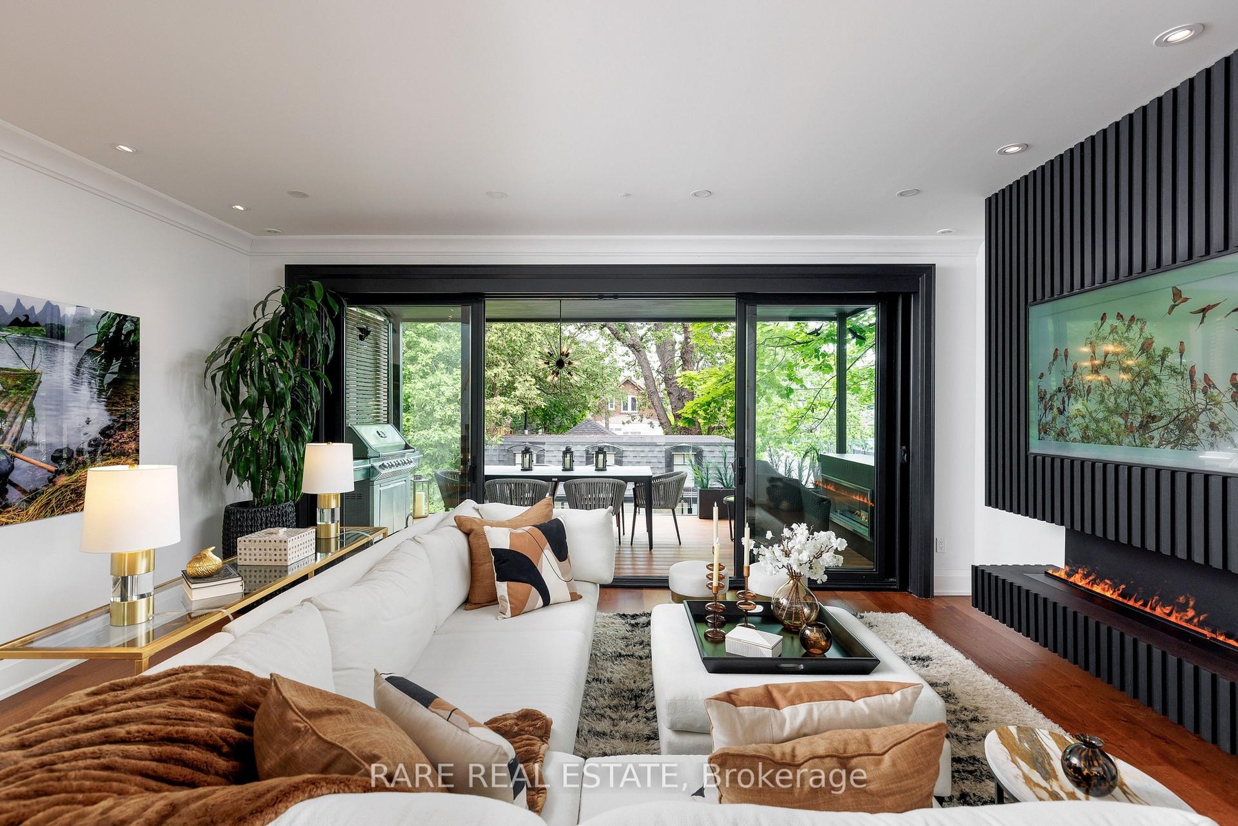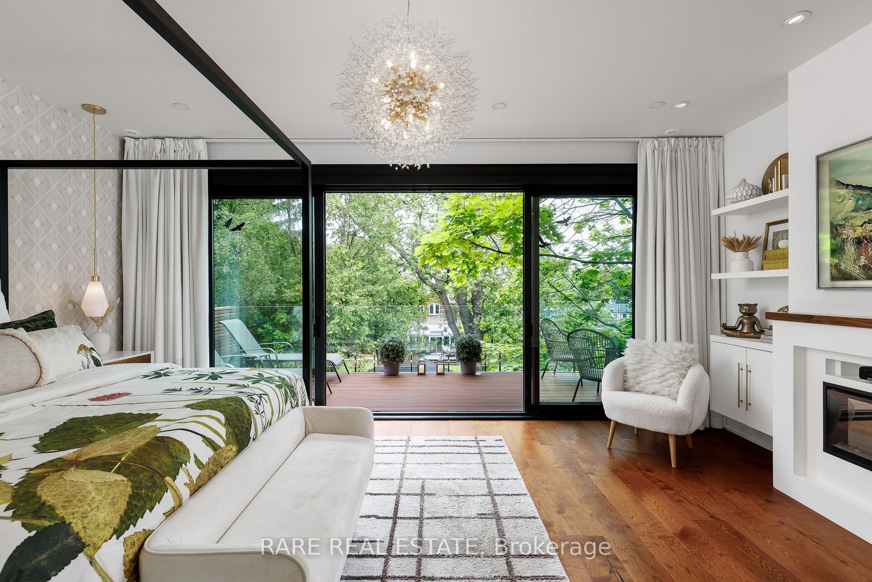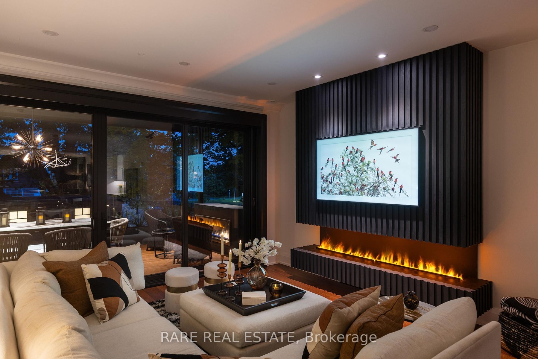 A stunning work of art. A custom home, built with a passion for design and architecture, and attention to every detail. Situated on a majestic corner lot with picturesque landscaping, wide backyard, views of the water and steps to the waterfront parks and Lake Shore shops. Fully custom home with 3,672 sqft above grade space, no basement, 9 foot ceilings on all levels and 5 above grade bedrooms. A home where luxury and warmth come together. Every inch of this home has been masterfully curated with the finest quality finishes and technologies, creating a space that is both breathtaking and inviting. Fully open main level with floating wood and glass staircase that fills the room with sunlight. Designer kitchen with a massive 10 ft kitchen island, and 5 foot Galley Kitchen workstation sink with triple faucets. Double door walk out to the covered terrace overlooking the backyard gardens. Luxurious and relaxing primary suite with views of the sunrise over the water and a walk out to the terrace set within the treetops. Complete with his walk-in closet and her walk-in dressing room with custom wall to wall cabinets and makeup vanity. The backyard's professionally designed landscaping envelops the home in natural beauty and privacy, a cottage setting in the city. The garage completes the outdoor entertaining with a cabana bar glass garage door and rough in mini kitchen. Rough-in kitchen on lower level for in-law suite. An abundance of features and technology for comfortable everyday living and elevated entertaining. Hi-Velocity heat/cool air system with 4 thermostat control zones (1st floor, 2nd floor, 3rd floor, Principal suite). 6 zone in-floor radiant heating on ground level and full bathrooms. Voice & phone controlled smart home integration with custom Lutron lighting control system and Sonos sound system. 3 Samsung 65 inch Frame TVs integrated into the fireplace walls with Sonos play bars. See full feature list. Dressing room can be converted back to the 5th bedroom.