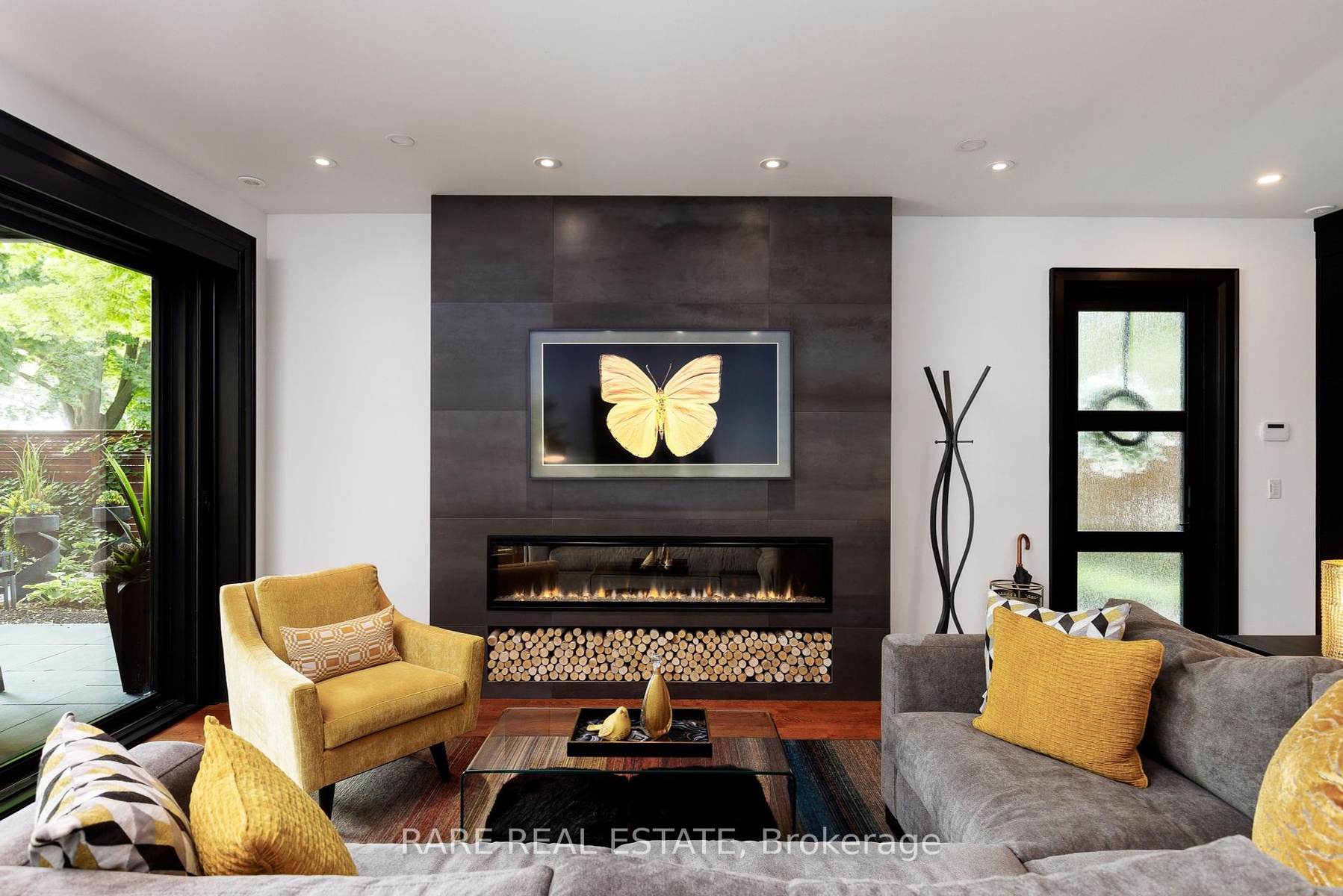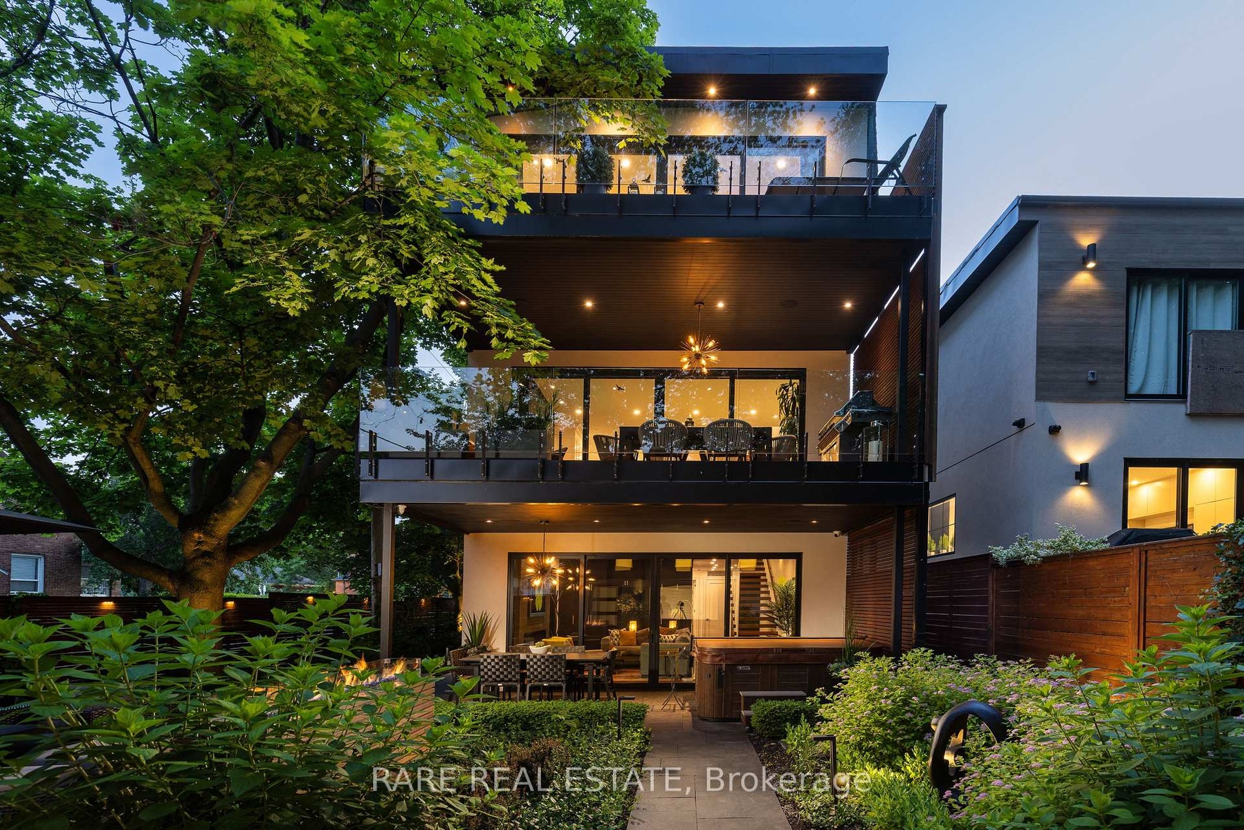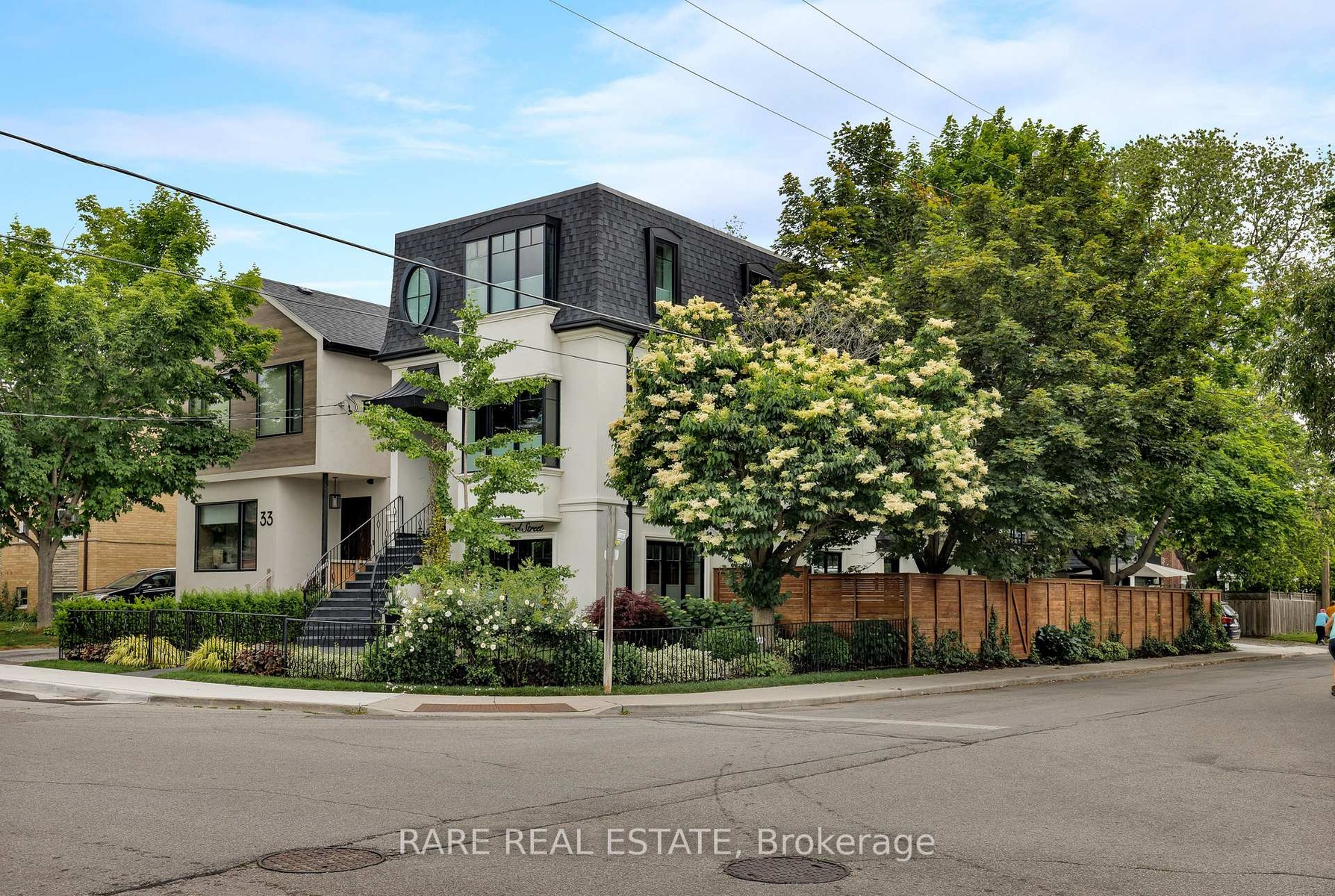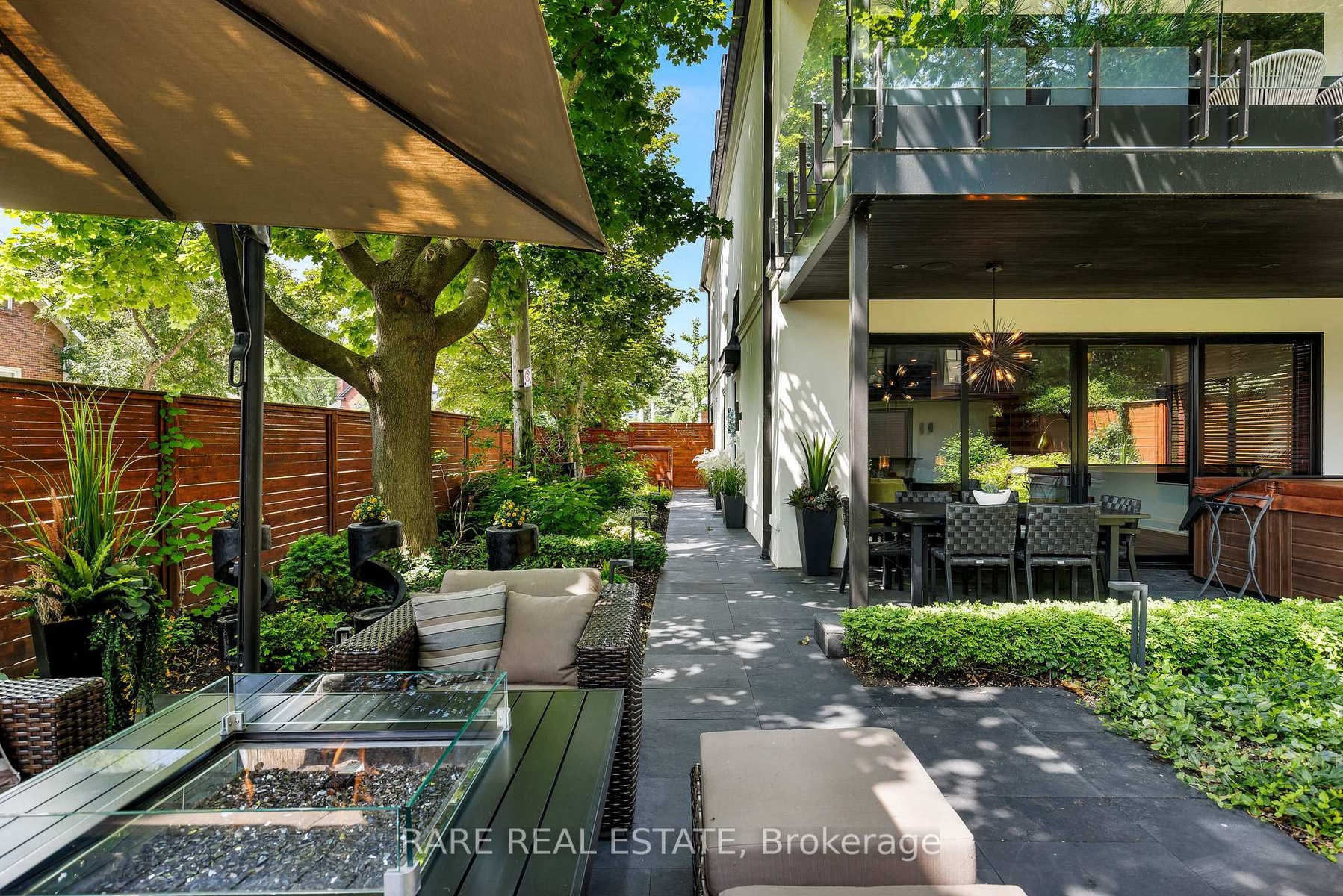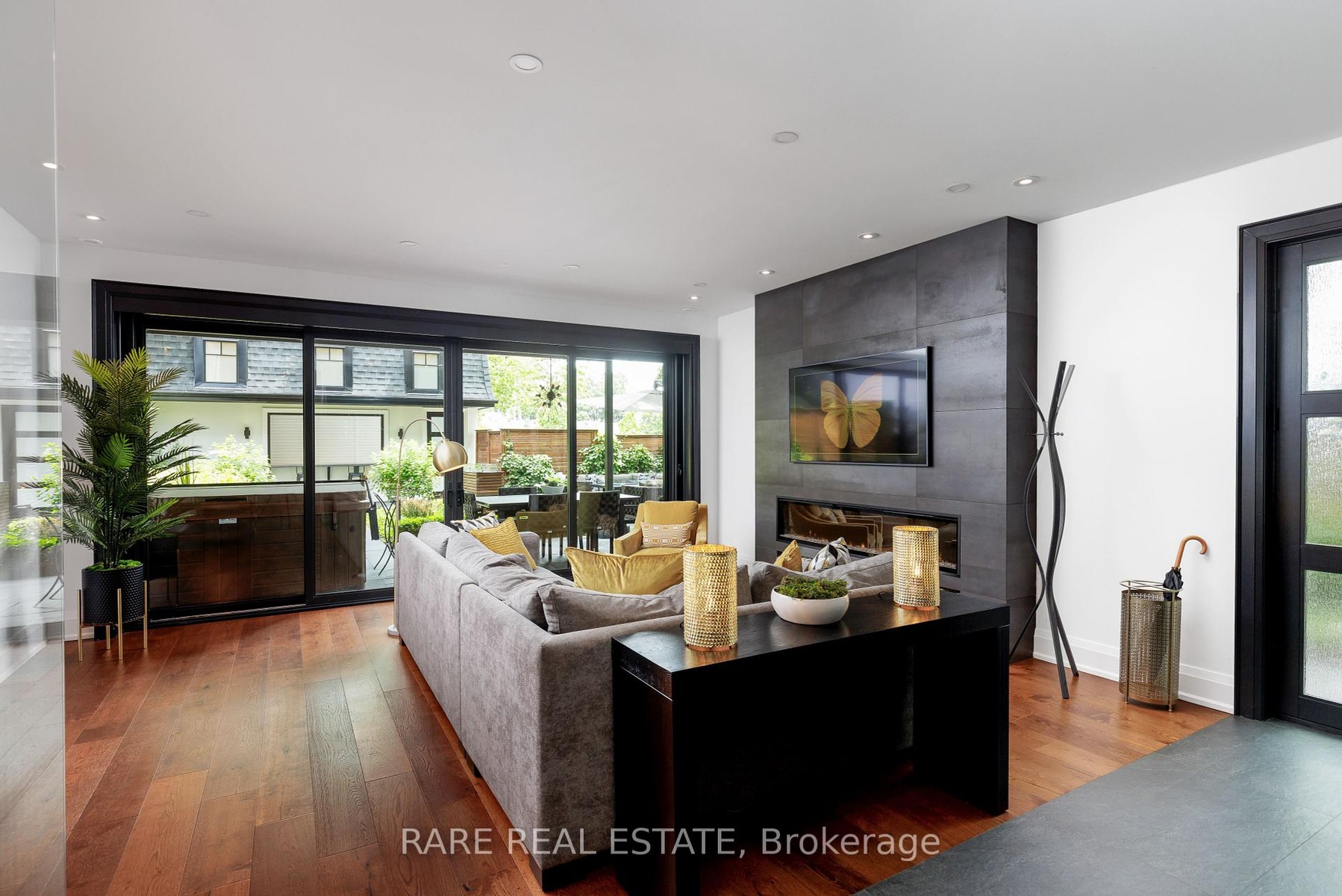 A stunning work of art. A custom home, built with a passion for design and architecture, and attention to every detail. Situated on a majestic corner lot with picturesque landscaping, wide backyard, views of the water and steps to the waterfront parks and Lake Shore shops. Fully custom home with 3,672 sqft above grade space, no basement, 9 foot ceilings on all levels and 5 above grade bedrooms. A home where luxury and warmth come together. Every inch of this home has been masterfully curated with the finest quality finishes and technologies, creating a space that is both breathtaking and inviting. Fully open main level with floating wood and glass staircase that fills the room with sunlight. Designer kitchen with a massive 10 ft kitchen island, and 5 foot Galley Kitchen workstation sink with triple faucets. Double door walk out to the covered terrace overlooking the backyard gardens. Luxurious and relaxing primary suite with views of the sunrise over the water and a walk out to the terrace set within the treetops. Complete with his walk-in closet and her walk-in dressing room with custom wall to wall cabinets and makeup vanity. The backyard's professionally designed landscaping envelops the home in natural beauty and privacy, a cottage setting in the city. The garage completes the outdoor entertaining with a cabana bar glass garage door and rough in mini kitchen. Rough-in kitchen on lower level for in-law suite. An abundance of features and technology for comfortable everyday living and elevated entertaining. Hi-Velocity heat/cool air system with 4 thermostat control zones (1st floor, 2nd floor, 3rd floor, Principal suite). 6 zone in-floor radiant heating on ground level and full bathrooms. Voice & phone controlled smart home integration with custom Lutron lighting control system and Sonos sound system. 3 Samsung 65 inch Frame TVs integrated into the fireplace walls with Sonos play bars. See full feature list. Dressing room can be converted back to the 5th bedroom.