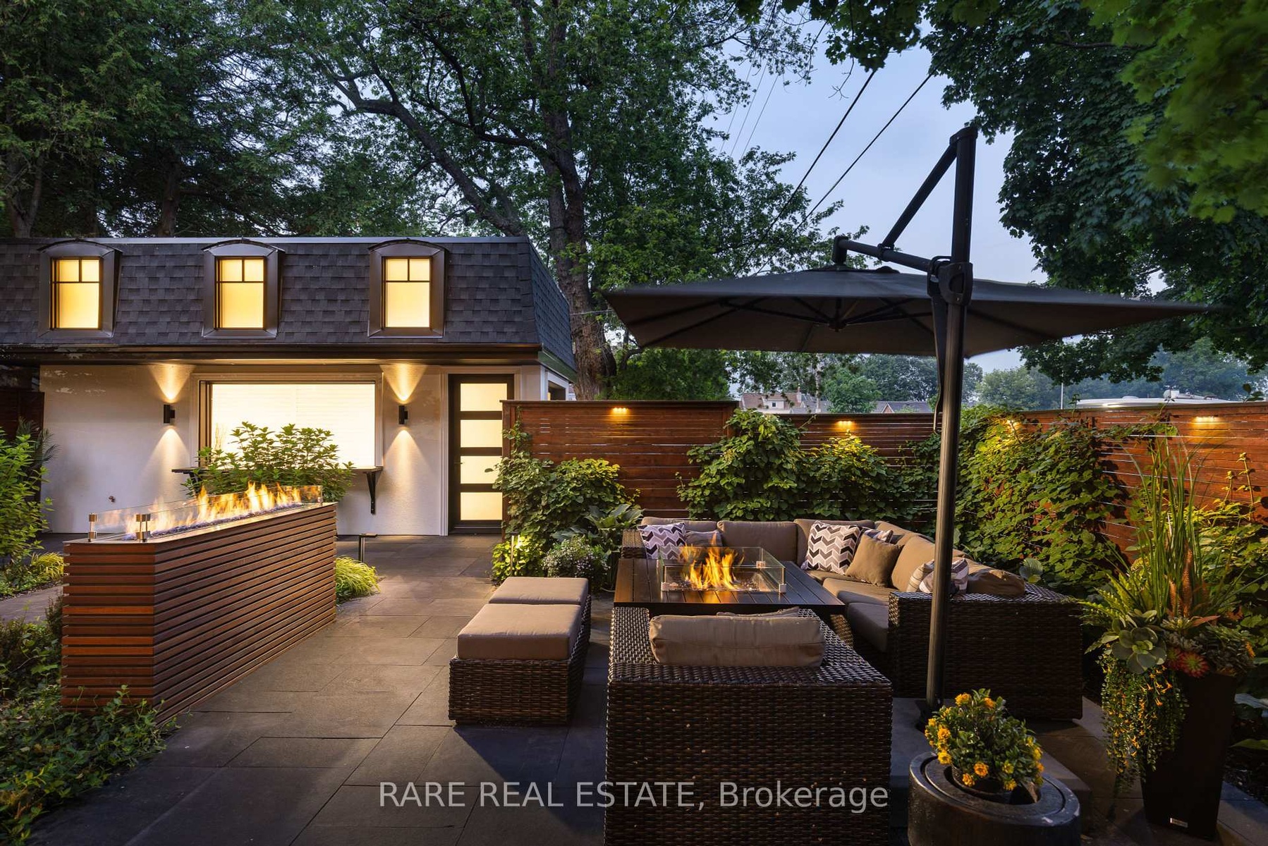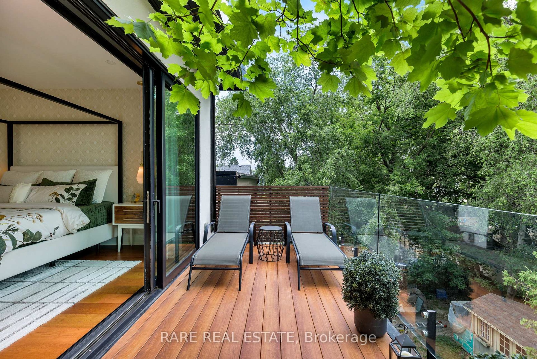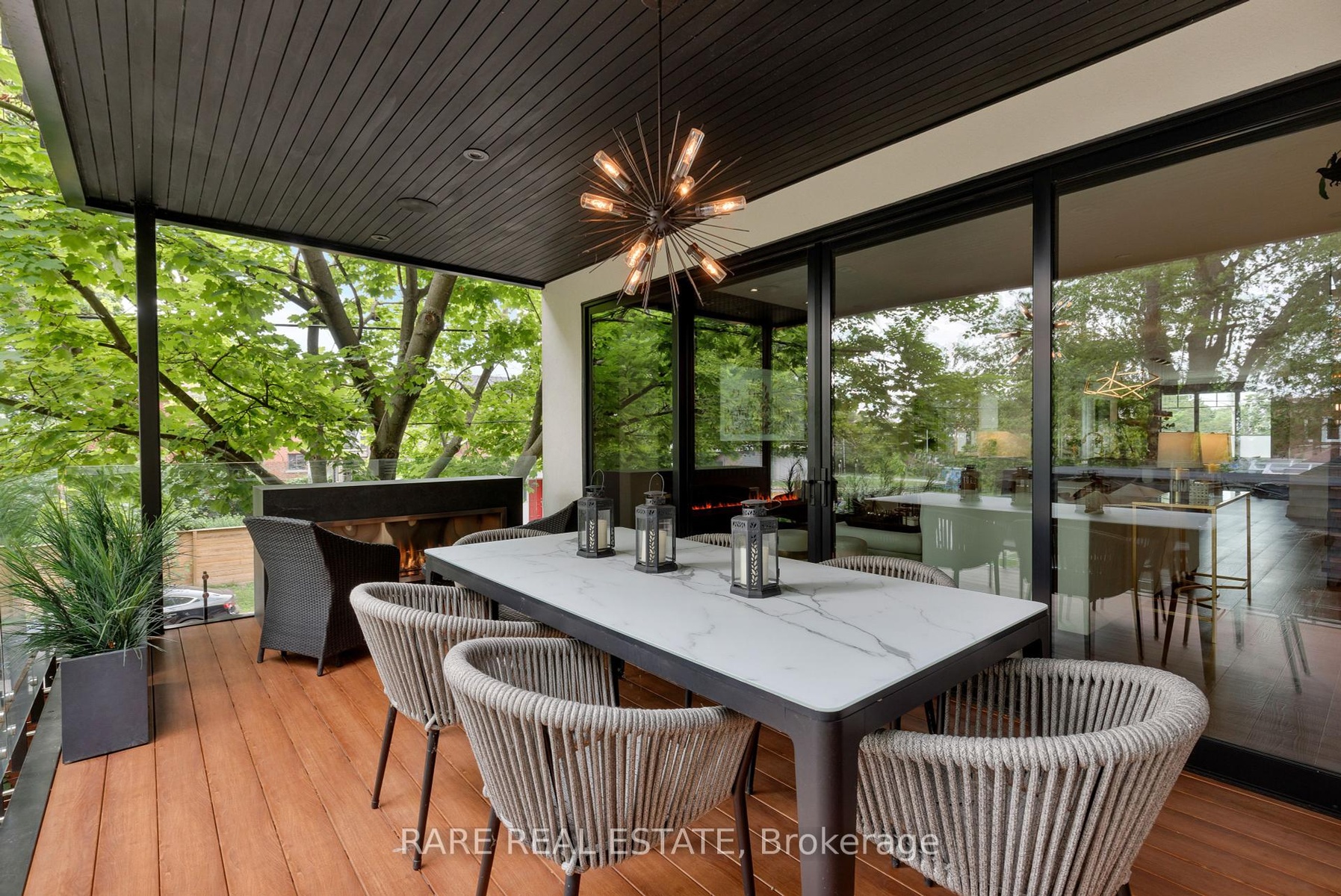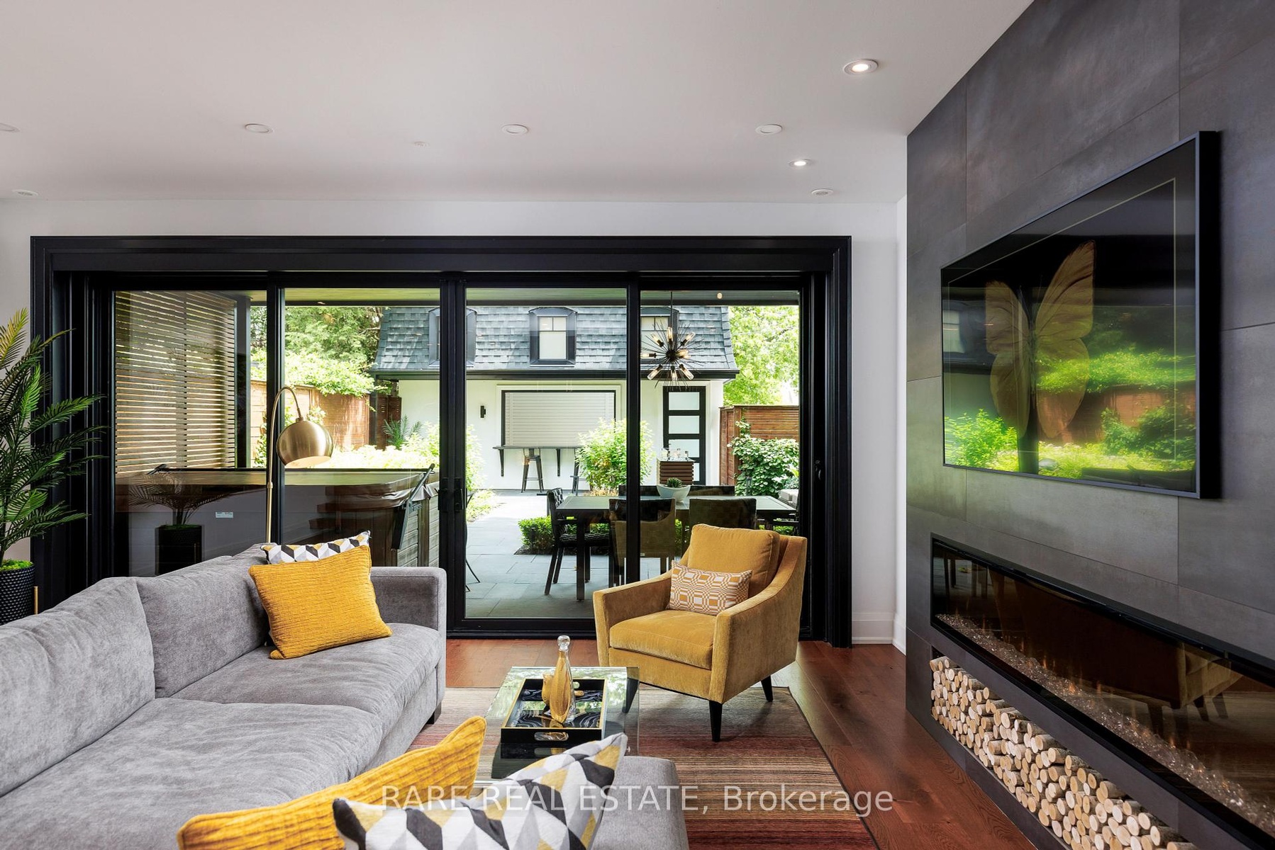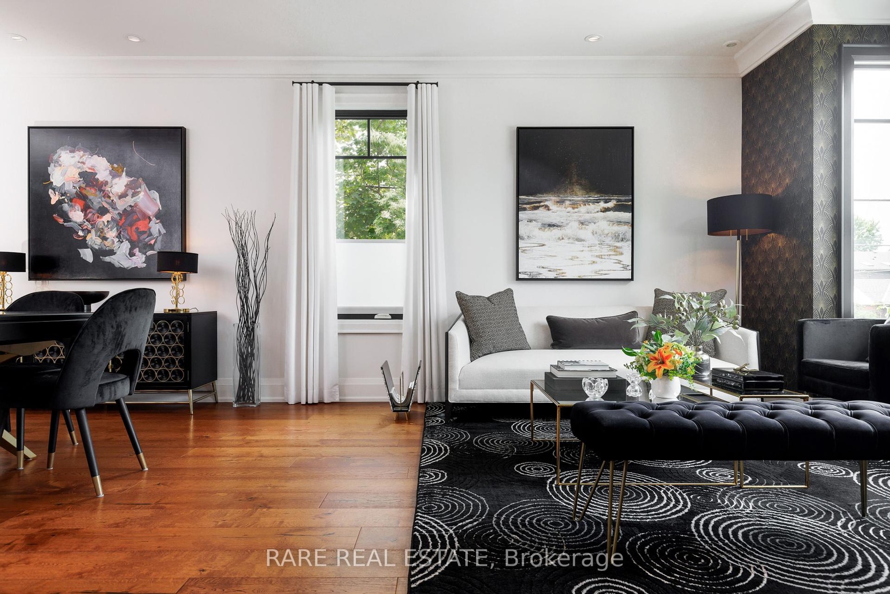 A stunning work of art. A custom home, built with a passion for design and architecture, and attention to every detail. Situated on a majestic corner lot with picturesque landscaping, wide backyard, views of the water and steps to the waterfront parks and Lake Shore shops. Fully custom home with 3,672 sqft above grade space, no basement, 9 foot ceilings on all levels and 5 above grade bedrooms. A home where luxury and warmth come together. Every inch of this home has been masterfully curated with the finest quality finishes and technologies, creating a space that is both breathtaking and inviting. Fully open main level with floating wood and glass staircase that fills the room with sunlight. Designer kitchen with a massive 10 ft kitchen island, and 5 foot Galley Kitchen workstation sink with triple faucets. Double door walk out to the covered terrace overlooking the backyard gardens. Luxurious and relaxing primary suite with views of the sunrise over the water and a walk out to the terrace set within the treetops. Complete with his walk-in closet and her walk-in dressing room with custom wall to wall cabinets and makeup vanity. The backyard's professionally designed landscaping envelops the home in natural beauty and privacy, a cottage setting in the city. The garage completes the outdoor entertaining with a cabana bar glass garage door and rough in mini kitchen. Rough-in kitchen on lower level for in-law suite. An abundance of features and technology for comfortable everyday living and elevated entertaining. Hi-Velocity heat/cool air system with 4 thermostat control zones (1st floor, 2nd floor, 3rd floor, Principal suite). 6 zone in-floor radiant heating on ground level and full bathrooms. Voice & phone controlled smart home integration with custom Lutron lighting control system and Sonos sound system. 3 Samsung 65 inch Frame TVs integrated into the fireplace walls with Sonos play bars. See full feature list. Dressing room can be converted back to the 5th bedroom.
