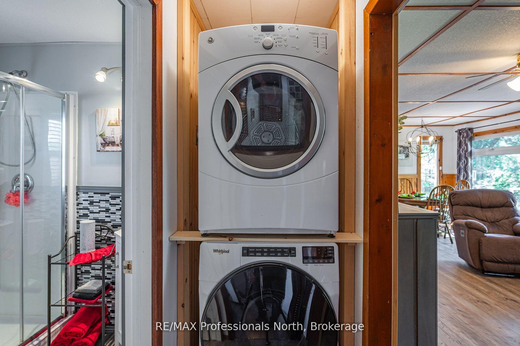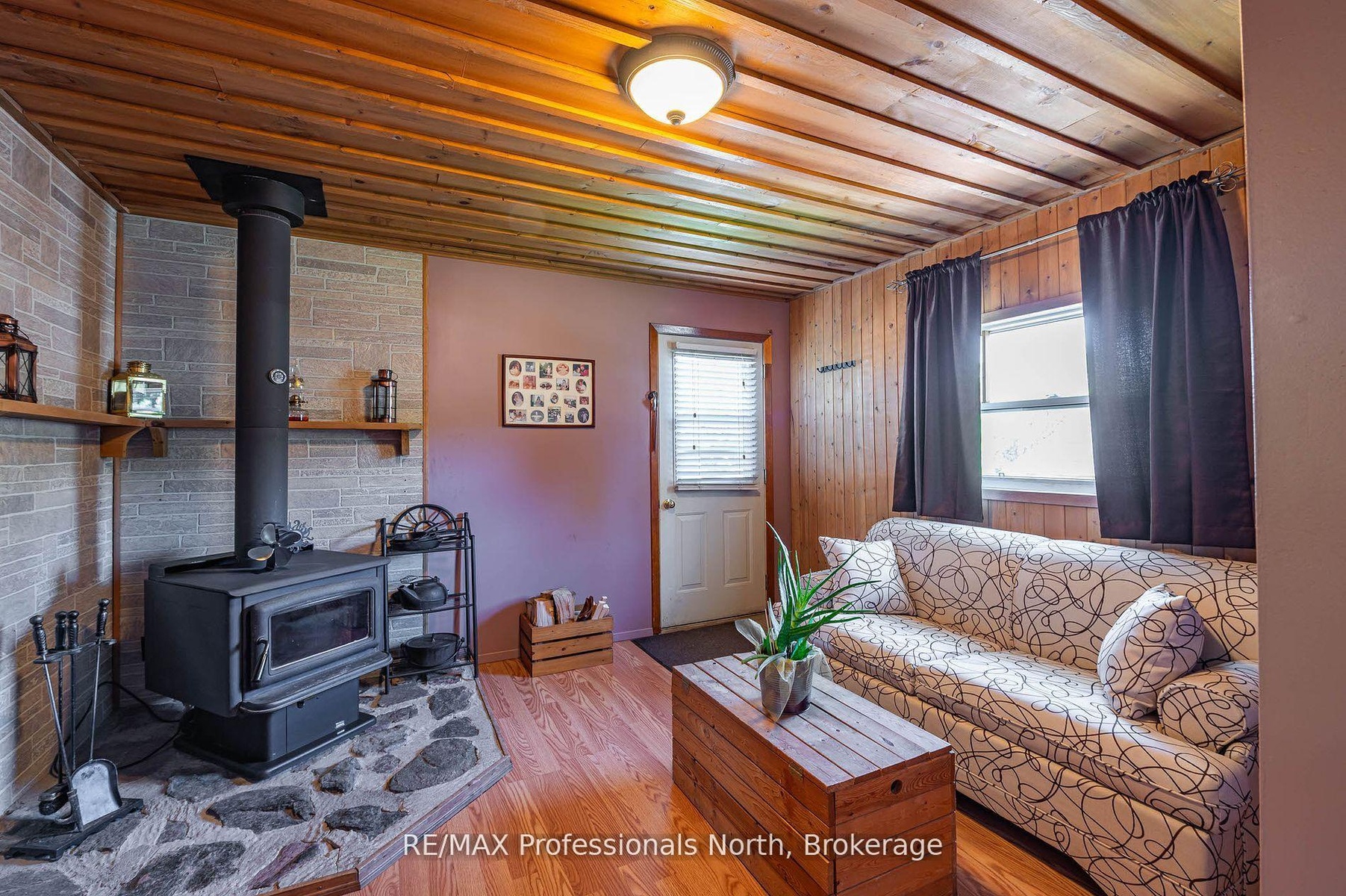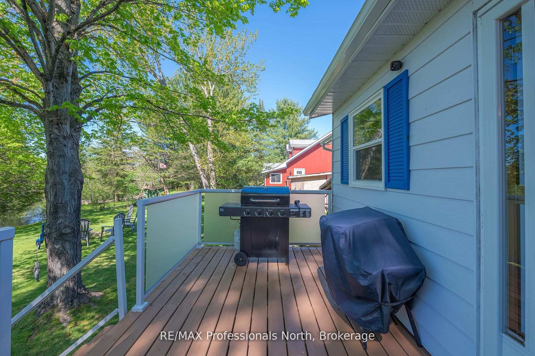 Gull River Year Round Home or Cottage! This four season home is charming with a fantastic view of the Gull River and sunsets. Minutes south of Minden it is easy to get to on this year round private road. The spacious 21 x 13 living and dining area open onto the front deck with the hot tub off to the side. Imagine sitting in the hot tub year round enjoying the natural setting, no neighbours across the river and watching the sunset!! The kitchen was updated recently and offer lots of storage and lots of prep area. The island has a butcher block and the matching countertop as well, this is portable. The mudroom is spacious when you arrive home. The woodstove in the family room keeps everyone warm in the winter months plus you have the propane forced air furnace and electric baseboards if you need them. The smallest bedroom is used as a walk-in closet now but could be changed back. The yard around the house is level with mature gardens, a fire pit, a utility shed, a craft shed and a woodshed. The double garage has a work bench with an electric heater above it. There is a full height basement under the family and bedroom for the water treatment system and extra storage. One of the best parts is you can leave the dock in the water all year long!! Steps into the river as well at the floating dock. Boat into town for live entertainment or down to Gull Lake for miles of boating.