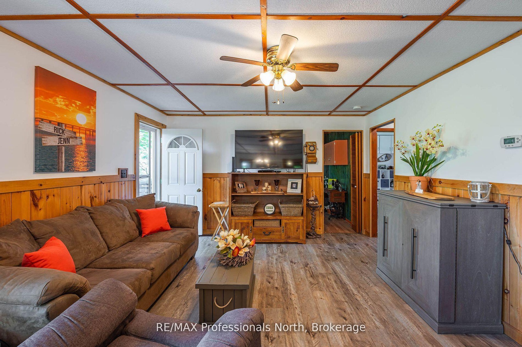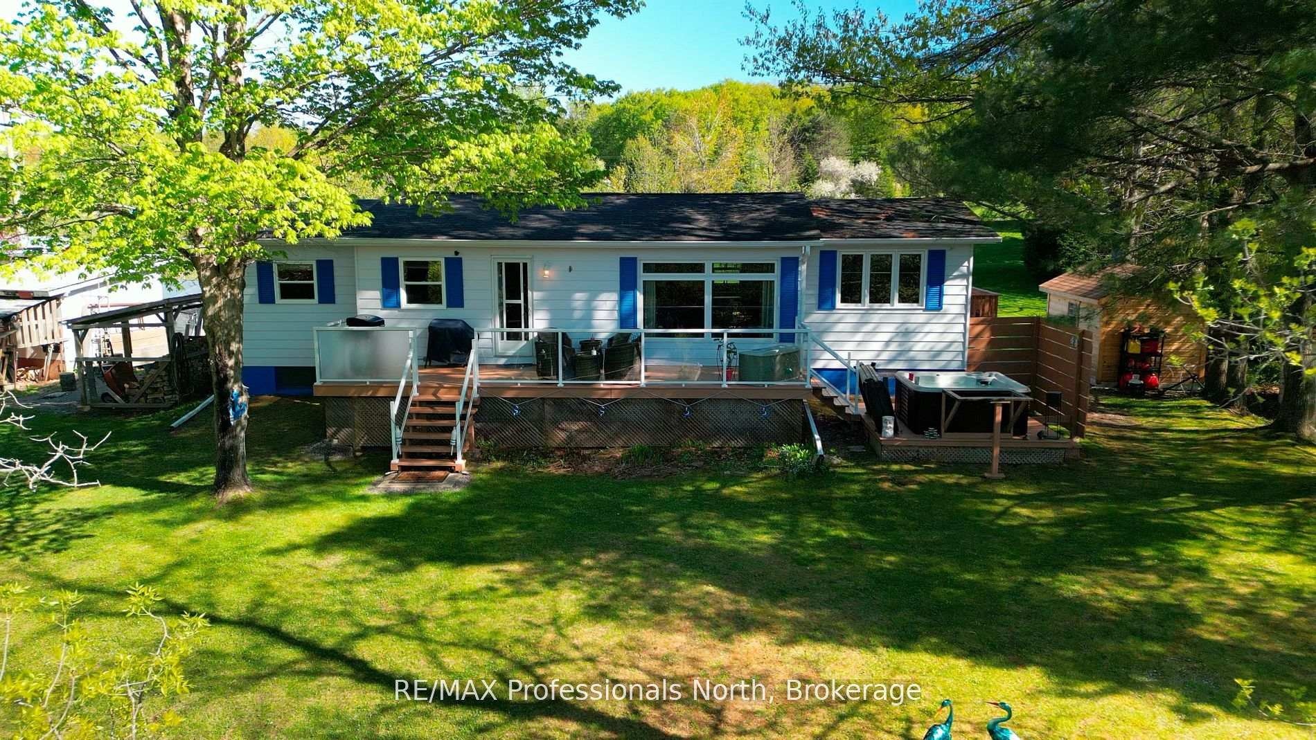 DescriptionGull River Year Round Home or Cottage! This four season home is charming with a fantastic view of the Gull River and sunsets. Minutes south of Minden it is easy to get to on this year round private road. The spacious 21 x 13 living and dining area open onto the front deck with the hot tub off to the side. Imagine sitting in the hot tub year round enjoying the natural setting, no neighbours across the river and watching the sunset!! The kitchen was updated recently and offer lots of storage and lots of prep area. The island has a butcher block and the matching countertop as well, this is portable. The mudroom is spacious when you arrive home. The woodstove in the family room keeps everyone warm in the winter months plus you have the propane forced air furnace and electric baseboards if you need them. The smallest bedroom is used as a walk-in closet now but could be changed back. The yard around the house is level with mature gardens, a fire pit, a utility shed, a craft shed and a woodshed. The double garage has a work bench with an electric heater above it. There is a full height basement under the family and bedroom for the water treatment system and extra storage. One of the best parts is you can leave the dock in the water all year long!! Steps into the river as well at the floating dock. Boat into town for live entertainment or down to Gull Lake for miles of boating.Virtual Tour: https://show.tours/e/8qzRShPAmenities- Auto Garage Door Remote