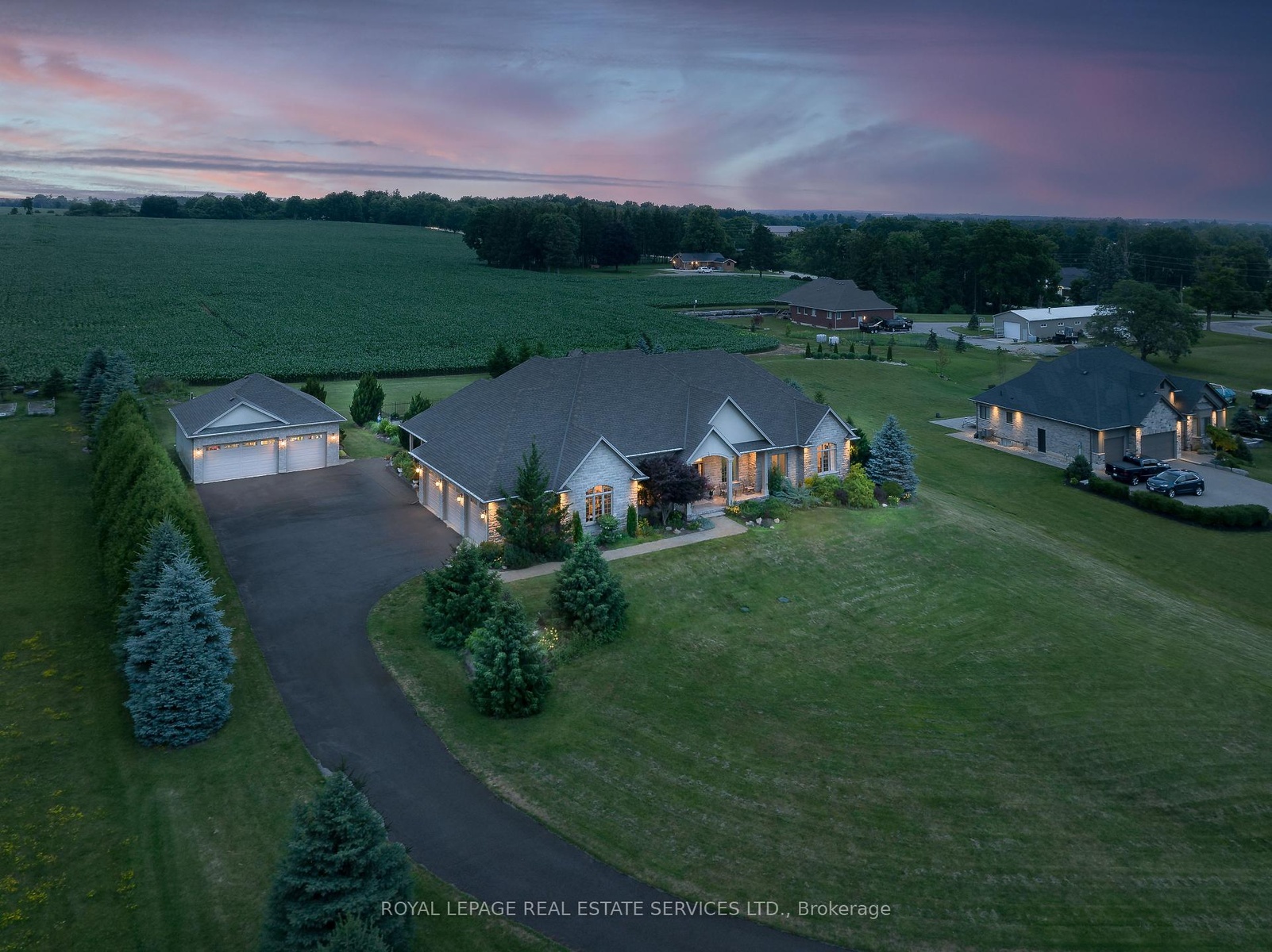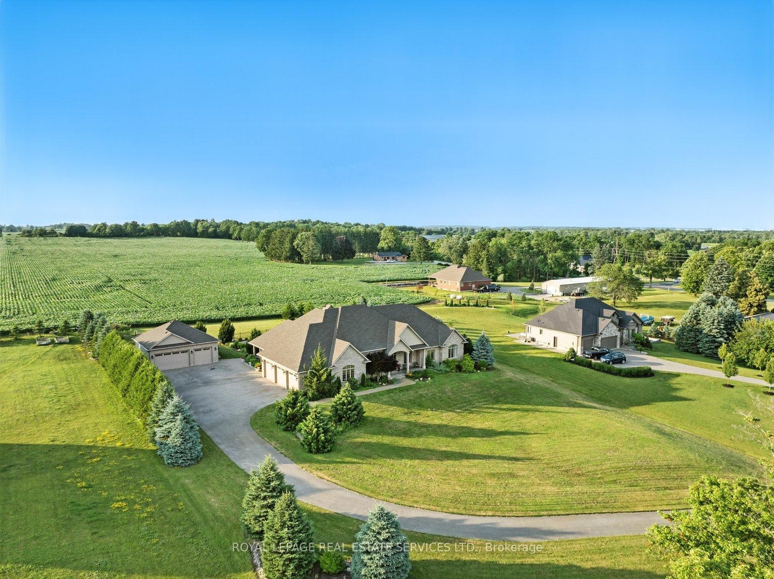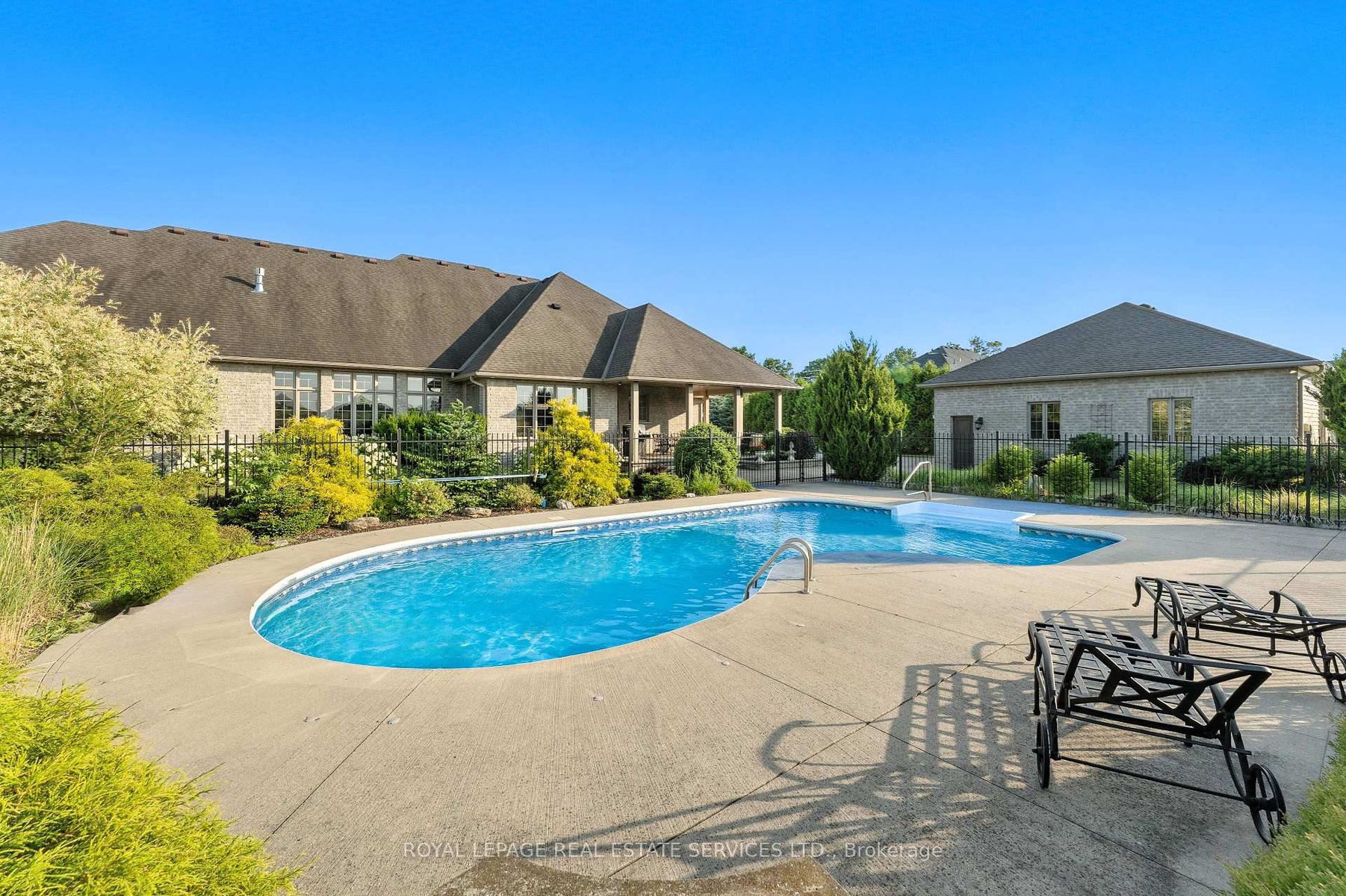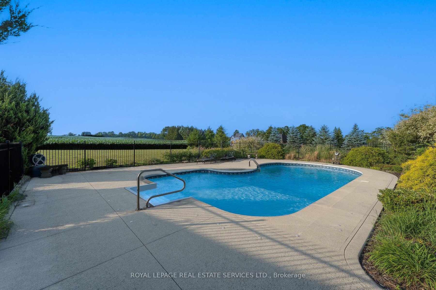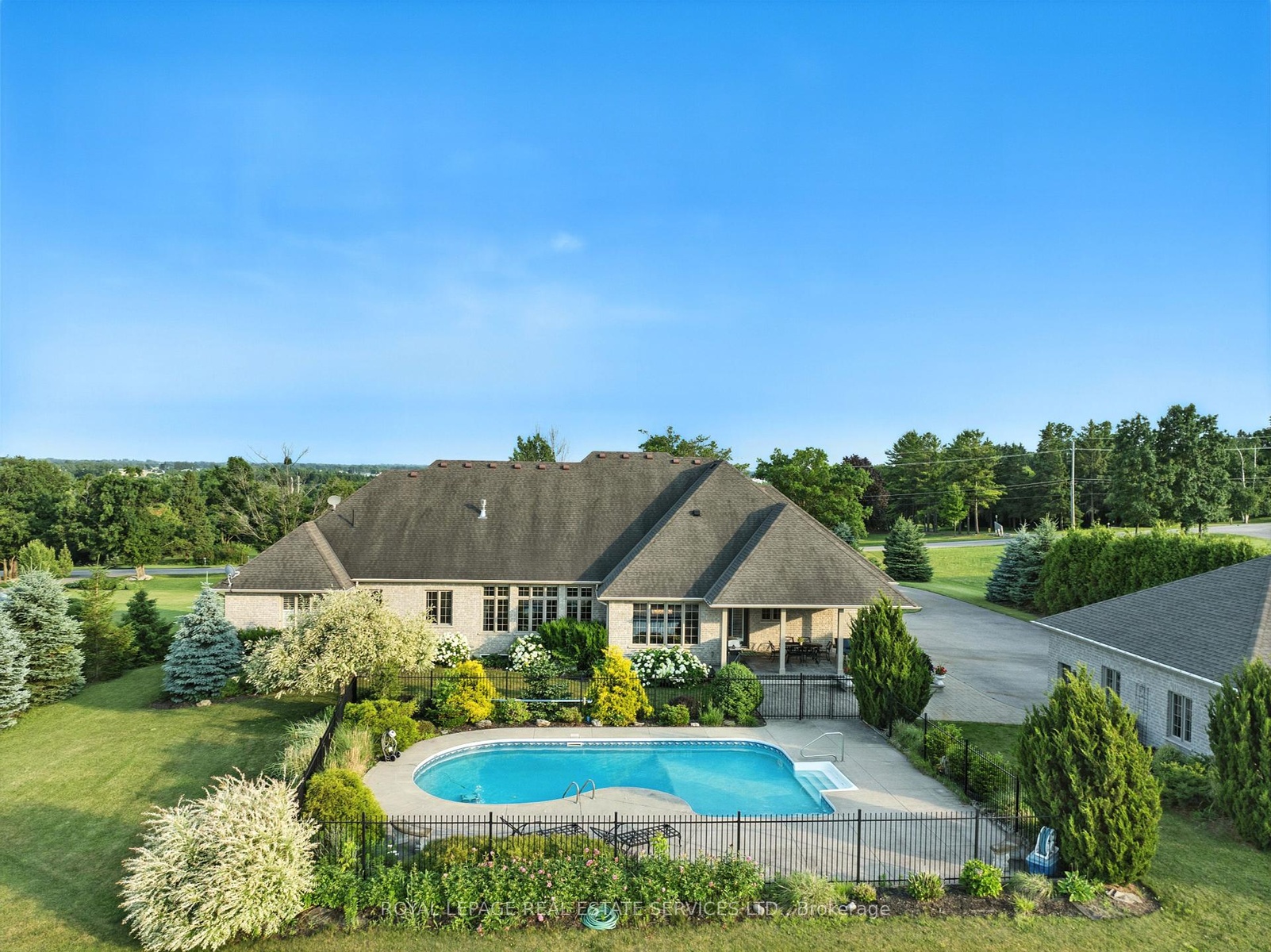 Welcome to the crown jewel at 391 Robinson Rd, majestically situated on apprx. 1.5 acres of elevated land, offering serene views of picturesque farmland and maturely landscaped garden beds with that winding driveway you've always dreamed of. Boasting over 6,100 sqft of meticulously designed living space and a perfect layout with 4+2 bedrooms and 4 washrooms, this home features a striking stone façade that commands attention and elegance. Step inside to enjoy the executive chefs kitchen equipped with an oversized island with breakfast bar, built-in oven and microwave, premium countertops, and a spacious walk-in pantry perfect for culinary enthusiasts and entertaining guests. The main floor includes two luxurious soaker tubs, ideal for unwinding after a long day, complemented by abundant storage both inside and out. This residence offers unparalleled versatility with 6+ garage spaces and a workshop option, accommodating all your vehicles and hobbies. The finished basement enhances functionality with two additional bedrooms, abundant storage areas, and convenient walkout access to the garage.  Step outside to your private inground pool, completed with a state-of-the-art robotic cleaner, offering a refreshing retreat surrounded by lush, mature gardens nourished by an advanced sprinkler system.  Additional premium features include 10ft ceilings, a water purification and softener system, air exchanger, sump pump, and walk-in closets for every bedroom on the main level. Experience the gold standard in natural light, creating a warm and inviting atmosphere throughout. This home effortlessly blends luxury, vibrance, and practicality in a peaceful setting.