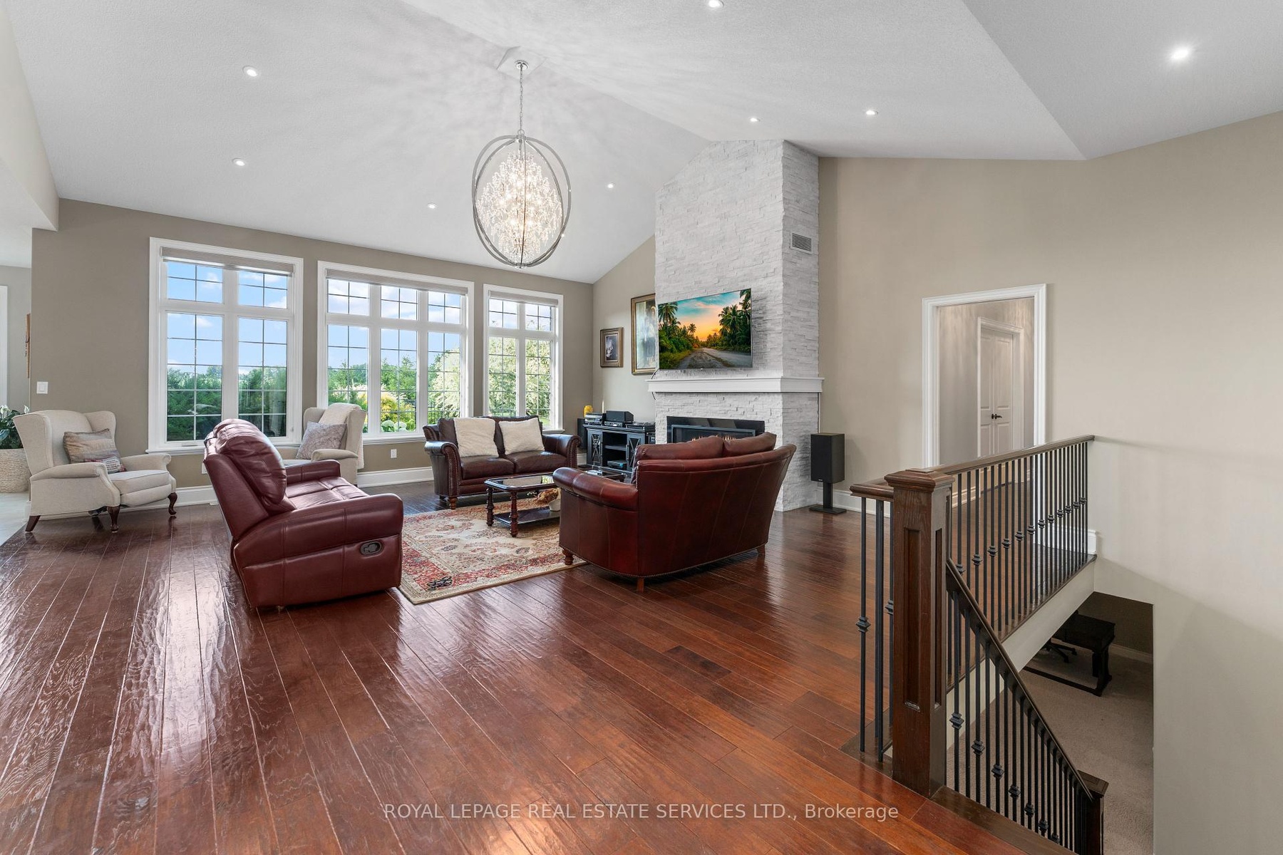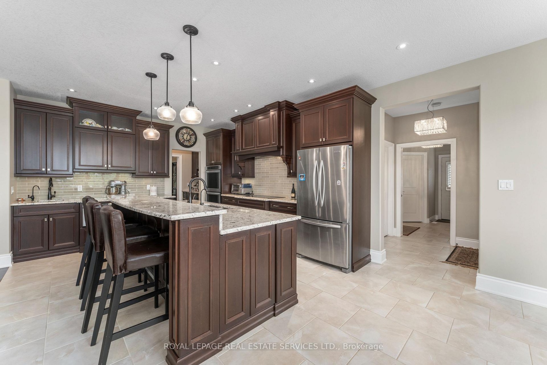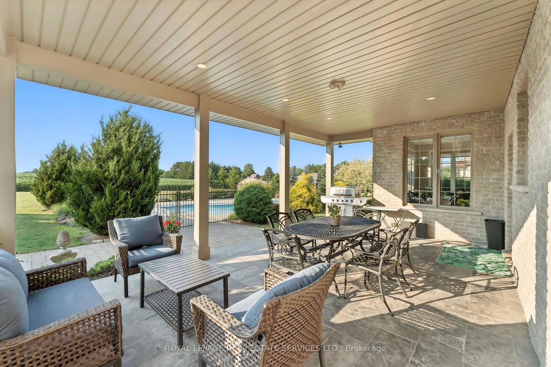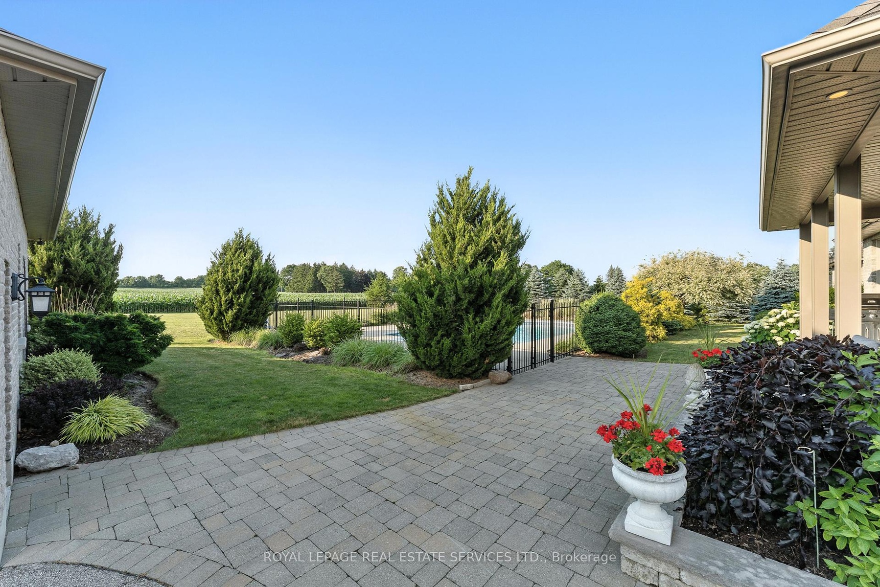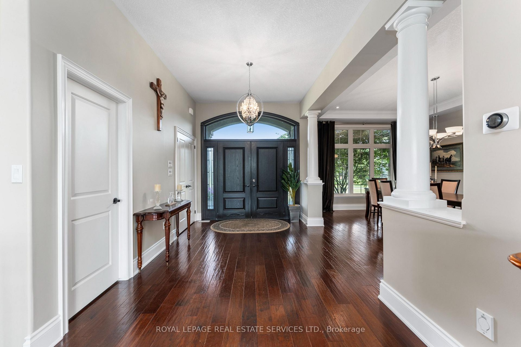 Welcome to the crown jewel at 391 Robinson Rd, majestically situated on apprx. 1.5 acres of elevated land, offering serene views of picturesque farmland and maturely landscaped garden beds with that winding driveway you've always dreamed of. Boasting over 6,100 sqft of meticulously designed living space and a perfect layout with 4+2 bedrooms and 4 washrooms, this home features a striking stone façade that commands attention and elegance. Step inside to enjoy the executive chefs kitchen equipped with an oversized island with breakfast bar, built-in oven and microwave, premium countertops, and a spacious walk-in pantry perfect for culinary enthusiasts and entertaining guests. The main floor includes two luxurious soaker tubs, ideal for unwinding after a long day, complemented by abundant storage both inside and out. This residence offers unparalleled versatility with 6+ garage spaces and a workshop option, accommodating all your vehicles and hobbies. The finished basement enhances functionality with two additional bedrooms, abundant storage areas, and convenient walkout access to the garage.  Step outside to your private inground pool, completed with a state-of-the-art robotic cleaner, offering a refreshing retreat surrounded by lush, mature gardens nourished by an advanced sprinkler system.  Additional premium features include 10ft ceilings, a water purification and softener system, air exchanger, sump pump, and walk-in closets for every bedroom on the main level. Experience the gold standard in natural light, creating a warm and inviting atmosphere throughout. This home effortlessly blends luxury, vibrance, and practicality in a peaceful setting.