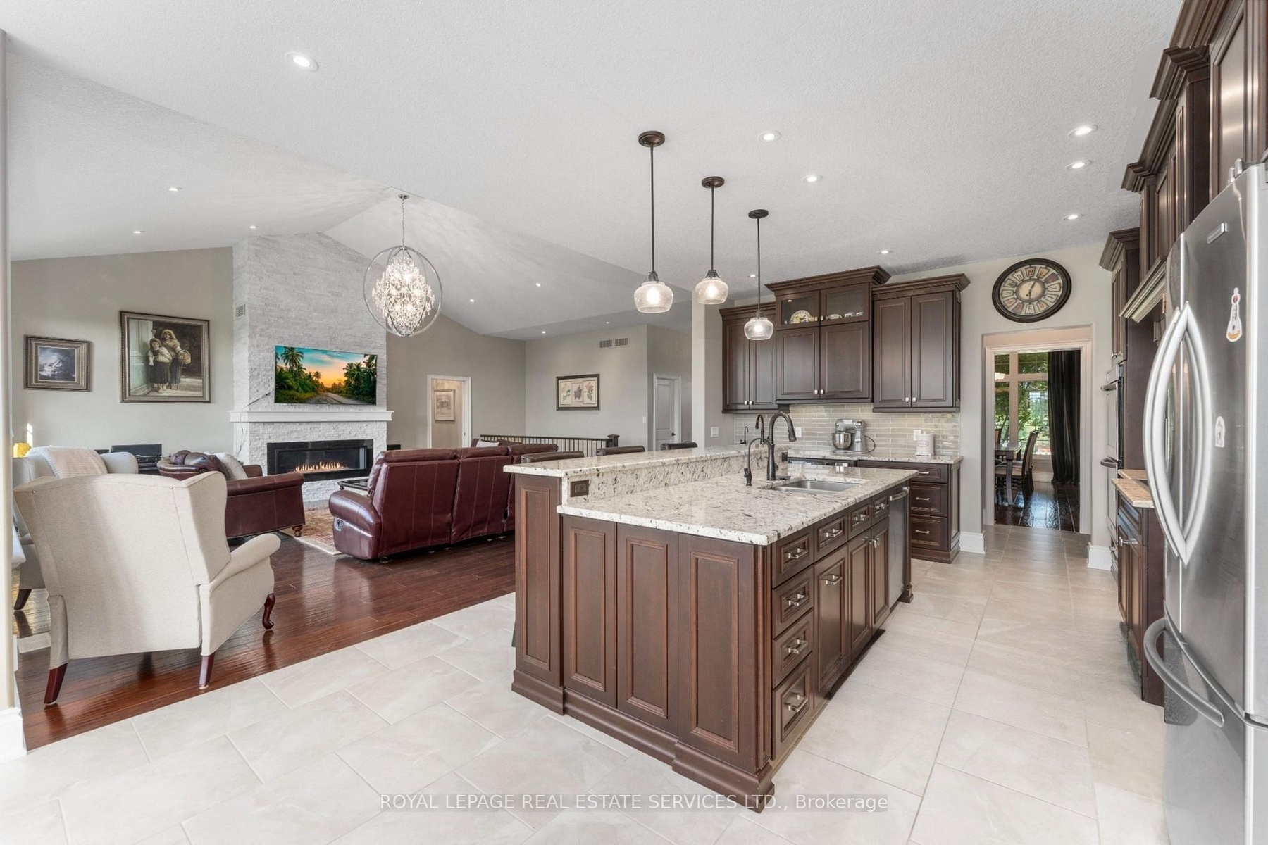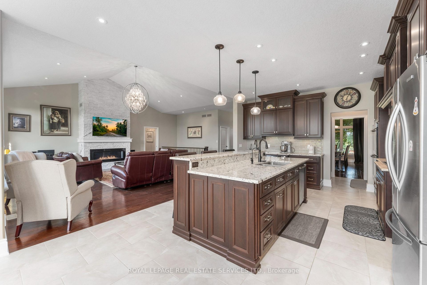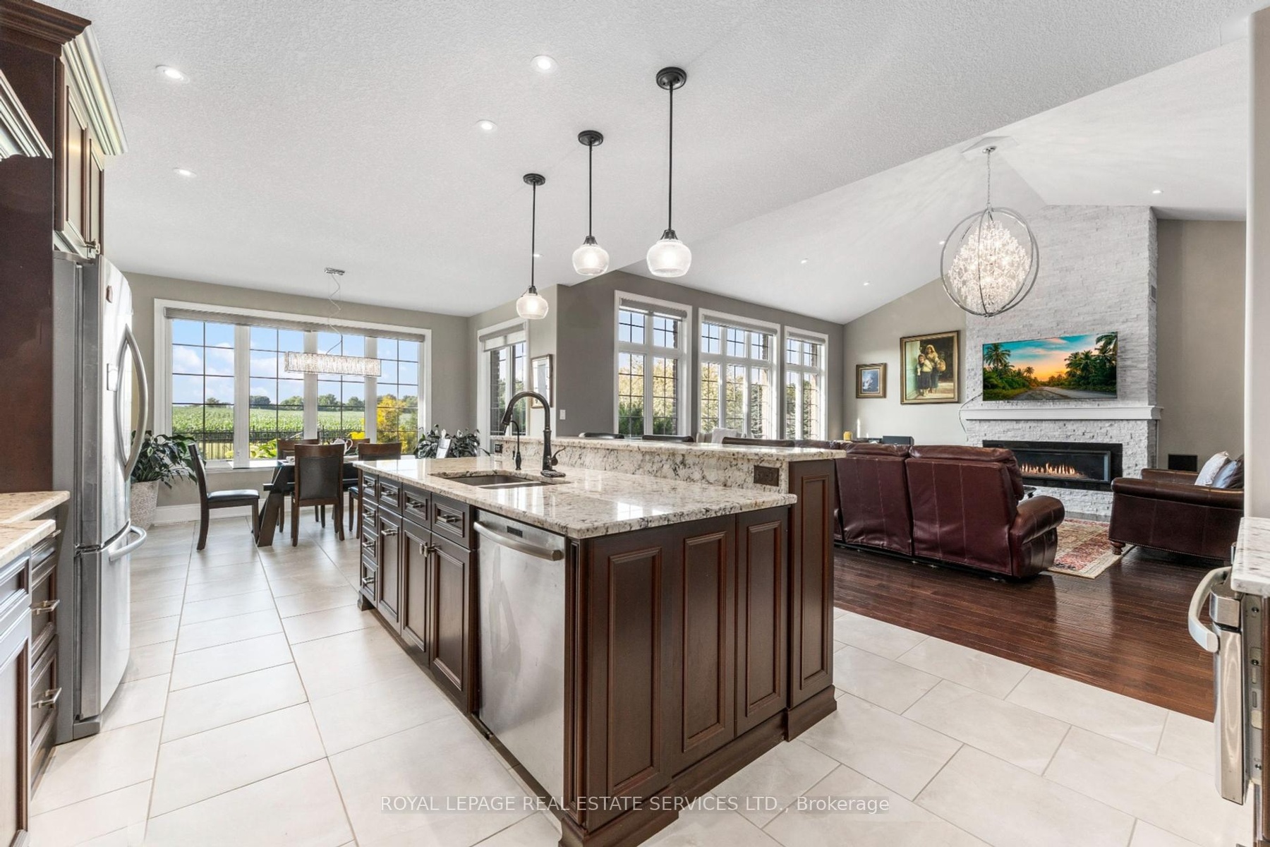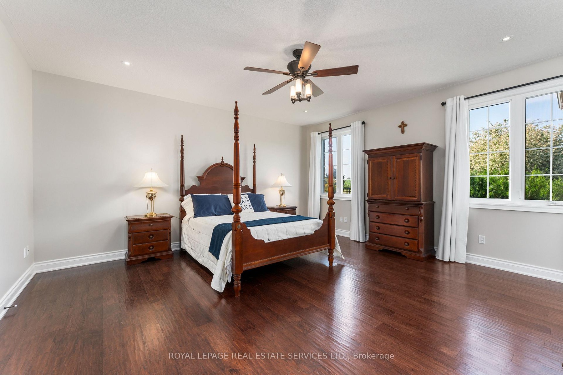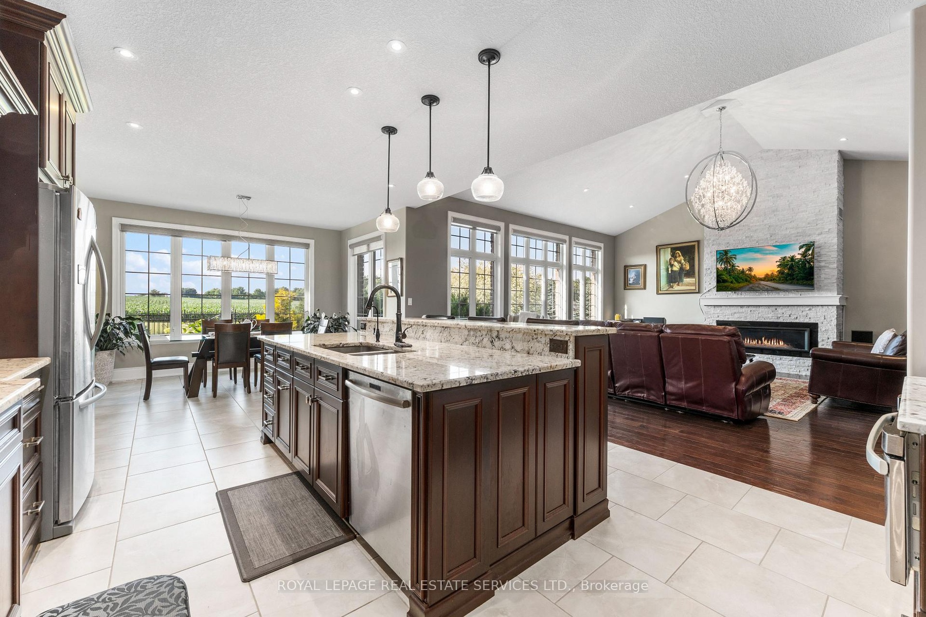 Welcome to the crown jewel at 391 Robinson Rd, majestically situated on apprx. 1.5 acres of elevated land, offering serene views of picturesque farmland and maturely landscaped garden beds with that winding driveway you've always dreamed of. Boasting over 6,100 sqft of meticulously designed living space and a perfect layout with 4+2 bedrooms and 4 washrooms, this home features a striking stone façade that commands attention and elegance. Step inside to enjoy the executive chefs kitchen equipped with an oversized island with breakfast bar, built-in oven and microwave, premium countertops, and a spacious walk-in pantry perfect for culinary enthusiasts and entertaining guests. The main floor includes two luxurious soaker tubs, ideal for unwinding after a long day, complemented by abundant storage both inside and out. This residence offers unparalleled versatility with 6+ garage spaces and a workshop option, accommodating all your vehicles and hobbies. The finished basement enhances functionality with two additional bedrooms, abundant storage areas, and convenient walkout access to the garage.  Step outside to your private inground pool, completed with a state-of-the-art robotic cleaner, offering a refreshing retreat surrounded by lush, mature gardens nourished by an advanced sprinkler system.  Additional premium features include 10ft ceilings, a water purification and softener system, air exchanger, sump pump, and walk-in closets for every bedroom on the main level. Experience the gold standard in natural light, creating a warm and inviting atmosphere throughout. This home effortlessly blends luxury, vibrance, and practicality in a peaceful setting.