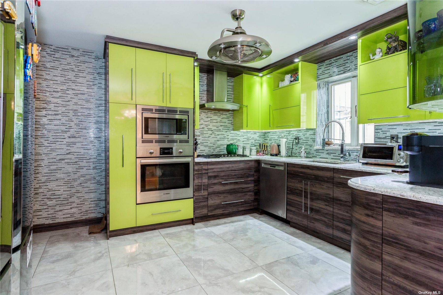 Gorgeous One Family House, located In The heart of Forest Hills. The first floor features an entry foyer, spacious living room, formal dining room, a half bathroom. And access to the deck. As well as a fully renovated eat in kitchen, with custom cabinets. The second floor contains 3 bedrooms and 2 bathrooms including a master bath and bedroom. The house is finished off with a separate entrance to the backyard . R4 Zoning