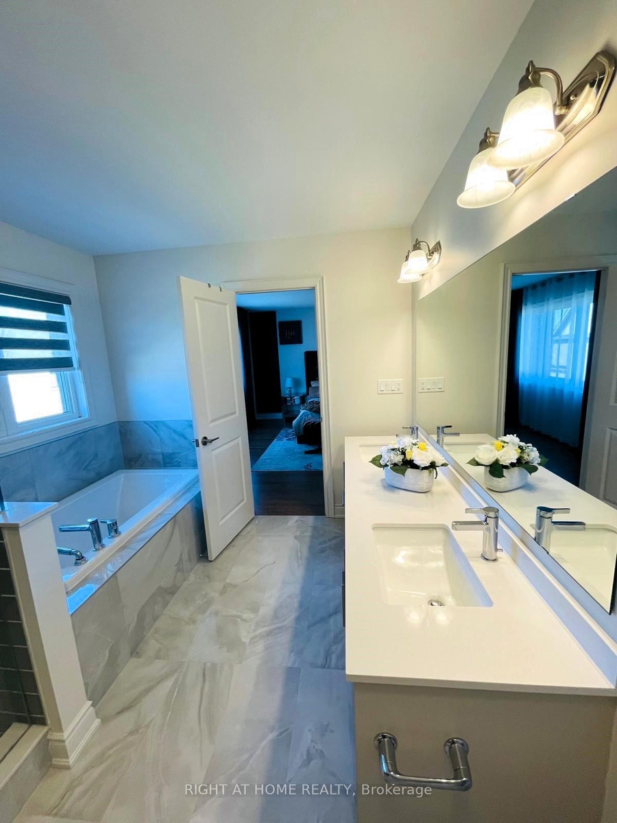 Gorgeous Large Luxury Home 4 bedrooms. Hard wood floors on main and 2-nd floors. Tiled foyer. Zebra blinds on main and 2-nd floors. Lots Of Upgrades!!! Fireplace!!! Spacious Primary bedroom with W/I closet, 5-pc en-suite washroom with quartz countertop. Kitchen with extended island and quartz countertops. Main floor - 9 ft ceiling. Direct access to the main floor from garage. Crystal chandeliers.Central A/C. Minutes to Hwy 400. Steps to parks, close to supermarkets and all amenities.