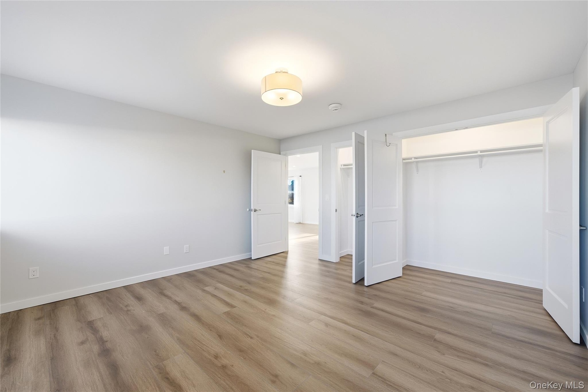 - Another view of bedroom featuring light wood-style flooring and a closet