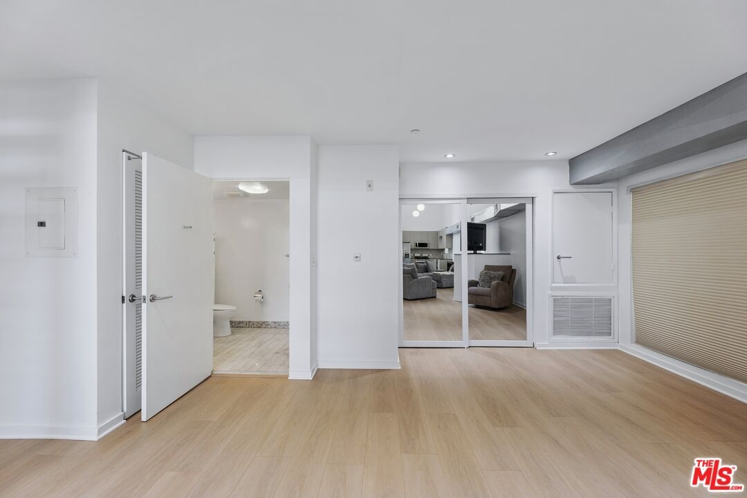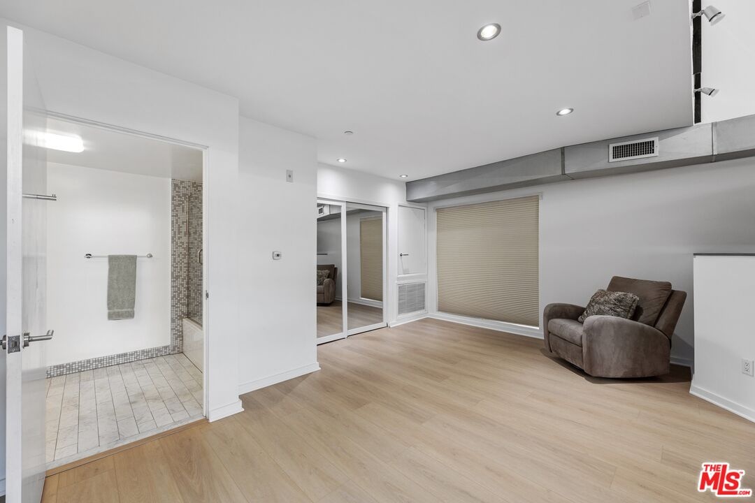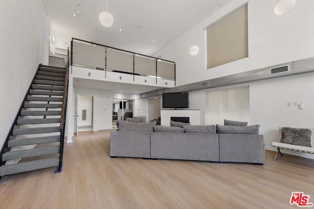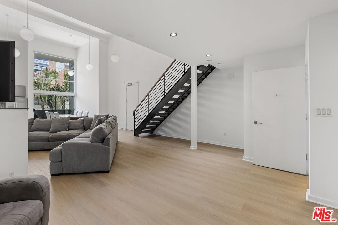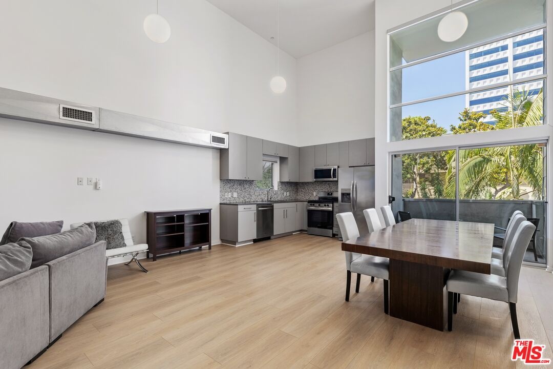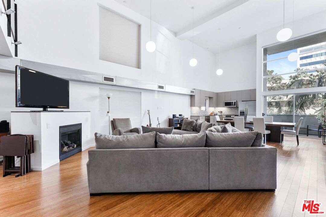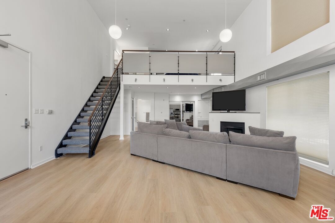 Modern Loft in the Heart of Hollywood! This stylish, light-filled loft condo seamlessly blends contemporary design with urban living. Boasting soaring ceilings and an open-concept layout, this end unit is flooded with natural light, exuding a cool, modern vibe. Located just steps away from iconic Hollywood landmarks like the Roosevelt Hotel, the Chinese Theatre, and the Hollywood Walk of Fame, you'll have the best of LA right at your doorstep. Plus, with convenient access to the Hollywood and Highland Metro Station, navigating the city is a breeze. Though located on the first floor, this unit is not at street level, offering a sense of privacy and tranquility while still providing easy access. The expansive two-level floor plan features sleek wood flooring, oversized windows, and stunning design elements throughout. The loft space offers a perfect private retreat, ideal as a bedroom, while the main level provides versatile flex space that can be easily partitioned to create a guest suite, home office, art studio, or whatever your lifestyle demands. Although title records shows zero bedrooms, there is closet space and a bathroom in each "bedroom" area. The open kitchen is outfitted with chic quartz countertops, a stylish tiled backsplash, and stainless steel appliances perfect for both culinary adventures and entertaining. Step out onto your private balcony for a peaceful morning coffee or unwind after a busy day. The building's community rooftop deck is just as inviting, offering sweeping views of the Hollywood Hills, breathtaking sunsets, and the iconic Hollywood Sign, making it the perfect spot to enjoy the outdoors and take in the city's vibrant energy. Additional features include in-unit laundry, gated parking (with 2 tandem spots), and proximity to vibrant Hollywood nightlife. This condo is a true gem, where style, convenience, and the best of LA living come together. Unit is 101, but it is on the 2nd floor of the building.