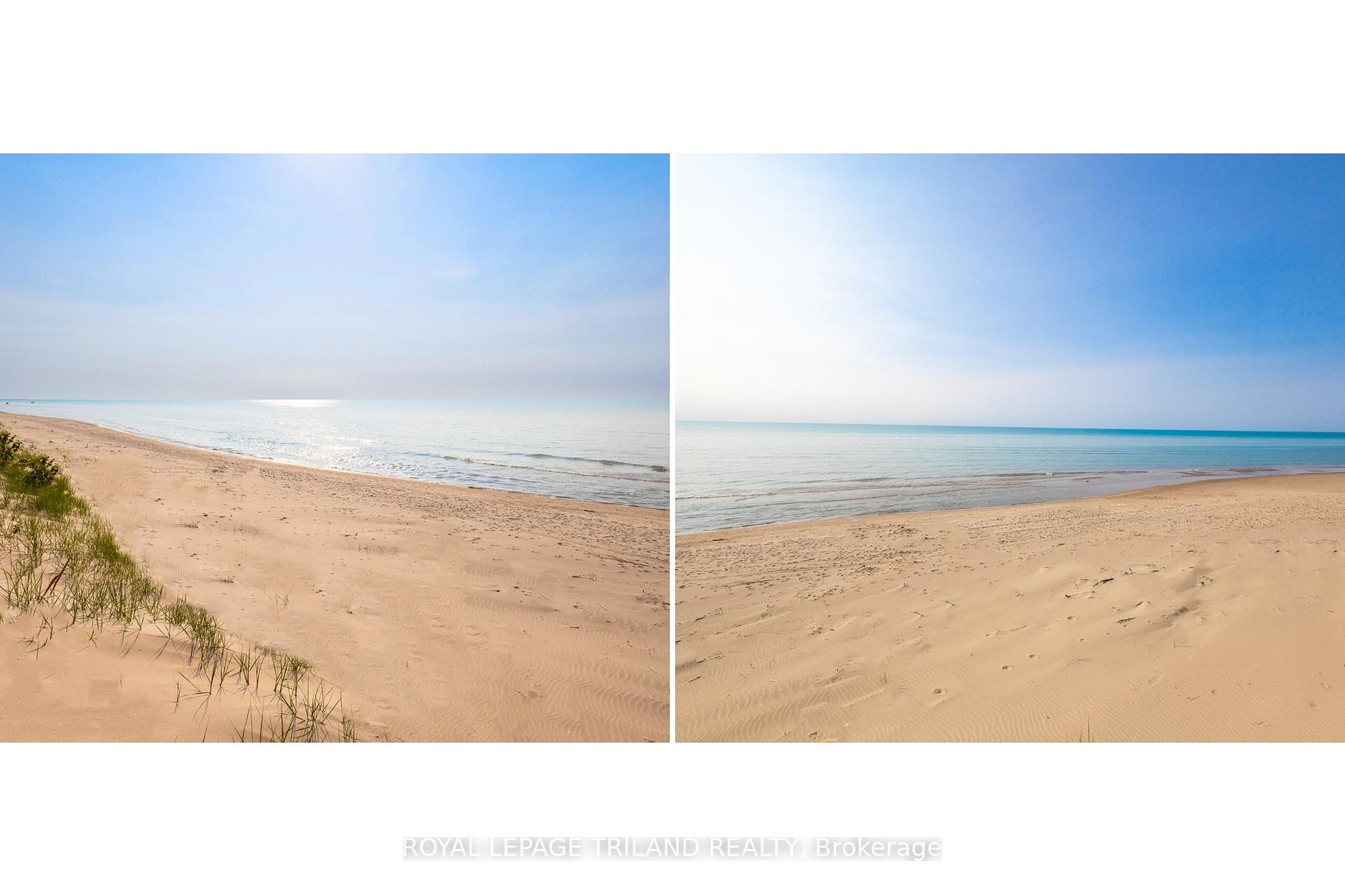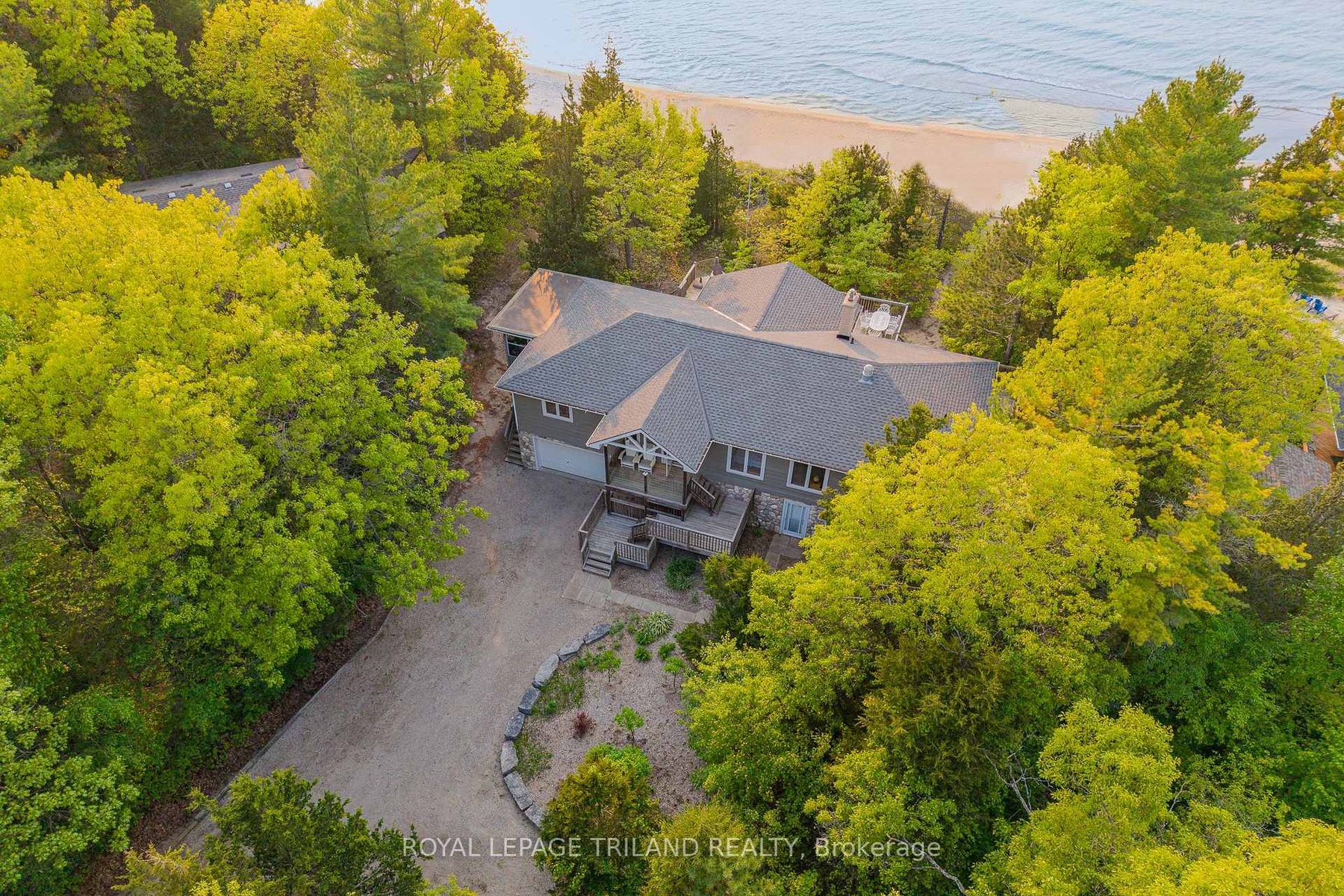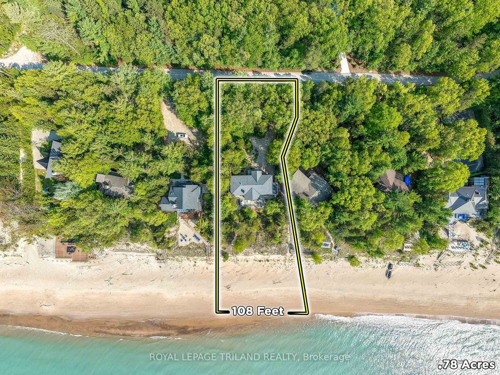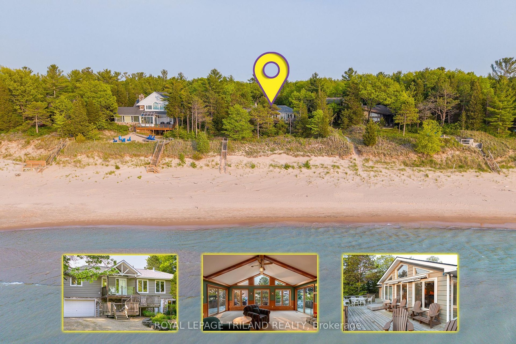 GRAND BEND PREMIUM LAKEFRONT IN THE MOST SOUGHT AFTER & EXCLUSIVE PRIVATE BEACH COMMUNITY IN LAKE HURON | 108 FT OF PRIVATELY OWNED BEACH FRONTAGE | BEACH O' PINES GATED SUBDIVISION BORDERING THE LONGEST CONTINUOUS SANDY BEACH WALK IN THE GREAT LAKES | ROCK SOLID 4 SEASON CUSTOM BEACH HOUSE! Come take a walk through paradise along an 11+ KM stretch of pure golden sand & experience true waterfront magic down the Pinery Park's undeveloped shoreline. This location is truly priceless. This location is the one & only Beach O' Pines private beach community at the edge of the Pinery! For lakefront in Lake Huron, this is as good as it gets! In Beach O' Pines, you can keep your boat or jet skis right on your privately owned beach in front of this 4+1 bedroom 3 full bathroom custom home offering nearly 3200 SQ FT of finished living space w/ lots of additional room for storage + an oversized 2.5 car insulated garage. You can see those sparkling Huron waters from the minute you walk through the main door & into the open-concept vaulted & beamed great room w/ wall to wall windows & a field stone fireplace. The bright & spacious main level is in great shape w/ a very generous kitchen, oversized dining area for entertaining & large family gatherings, a superb lakefront master suite w/ ensuite bath + 2 more generous bedrooms, a 2nd main level full bath, & main level laundry. The home is ready for full time family enjoyment on Day 1, but for buyers considering a few updates, this extremely well-built house provides an excellent template! Even the walk-out lower level will surprise you, w/ large principal rooms including another bedroom, a potential 5th bedroom or guest suite, a 3rd full bath, & workshop space that connects to the oversized garage. The lot itself is worth well in excess of $3 mil w/o the house offering over 3/4 of an acre of pure lakefront bliss, but the quality of this home, as-is, w/ updated roof & decks, 400 AMP electrical, etc. truly completes the package!