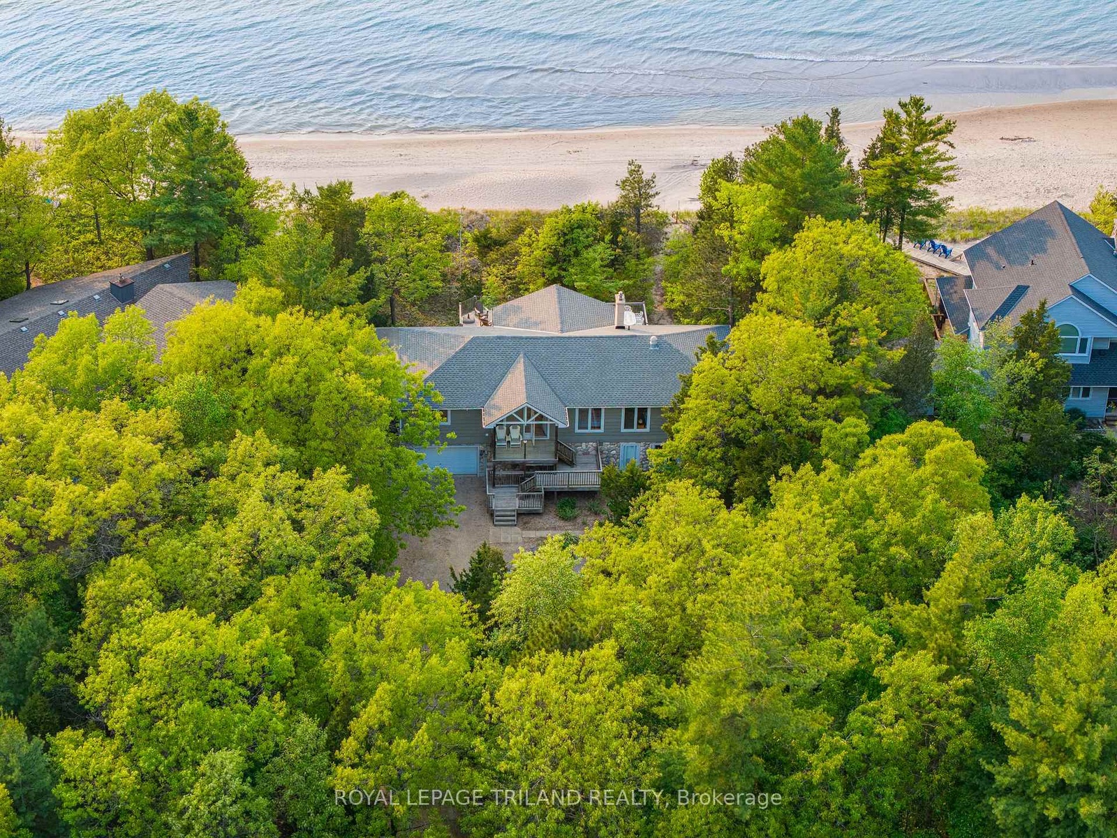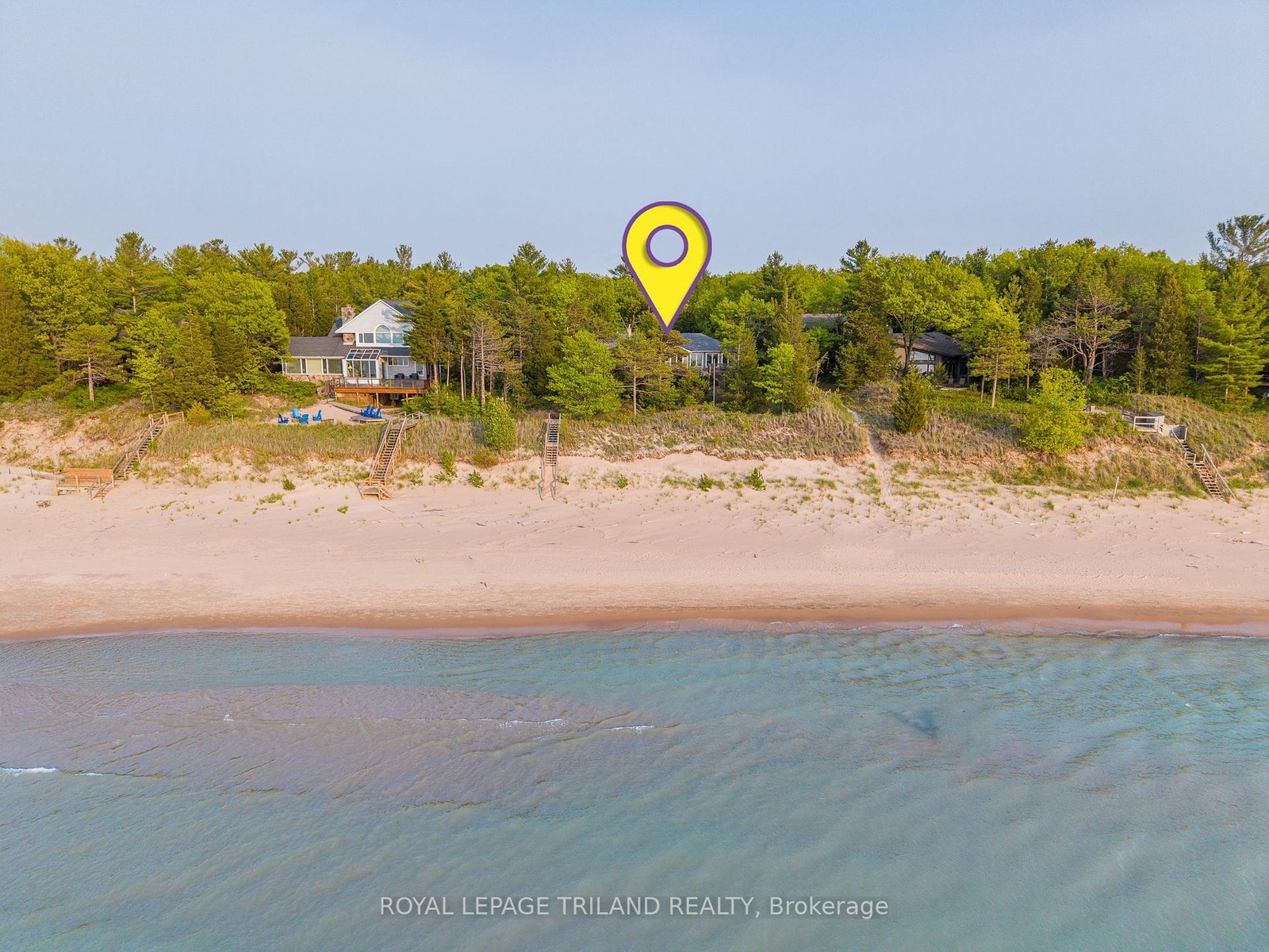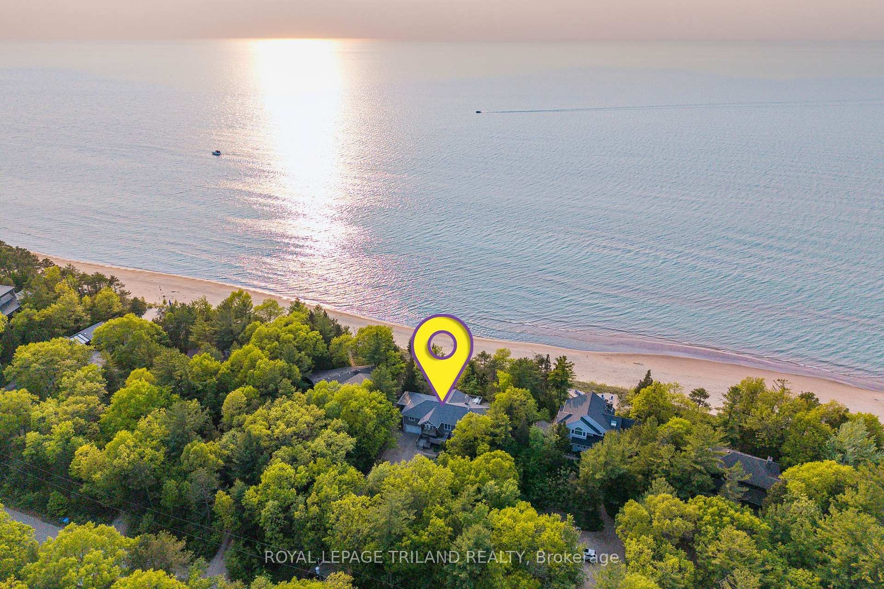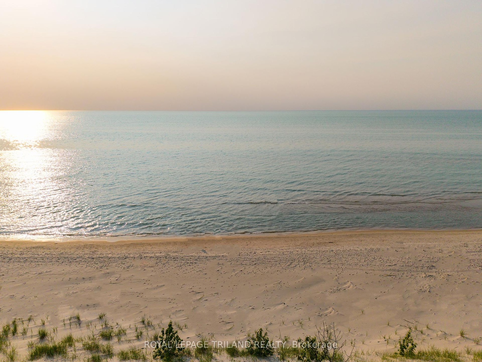 GRAND BEND PREMIUM LAKEFRONT IN THE MOST SOUGHT AFTER & EXCLUSIVE PRIVATE BEACH COMMUNITY IN LAKE HURON | 108 FT OF PRIVATELY OWNED BEACH FRONTAGE | BEACH O' PINES GATED SUBDIVISION BORDERING THE LONGEST CONTINUOUS SANDY BEACH WALK IN THE GREAT LAKES | ROCK SOLID 4 SEASON CUSTOM BEACH HOUSE! Come take a walk through paradise along an 11+ KM stretch of pure golden sand & experience true waterfront magic down the Pinery Park's undeveloped shoreline. This location is truly priceless. This location is the one & only Beach O' Pines private beach community at the edge of the Pinery! For lakefront in Lake Huron, this is as good as it gets! In Beach O' Pines, you can keep your boat or jet skis right on your privately owned beach in front of this 4+1 bedroom 3 full bathroom custom home offering nearly 3200 SQ FT of finished living space w/ lots of additional room for storage + an oversized 2.5 car insulated garage. You can see those sparkling Huron waters from the minute you walk through the main door & into the open-concept vaulted & beamed great room w/ wall to wall windows & a field stone fireplace. The bright & spacious main level is in great shape w/ a very generous kitchen, oversized dining area for entertaining & large family gatherings, a superb lakefront master suite w/ ensuite bath + 2 more generous bedrooms, a 2nd main level full bath, & main level laundry. The home is ready for full time family enjoyment on Day 1, but for buyers considering a few updates, this extremely well-built house provides an excellent template! Even the walk-out lower level will surprise you, w/ large principal rooms including another bedroom, a potential 5th bedroom or guest suite, a 3rd full bath, & workshop space that connects to the oversized garage. The lot itself is worth well in excess of $3 mil w/o the house offering over 3/4 of an acre of pure lakefront bliss, but the quality of this home, as-is, w/ updated roof & decks, 400 AMP electrical, etc. truly completes the package!