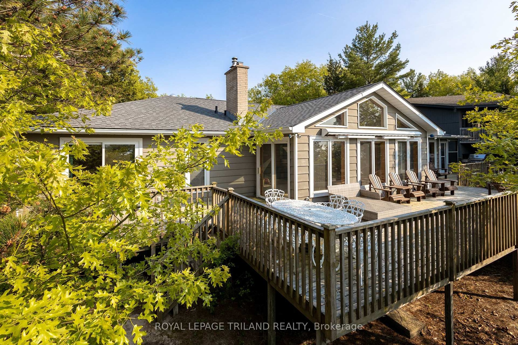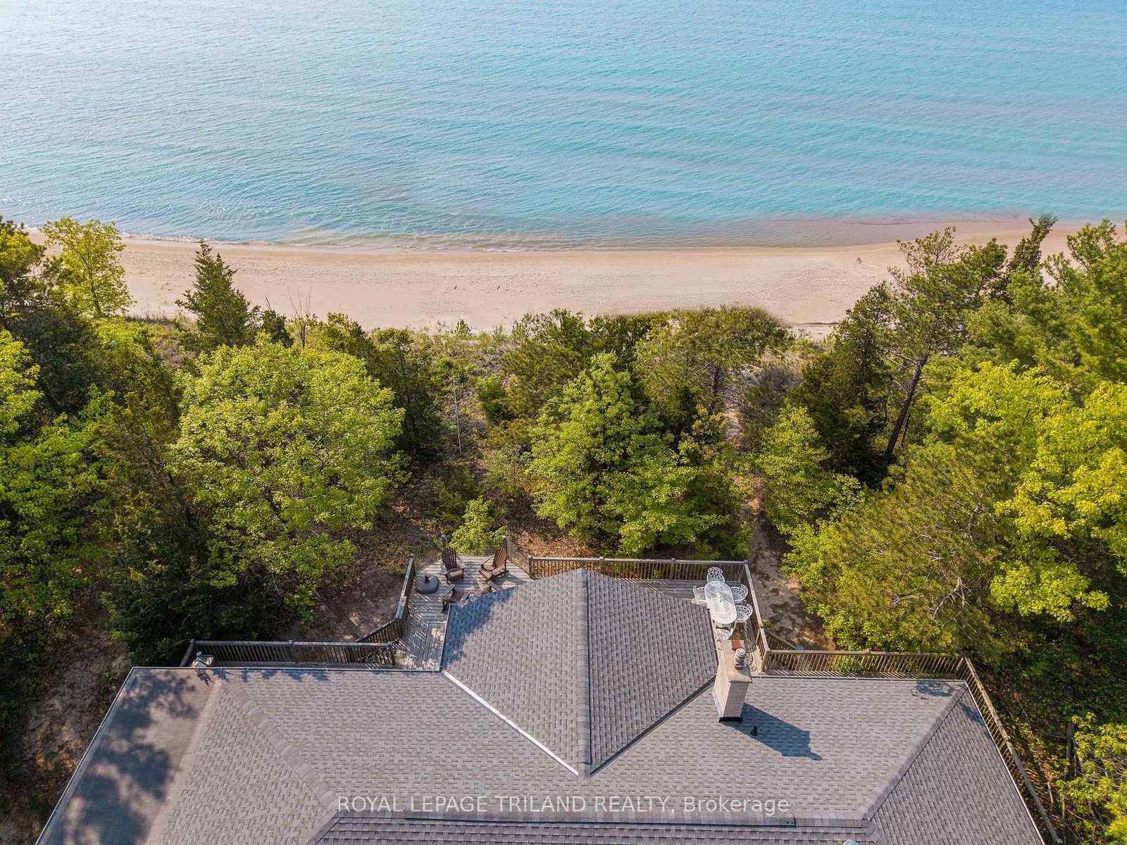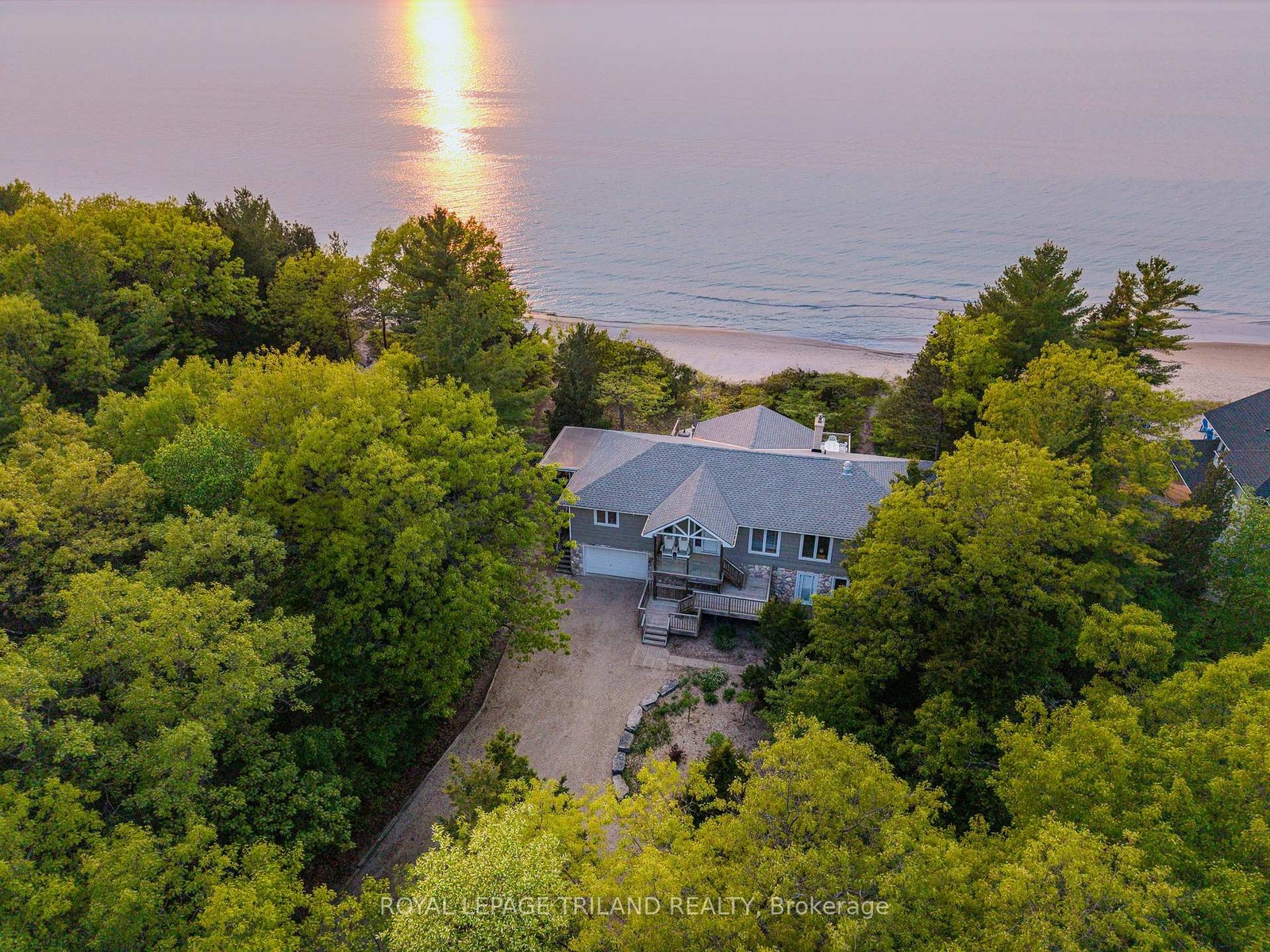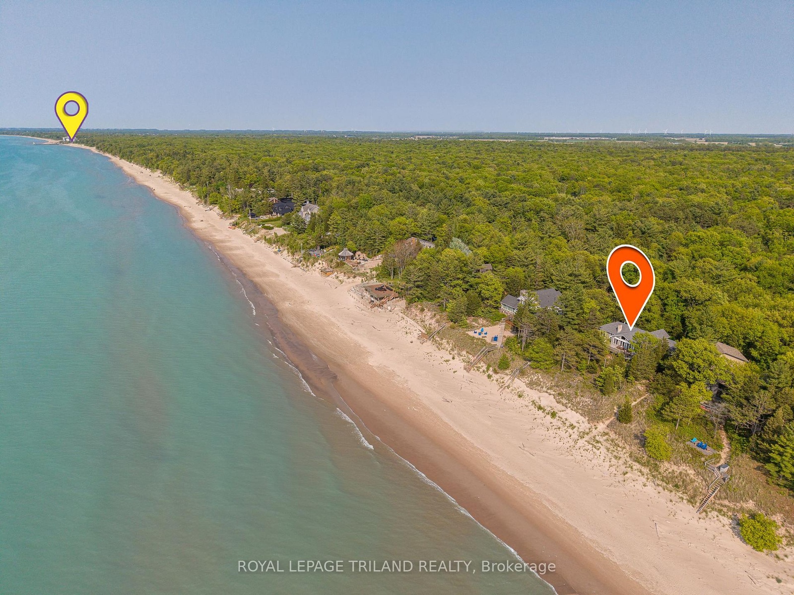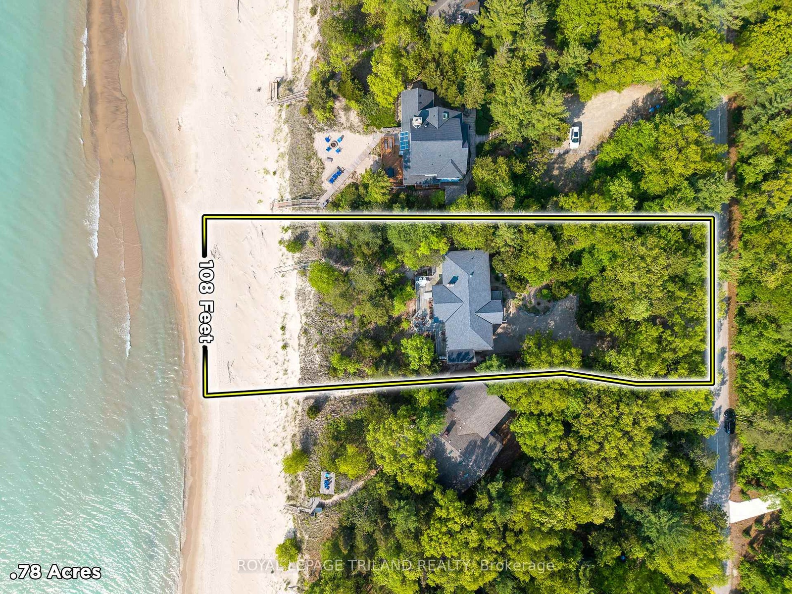 GRAND BEND PREMIUM LAKEFRONT IN THE MOST SOUGHT AFTER & EXCLUSIVE PRIVATE BEACH COMMUNITY IN LAKE HURON | 108 FT OF PRIVATELY OWNED BEACH FRONTAGE | BEACH O' PINES GATED SUBDIVISION BORDERING THE LONGEST CONTINUOUS SANDY BEACH WALK IN THE GREAT LAKES | ROCK SOLID 4 SEASON CUSTOM BEACH HOUSE! Come take a walk through paradise along an 11+ KM stretch of pure golden sand & experience true waterfront magic down the Pinery Park's undeveloped shoreline. This location is truly priceless. This location is the one & only Beach O' Pines private beach community at the edge of the Pinery! For lakefront in Lake Huron, this is as good as it gets! In Beach O' Pines, you can keep your boat or jet skis right on your privately owned beach in front of this 4+1 bedroom 3 full bathroom custom home offering nearly 3200 SQ FT of finished living space w/ lots of additional room for storage + an oversized 2.5 car insulated garage. You can see those sparkling Huron waters from the minute you walk through the main door & into the open-concept vaulted & beamed great room w/ wall to wall windows & a field stone fireplace. The bright & spacious main level is in great shape w/ a very generous kitchen, oversized dining area for entertaining & large family gatherings, a superb lakefront master suite w/ ensuite bath + 2 more generous bedrooms, a 2nd main level full bath, & main level laundry. The home is ready for full time family enjoyment on Day 1, but for buyers considering a few updates, this extremely well-built house provides an excellent template! Even the walk-out lower level will surprise you, w/ large principal rooms including another bedroom, a potential 5th bedroom or guest suite, a 3rd full bath, & workshop space that connects to the oversized garage. The lot itself is worth well in excess of $3 mil w/o the house offering over 3/4 of an acre of pure lakefront bliss, but the quality of this home, as-is, w/ updated roof & decks, 400 AMP electrical, etc. truly completes the package!