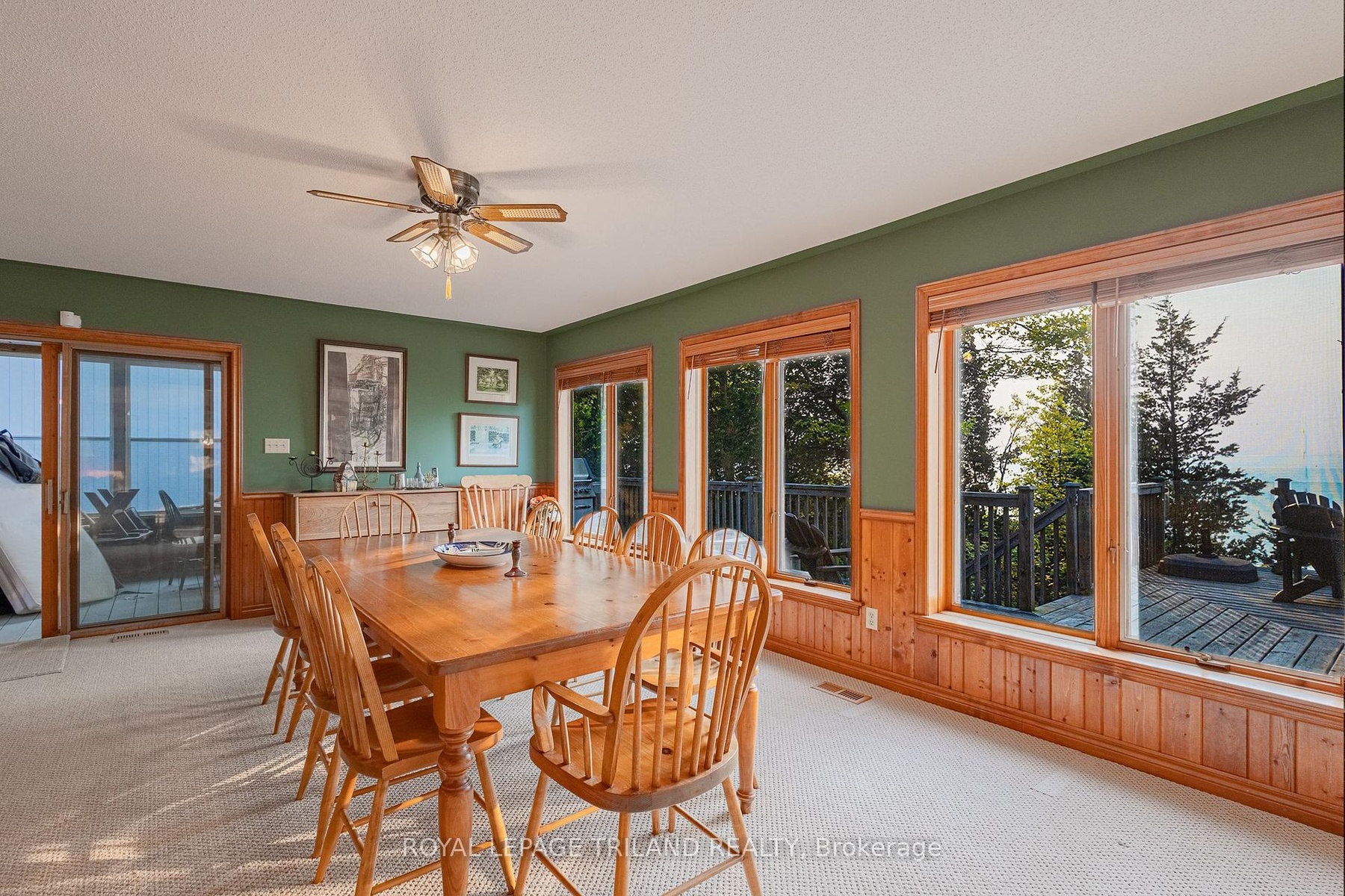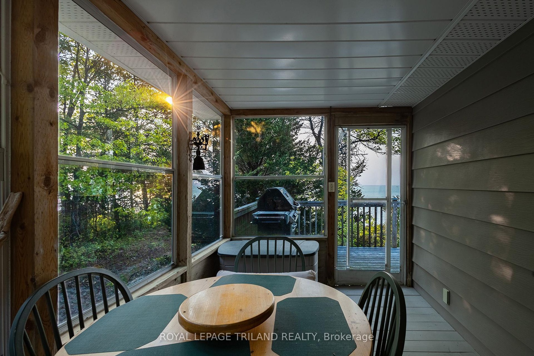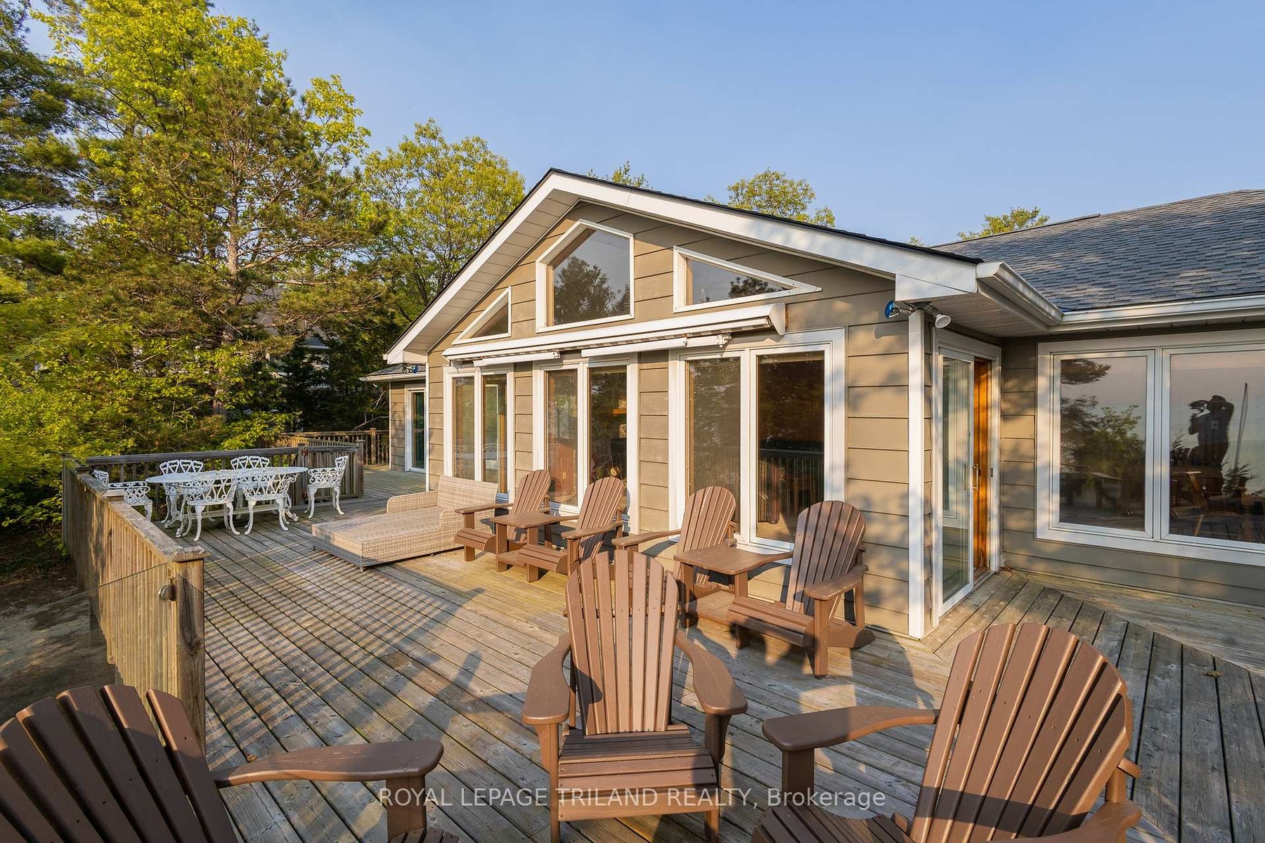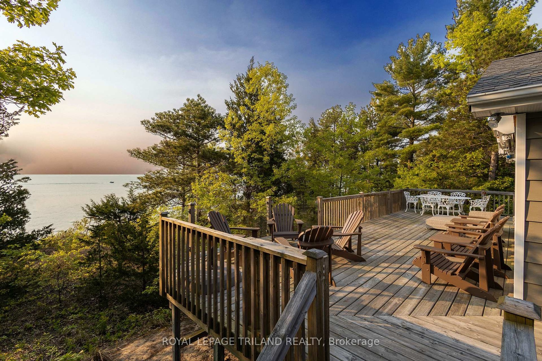 GRAND BEND PREMIUM LAKEFRONT IN THE MOST SOUGHT AFTER & EXCLUSIVE PRIVATE BEACH COMMUNITY IN LAKE HURON | 108 FT OF PRIVATELY OWNED BEACH FRONTAGE | BEACH O' PINES GATED SUBDIVISION BORDERING THE LONGEST CONTINUOUS SANDY BEACH WALK IN THE GREAT LAKES | ROCK SOLID 4 SEASON CUSTOM BEACH HOUSE! Come take a walk through paradise along an 11+ KM stretch of pure golden sand & experience true waterfront magic down the Pinery Park's undeveloped shoreline. This location is truly priceless. This location is the one & only Beach O' Pines private beach community at the edge of the Pinery! For lakefront in Lake Huron, this is as good as it gets! In Beach O' Pines, you can keep your boat or jet skis right on your privately owned beach in front of this 4+1 bedroom 3 full bathroom custom home offering nearly 3200 SQ FT of finished living space w/ lots of additional room for storage + an oversized 2.5 car insulated garage. You can see those sparkling Huron waters from the minute you walk through the main door & into the open-concept vaulted & beamed great room w/ wall to wall windows & a field stone fireplace. The bright & spacious main level is in great shape w/ a very generous kitchen, oversized dining area for entertaining & large family gatherings, a superb lakefront master suite w/ ensuite bath + 2 more generous bedrooms, a 2nd main level full bath, & main level laundry. The home is ready for full time family enjoyment on Day 1, but for buyers considering a few updates, this extremely well-built house provides an excellent template! Even the walk-out lower level will surprise you, w/ large principal rooms including another bedroom, a potential 5th bedroom or guest suite, a 3rd full bath, & workshop space that connects to the oversized garage. The lot itself is worth well in excess of $3 mil w/o the house offering over 3/4 of an acre of pure lakefront bliss, but the quality of this home, as-is, w/ updated roof & decks, 400 AMP electrical, etc. truly completes the package!
