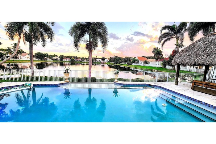 3,652 Sq. ft. total! Rarely Available & Highly Sought After Willow Model! Spectacular Wide & Deep Lake View! Resort Style Infinity Pool, Situated On a Prestigious Lake With Plenty Of Privacy, & Unobstructed Views, In The Exclusive Guard Gated Banyan Oakridge Community. Home Has Been Completely Redesigned With Exquisite Taste, 5 Bedrooms, 3.5 Bathrooms, Plus Additional 1st Fl. Room, Can be a 6th Bedroom! Building Apx. 3652 Sq. Ft. Featuring Jerusalem Stone Flooring, Hi Impact Patio French Doors, Hi Impact Glass, Newer Roof 2024, Tiki Hut W Electric, Extra Wide Infinity Style Pool,W Sundeck And Much More. Amenities Include Excellent Tennis Courts, Basketball Court, Tot Lot, All Within Very Close Proximity To Many Houses Of Worship, I95,595, Fl. Turnpike, Airport, Seaport, Hard Rock Casino, Downtown Hollywood, And The Beaches.