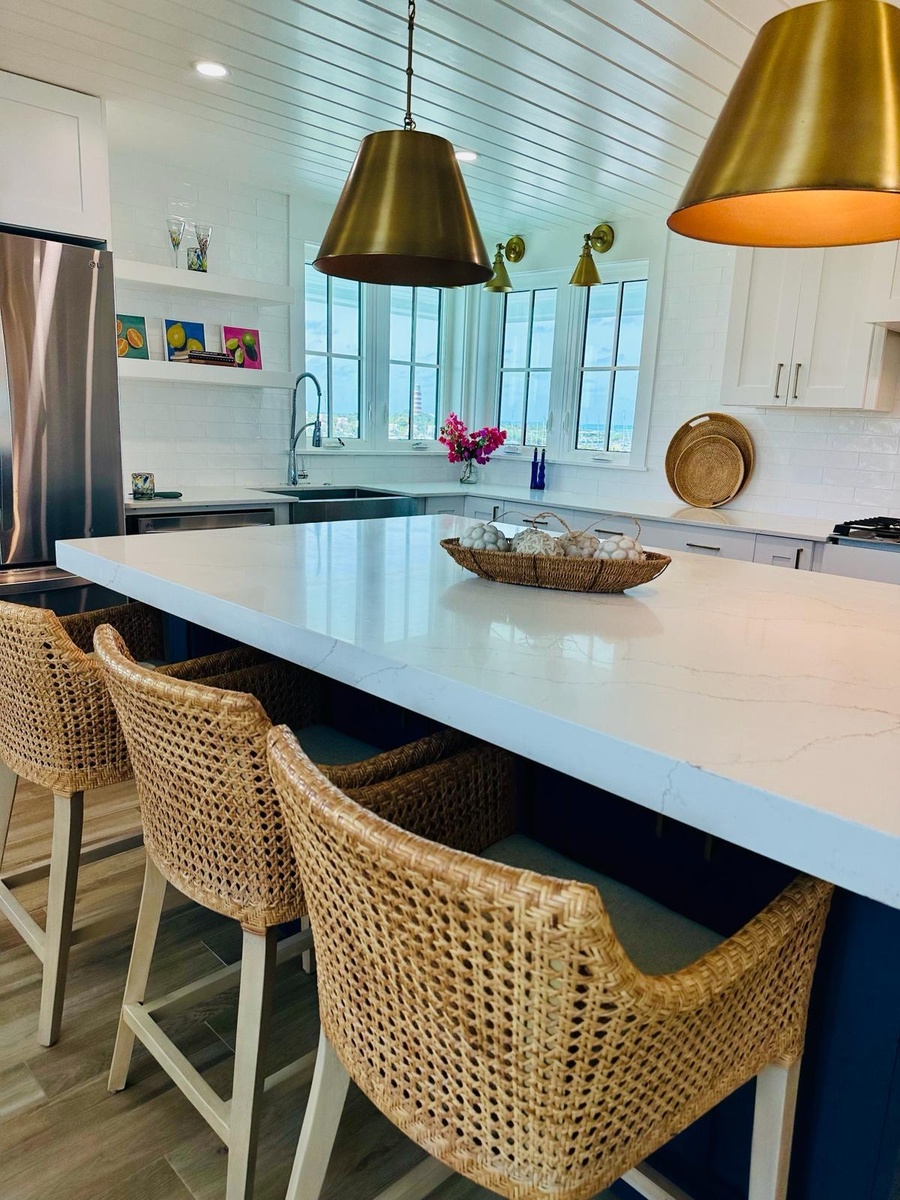 Nestled within the picturesque Hope Town settlement, this stunningly remodeled home offers an enchanting retreat with unrivaled views of the iconic lighthouse and the tranquil harbor. Perched gracefully, it welcomes you with open arms to a sanctuary where every corner exudes charm and elegance. As you step onto the covered decks, a sense of serenity washes over you, accompanied by the gentle sea breeze and the mesmerizing sights that stretch out before you. Inside, the home boasts a seamless blend of modern comforts and timeless allure. With five bedrooms, including a master suite that promises luxurious indulgence, and three and a half baths adorned with exquisite finishes, every inch of this residence is designed to offer both opulence and practicality. The living spaces are bathed in natural light, creating an inviting ambiance for relaxation and entertainment alike. The well-appointed kitchen beckons culinary enthusiasts to unleash their creativity, while the dining area sets the stage for memorable gatherings with loved ones.