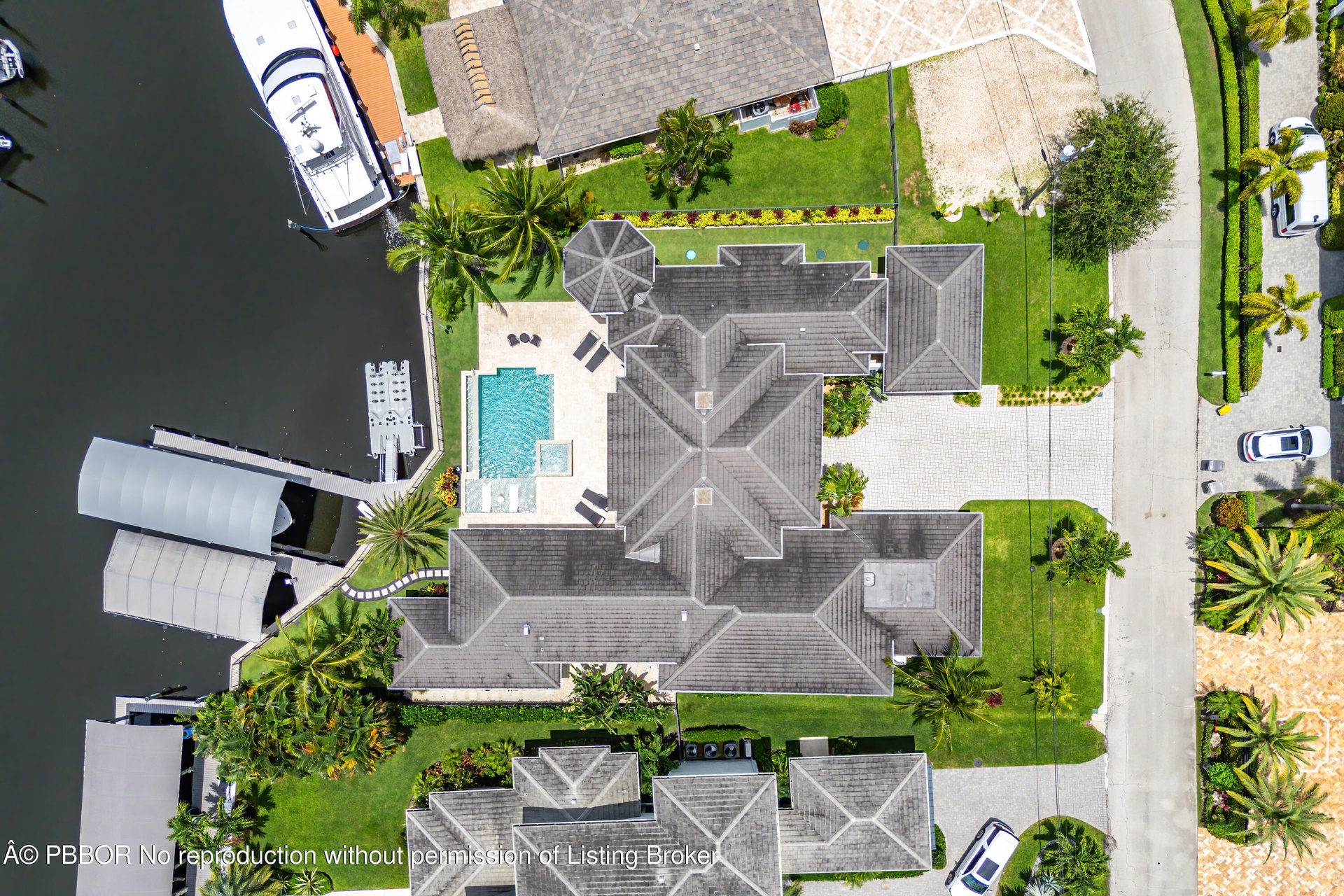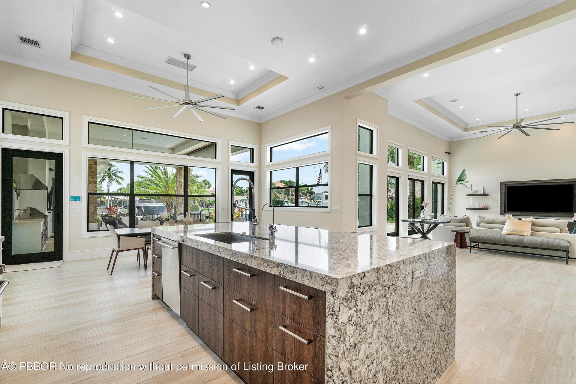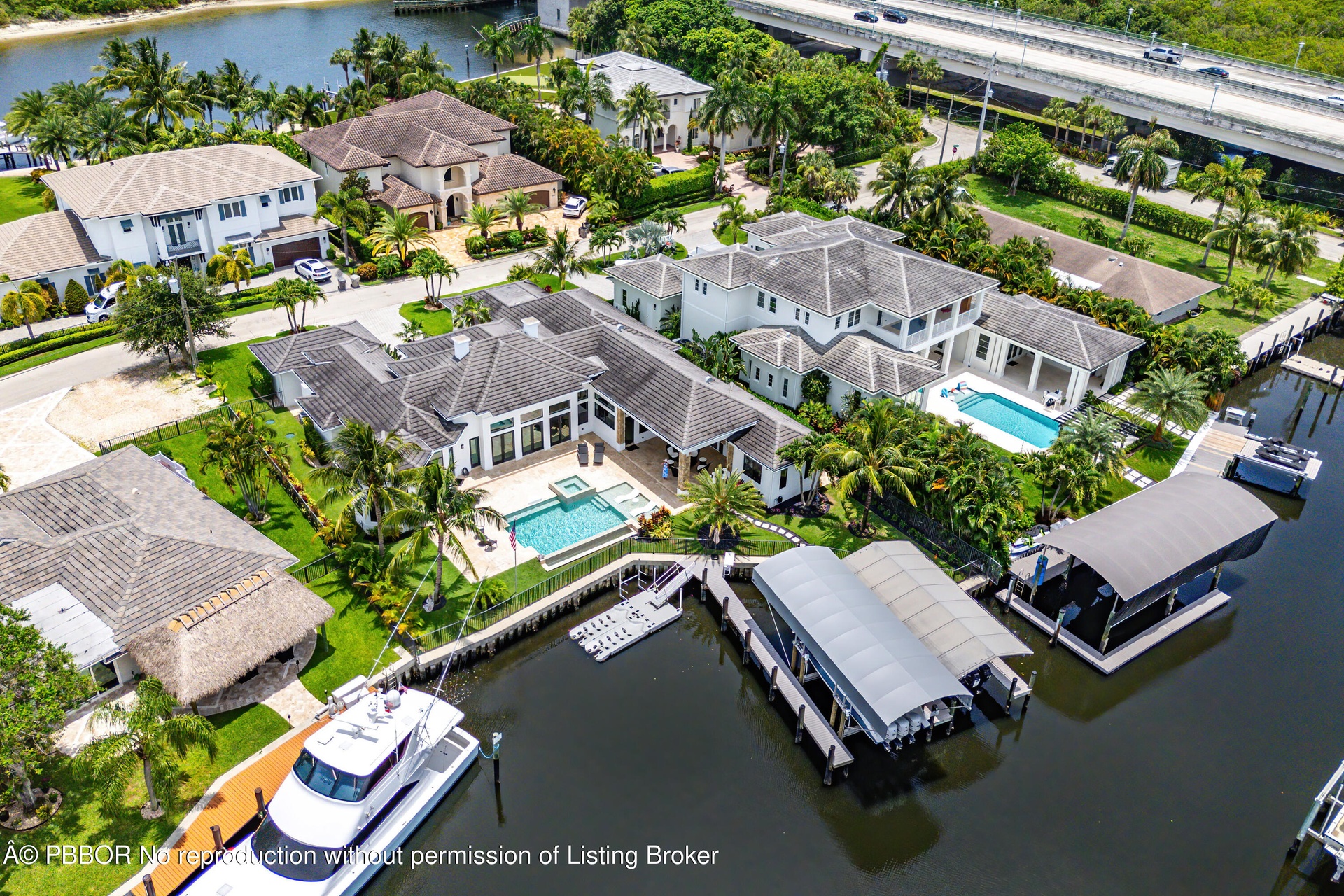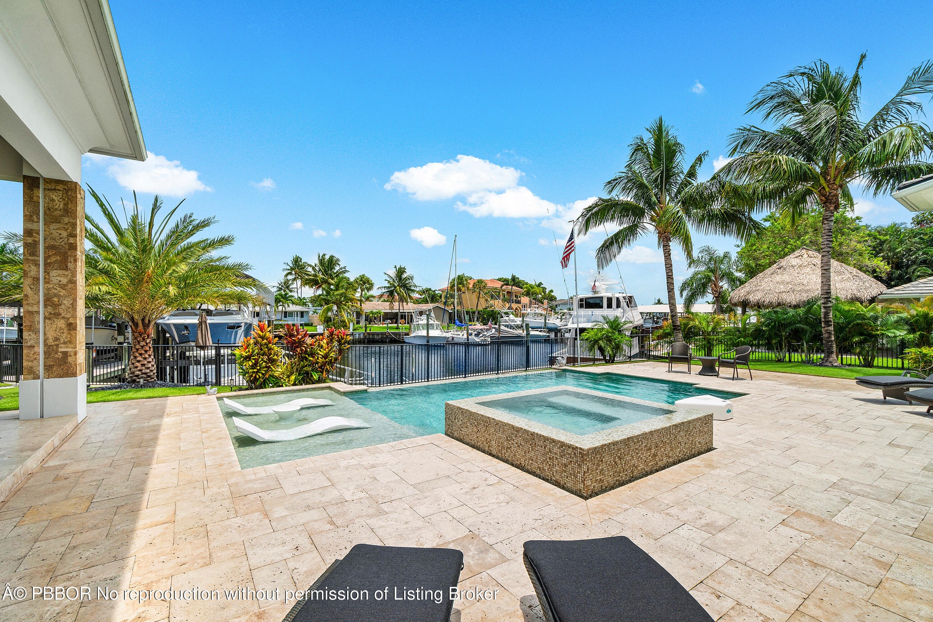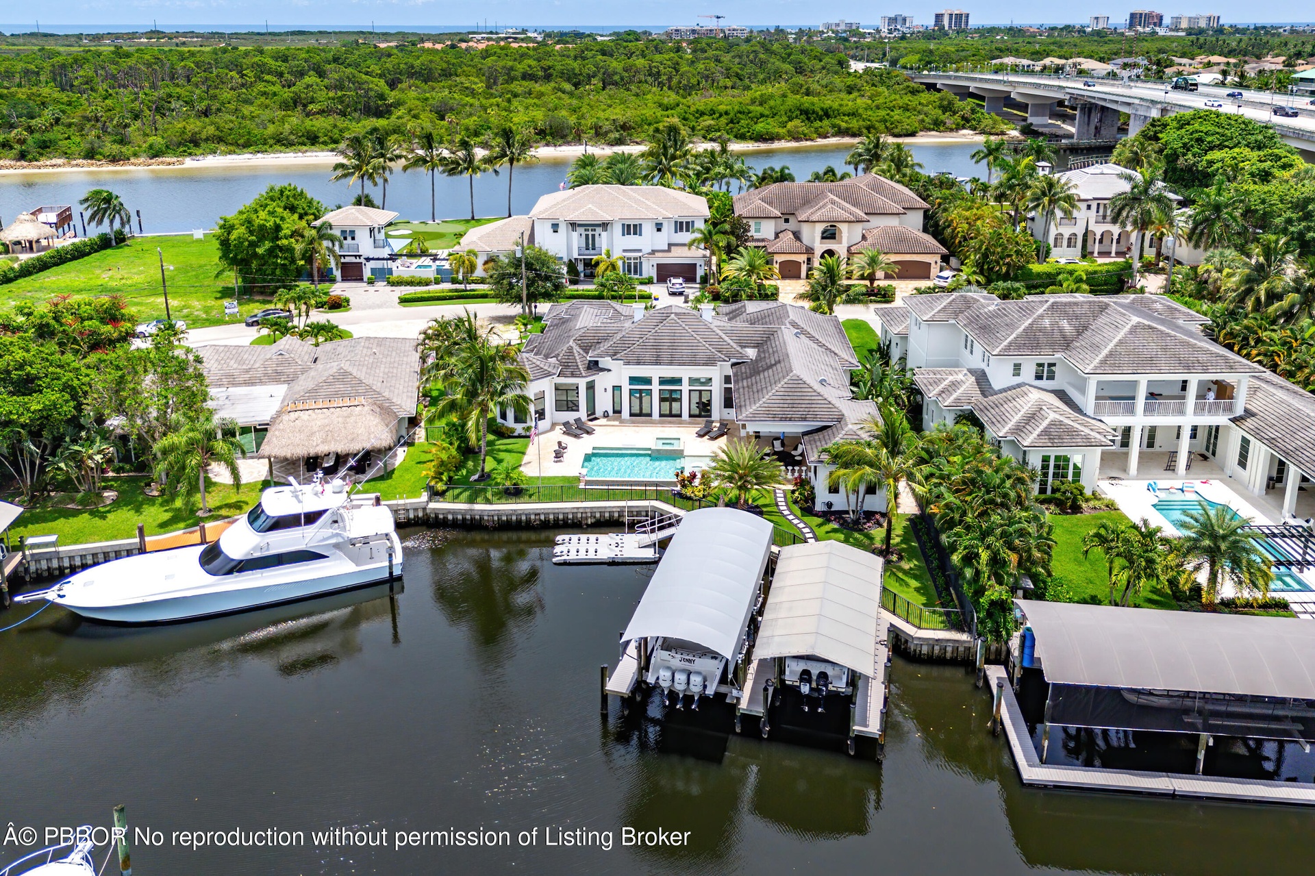 DescriptionWaterfront Luxury Living in Prime Boater's Location! Welcome to this exceptional waterfront residence offering over 130 feet of deep water frontage just one canal from the Intracoastal. Built in 2017, this custom-designed residence features 4 bedrooms and 4 baths, including a private guest house, all situated on a premium 1/3-acre lot at the widest point of the canal for optimal water views and turning radius. The grand great room welcomes you with soaring 16' ceilings and breathtaking waterfront vistas. Ideal for boating enthusiasts, the property includes 4 slips (36 ft. -30,000 lb. lift , 34 ft. 14000 lb. lift , 55 ft., and a 28 ft. water slip) just a one-minute ride to the Intracoastal. Crafted with the finest materials and attention to detail, the home boasts a chef's kitchen with a dramatic 3" quartz waterfall island, top-tier appliances, and sleek custom cabinetry with a 86" built-in TV. The open-concept design is perfect for entertaining, extending seamlessly to a resort-style saltwater pool and spa, travertine sun deck, and a covered lanai with a summer kitchen, TV, hooded vent, and phantom screens.