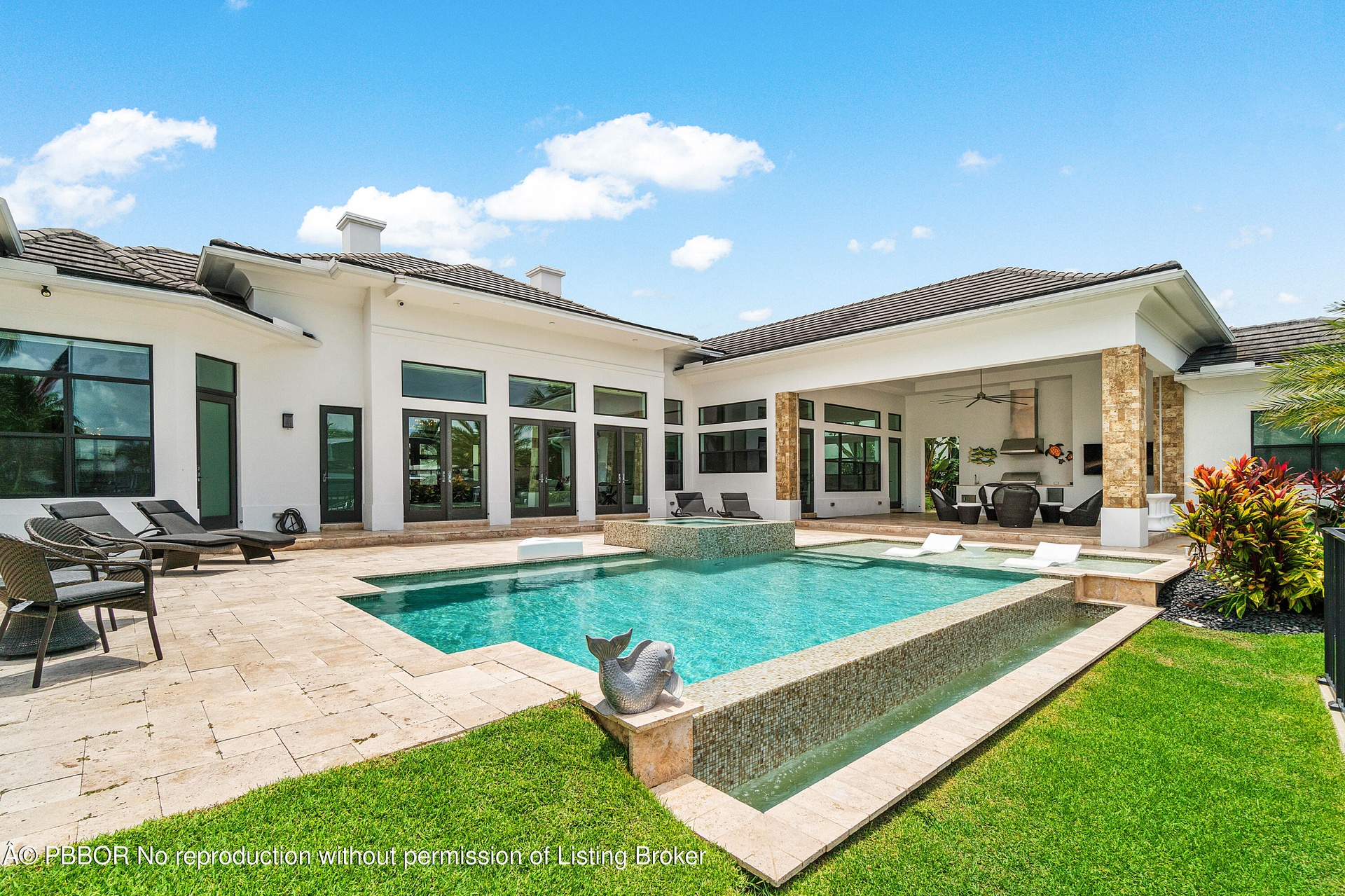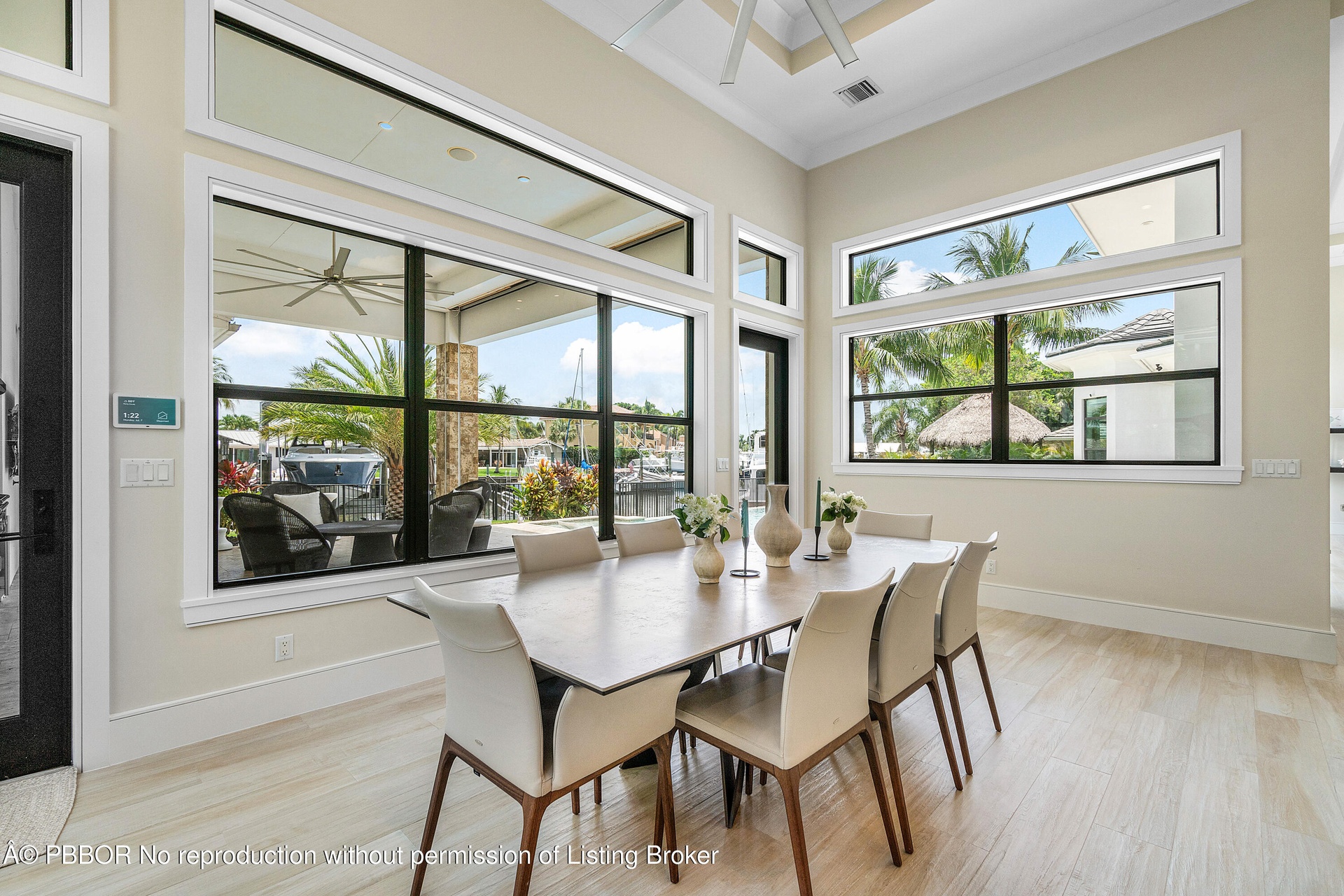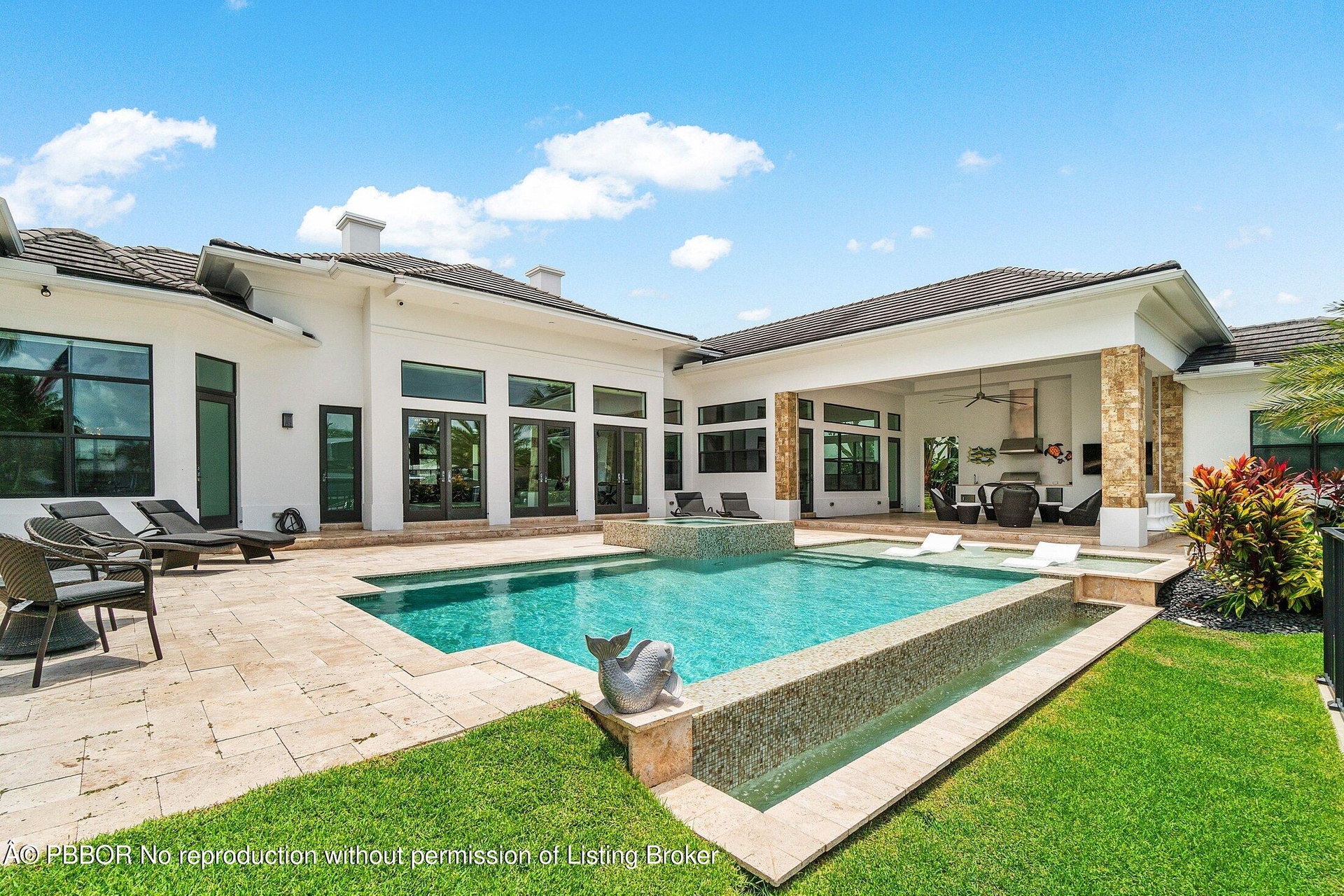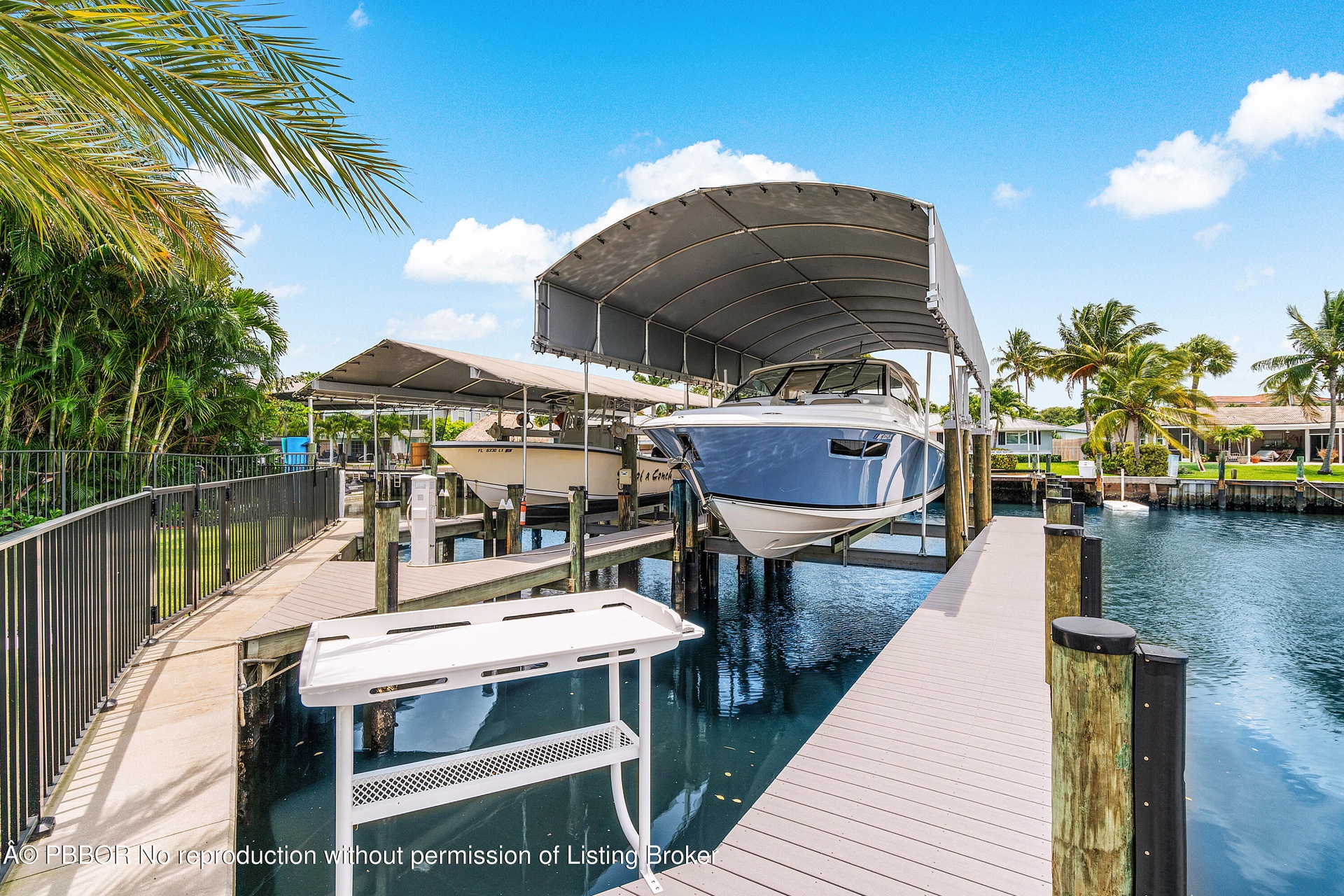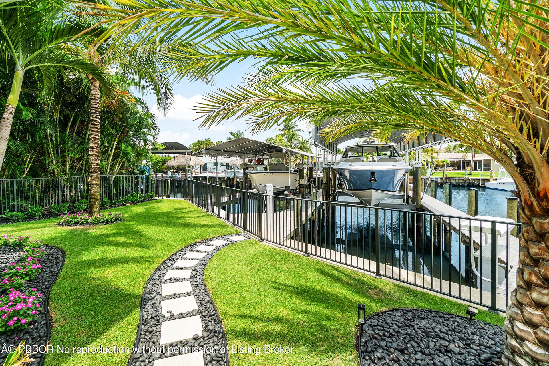 DescriptionWaterfront Luxury Living in Prime Boater's Location! Welcome to this exceptional waterfront residence offering over 130 feet of deep water frontage just one canal from the Intracoastal. Built in 2017, this custom-designed residence features 4 bedrooms and 4 baths, including a private guest house, all situated on a premium 1/3-acre lot at the widest point of the canal for optimal water views and turning radius. The grand great room welcomes you with soaring 16' ceilings and breathtaking waterfront vistas. Ideal for boating enthusiasts, the property includes 4 slips (36 ft. -30,000 lb. lift , 34 ft. 14000 lb. lift , 55 ft., and a 28 ft. water slip) just a one-minute ride to the Intracoastal. Crafted with the finest materials and attention to detail, the home boasts a chef's kitchen with a dramatic 3" quartz waterfall island, top-tier appliances, and sleek custom cabinetry with a 86" built-in TV. The open-concept design is perfect for entertaining, extending seamlessly to a resort-style saltwater pool and spa, travertine sun deck, and a covered lanai with a summer kitchen, TV, hooded vent, and phantom screens.