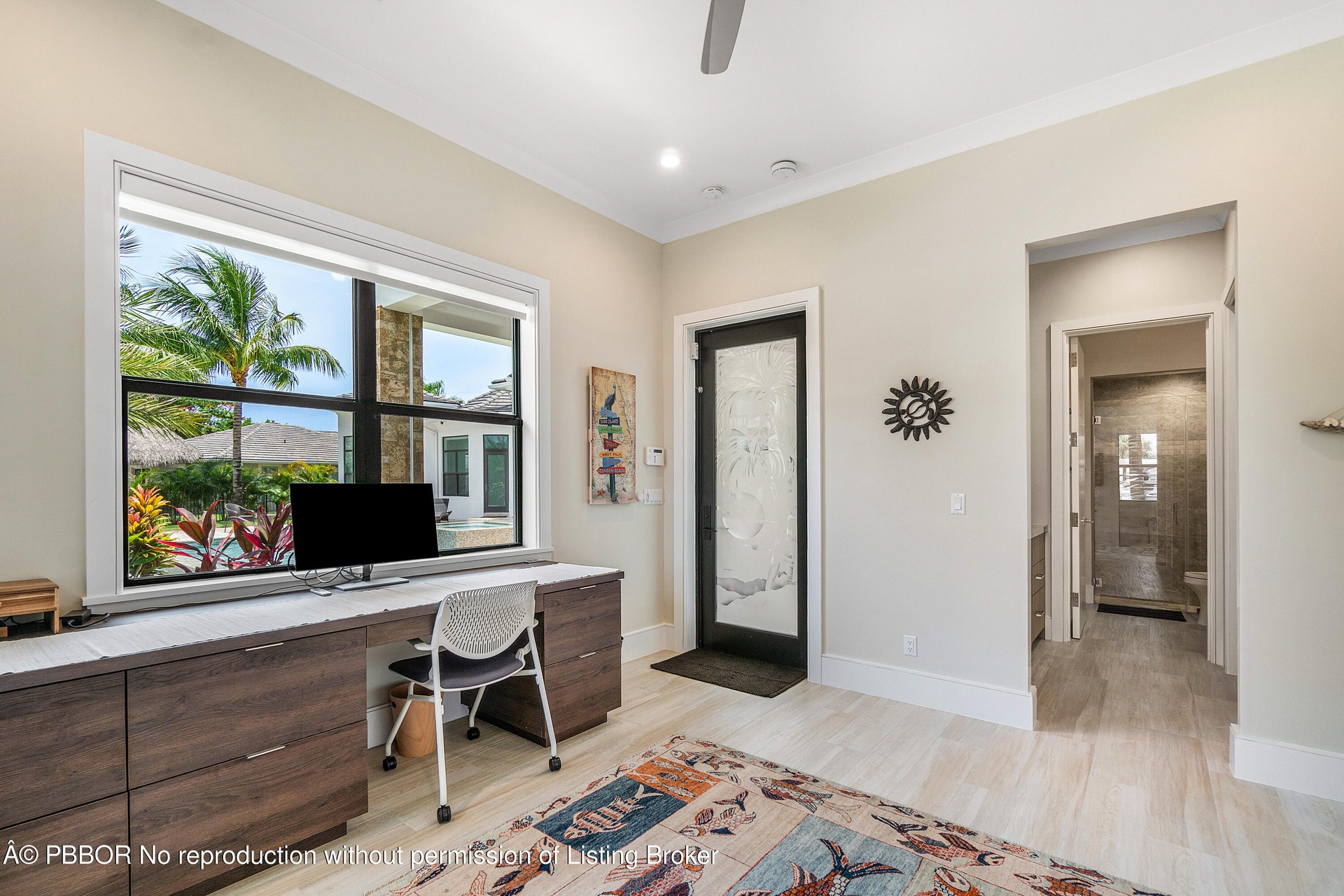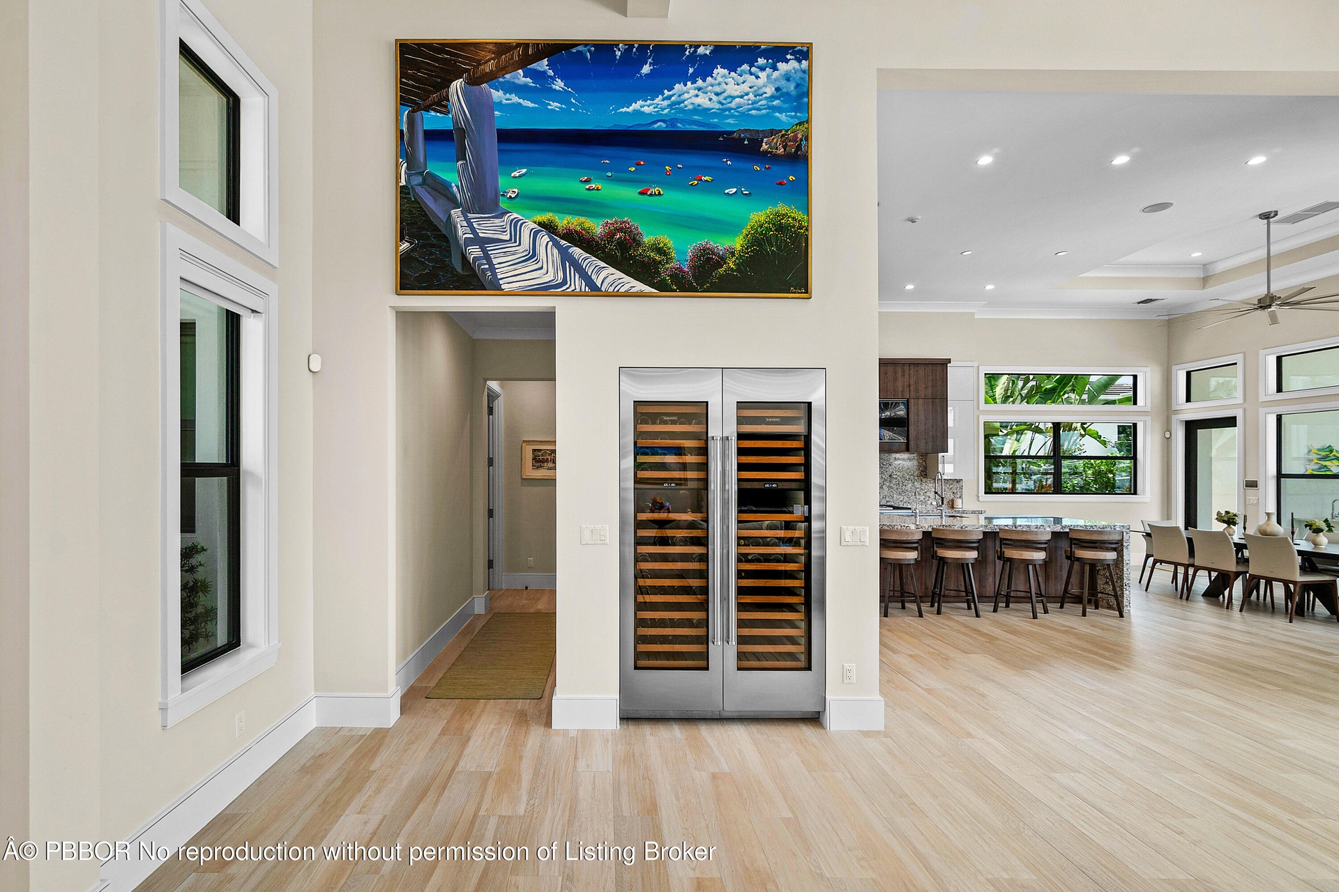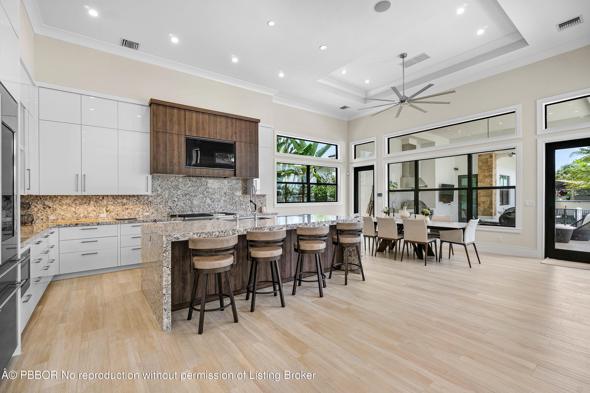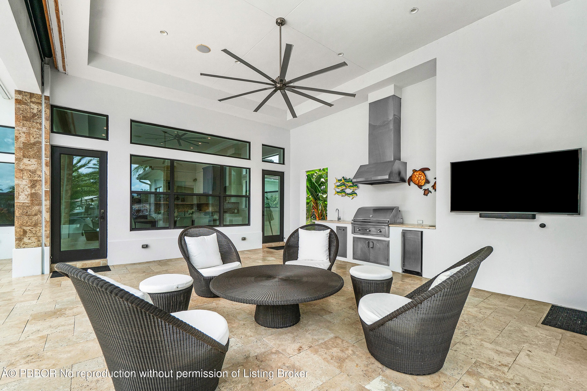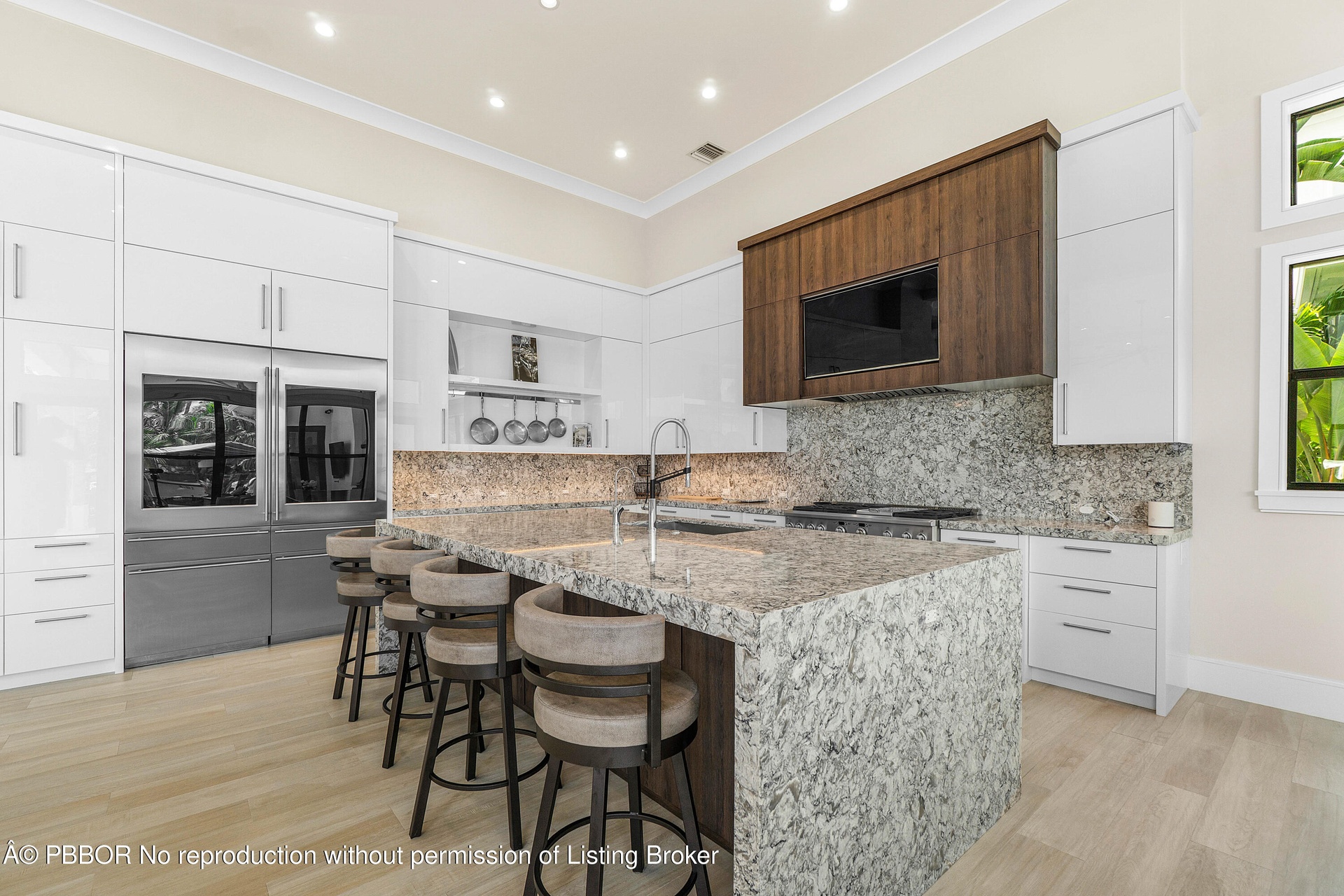 DescriptionWaterfront Luxury Living in Prime Boater's Location! Welcome to this exceptional waterfront residence offering over 130 feet of deep water frontage just one canal from the Intracoastal. Built in 2017, this custom-designed residence features 4 bedrooms and 4 baths, including a private guest house, all situated on a premium 1/3-acre lot at the widest point of the canal for optimal water views and turning radius. The grand great room welcomes you with soaring 16' ceilings and breathtaking waterfront vistas. Ideal for boating enthusiasts, the property includes 4 slips (36 ft. -30,000 lb. lift , 34 ft. 14000 lb. lift , 55 ft., and a 28 ft. water slip) just a one-minute ride to the Intracoastal. Crafted with the finest materials and attention to detail, the home boasts a chef's kitchen with a dramatic 3" quartz waterfall island, top-tier appliances, and sleek custom cabinetry with a 86" built-in TV. The open-concept design is perfect for entertaining, extending seamlessly to a resort-style saltwater pool and spa, travertine sun deck, and a covered lanai with a summer kitchen, TV, hooded vent, and phantom screens.