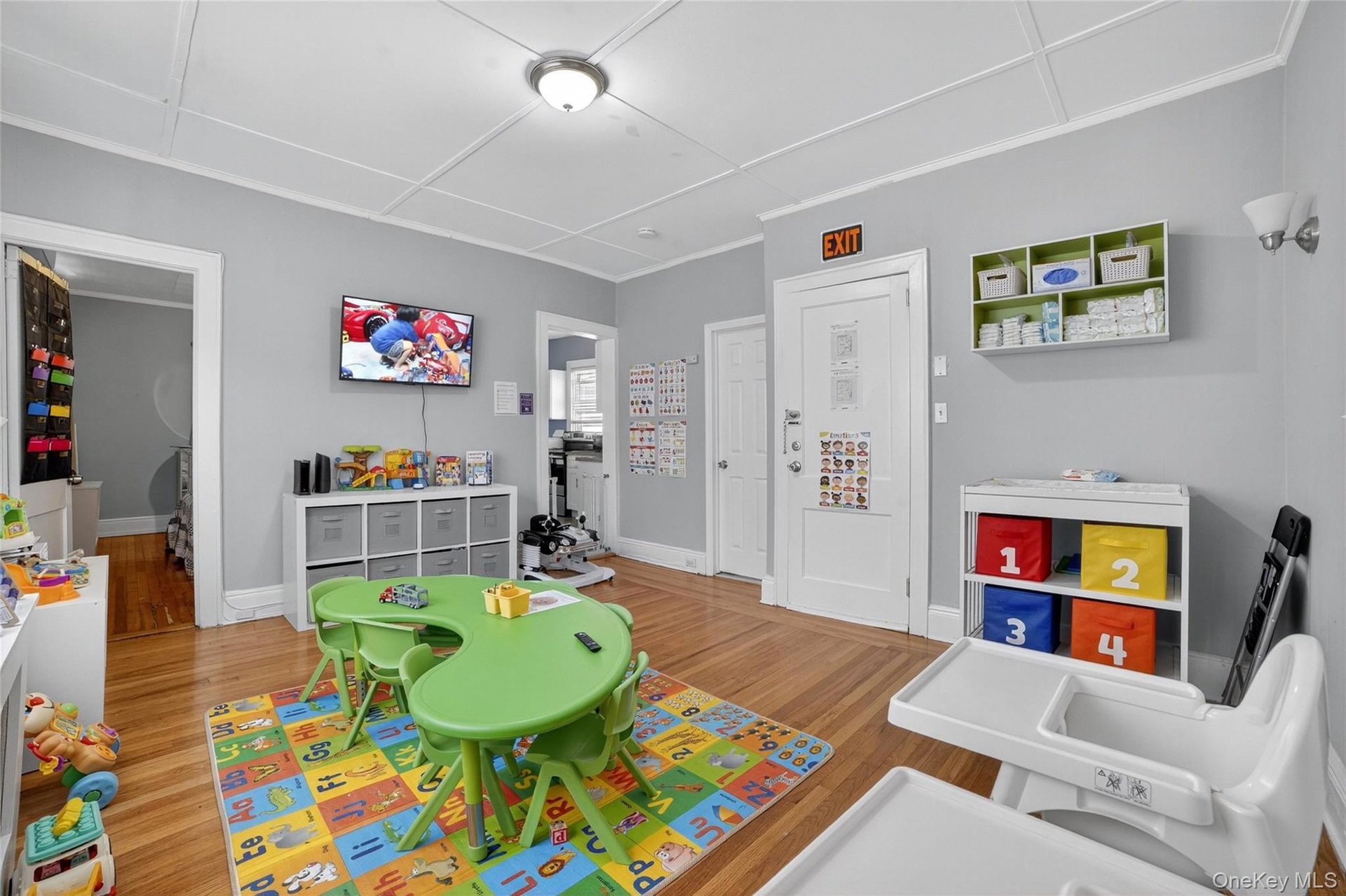 - Game room featuring a wall mounted air conditioner and tile patterned floors