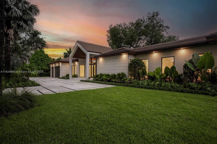 Stunning new construction in the desirable residential enclave of Miller Drive Estates. This expansive modern residence spans over 8,000 total SqFt and features 7 bedrooms, 6 bathrooms, and luxurious designer finishes throughout. The gourmet kitchen boasts custom cabinetry, quartz countertops, top-tier appliances, and generous wine storage. Soaring ceilings and impact windows fill the spacious living areas with natural light. The primary suite offers a spa-inspired bathroom and an oversized walk-in closet. Enjoy a 3-car garage, smart home technology, and a resort-style terrace with summer kitchen, pool, and large backyard adorned with mature trees. An ideal home for entertaining and elevated everyday living, perfectly located near top-rated schools, dining, shopping, and major highways.