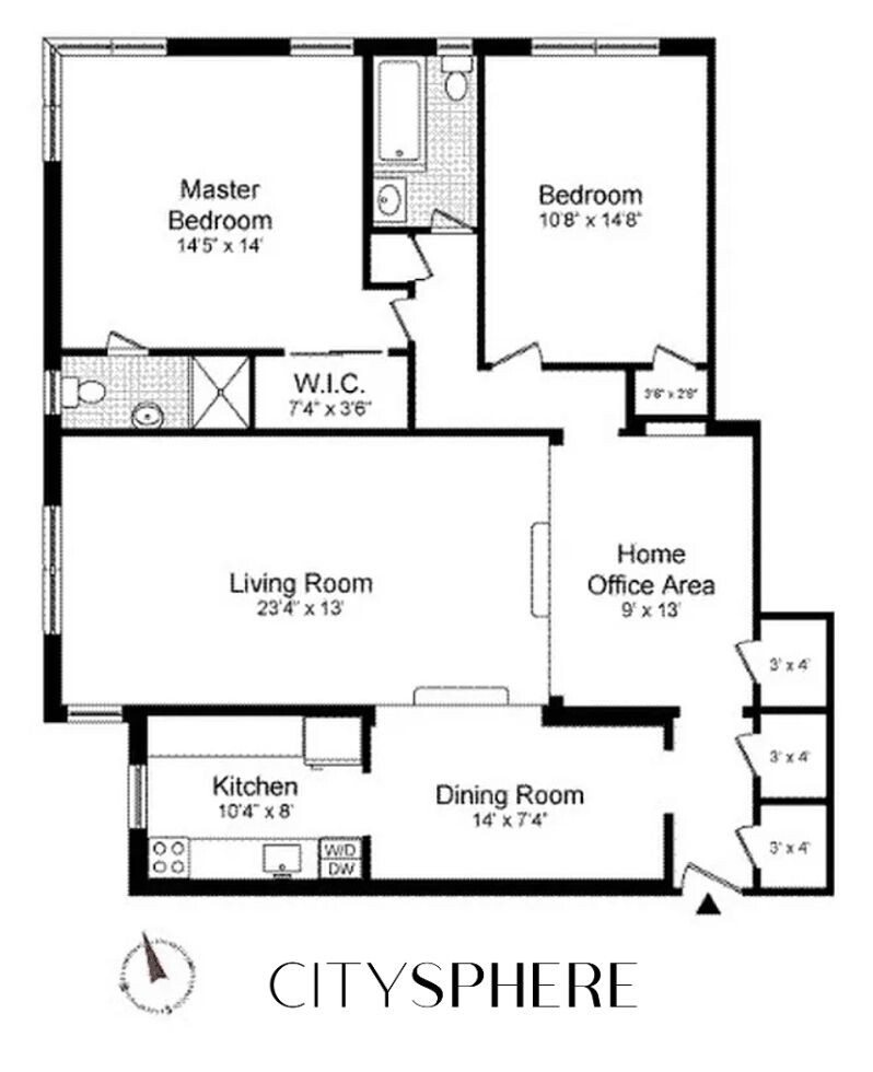 The windowed kitchen is filled with light and features a combined washer/dryer unit for added convenience, in addition to the building's central laundry room. Both bathrooms are windowed, a rare and valuable feature in New York City homes.
