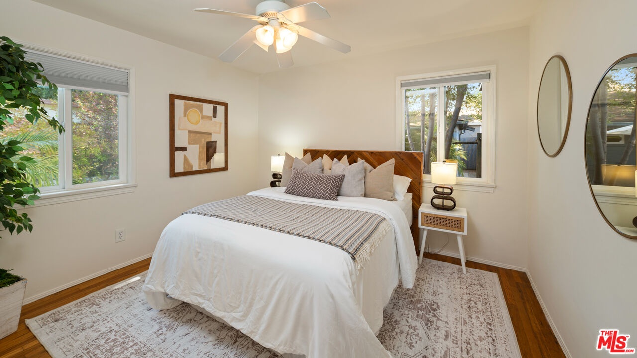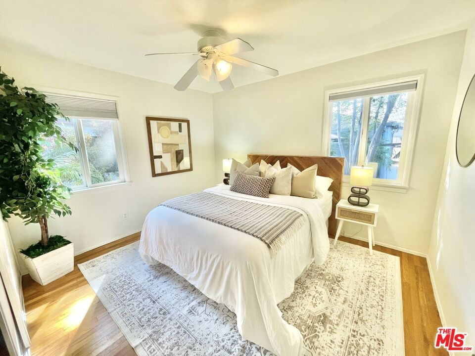 Be Charmed by this wonderful traditional home. Fabulously located on a tree lined street in one of the most sought after Mar Vista neighborhoods. Turn-key, move-in condition. Spacious hm, pretty hardwood floors, living room open to dining area & primary suite w/walk in closet, en suite bath. Galley kitchen w/stainless steel appliances, service porch, stacked washer/dryer & utility sink. Central HVAC. Fenced front & back yards, 2-car garage. Mar Vista Elementary School District.