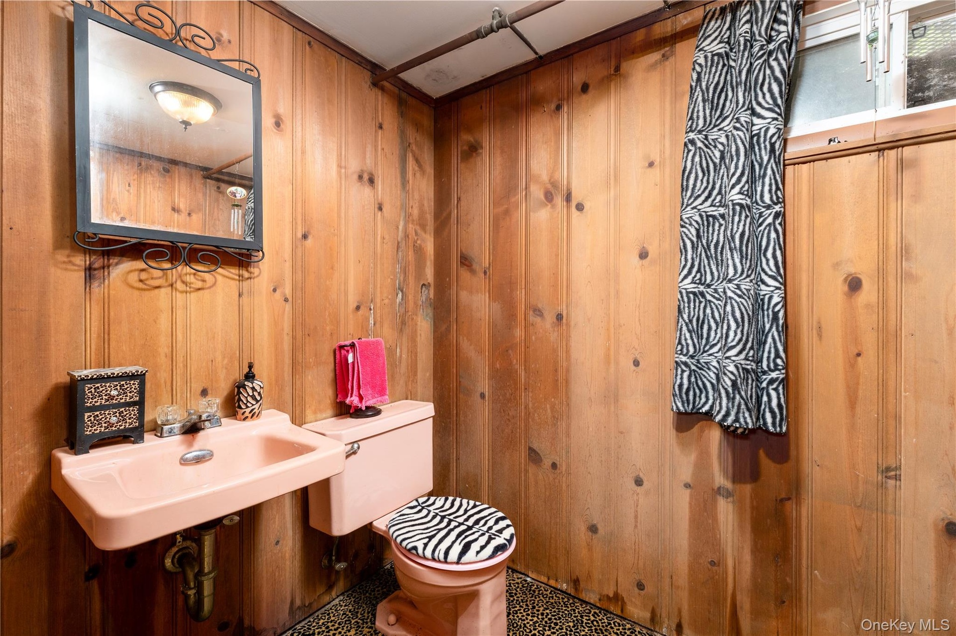 - Converted Garage into Family room with high vaulted ceiling, stone finish flooring, a baseboard heating unit, and stairs