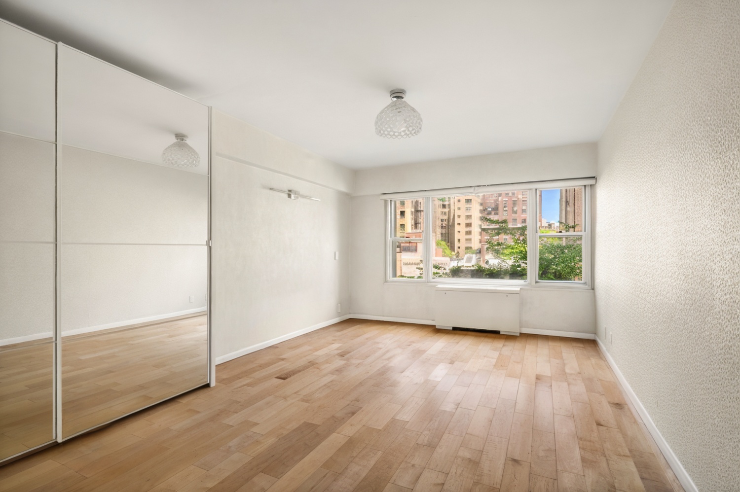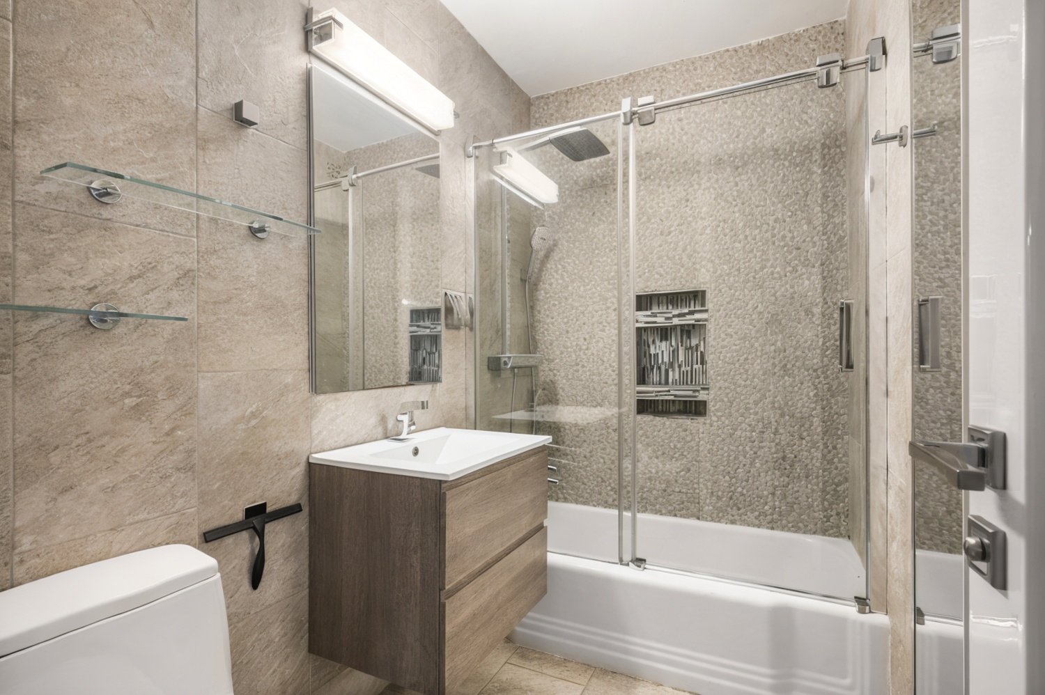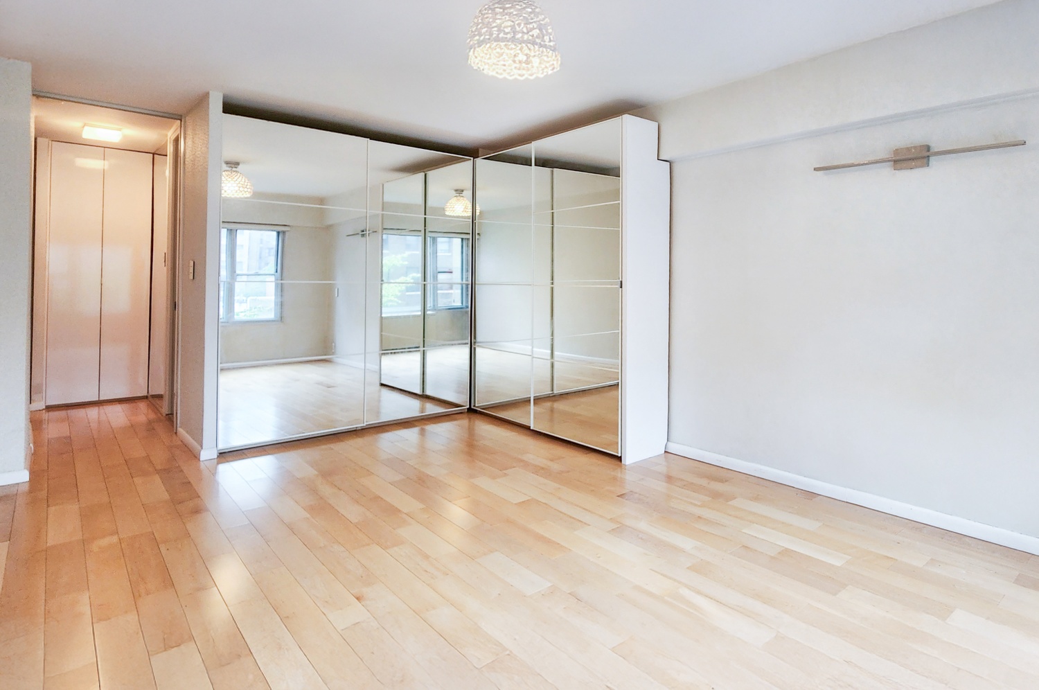 This space has just the right balance of mirrors, with opaque glass bathroom and bedroom doors. A must-see apartment.