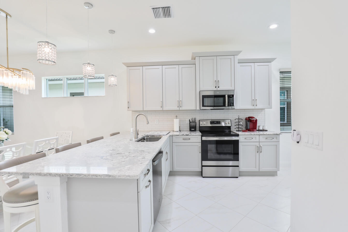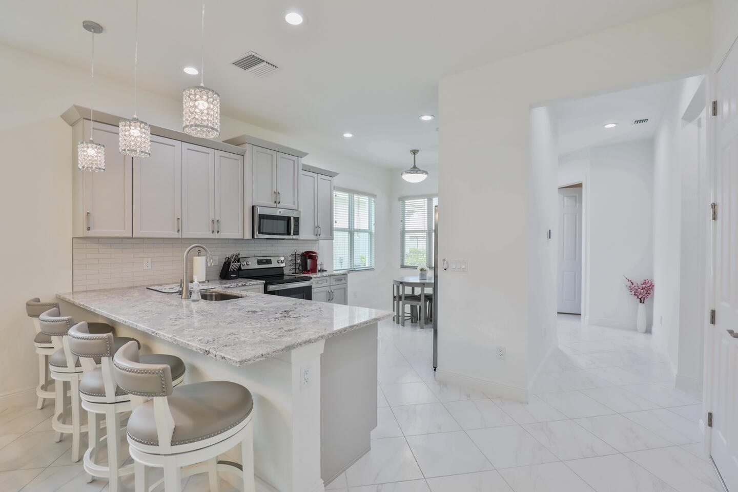 Beautiful 2 bed + den, 2 bath home with 2-car garage in the highly sought-after PGA Verano community in Port St. Lucie. This home offers a luxury feel throughout with 42'' cabinets, stunning stone countertops, and stainless steel appliances. The open-concept layout is perfect for entertaining, and custom lighting adds an elegant touch. Enjoy peace of mind with energy-efficient impact windows. Conveniently located near I-95 and Crosstown Parkway for easy commuting. Resort-style living at its finest!