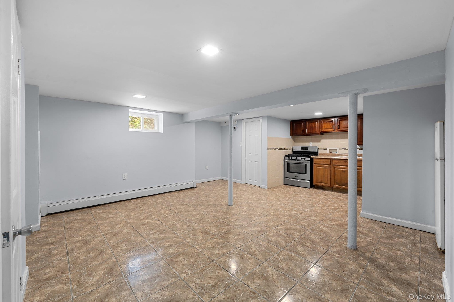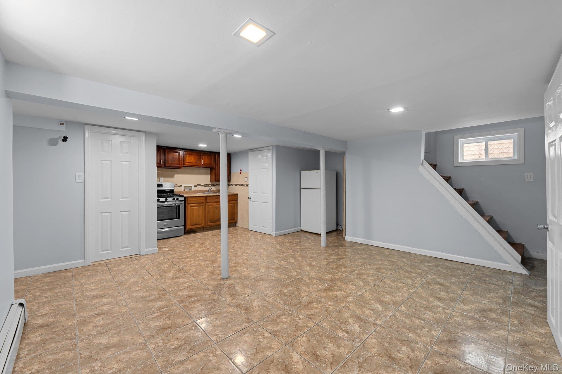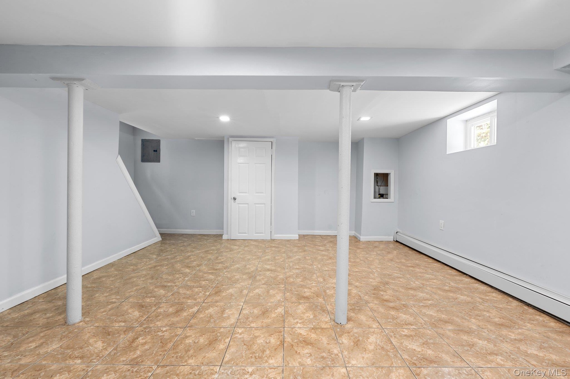 - Basement with baseboard heating and recessed lighting