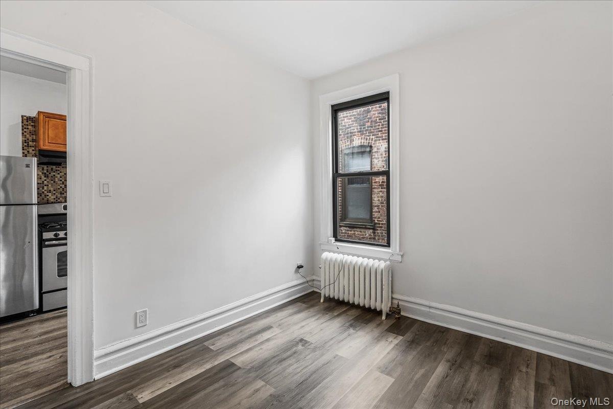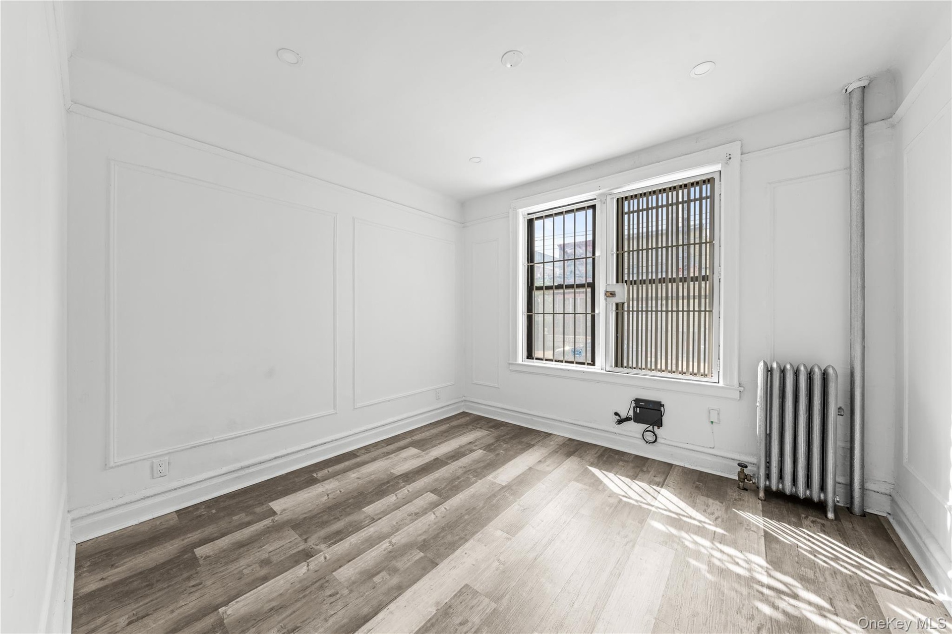 - Spare room with radiator, wood finished floors, recessed lighting, and a decorative wall