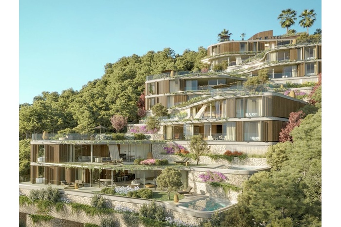 The interior design combines organic shapes, natural materials, and thoughtful lighting to ensure maximum comfort. All surfaces and furnishings have been carefully selected according to the highest international standards. The kitchen is equipped with appliances from Cocinart, Gaggenau, Bora, and Vola.