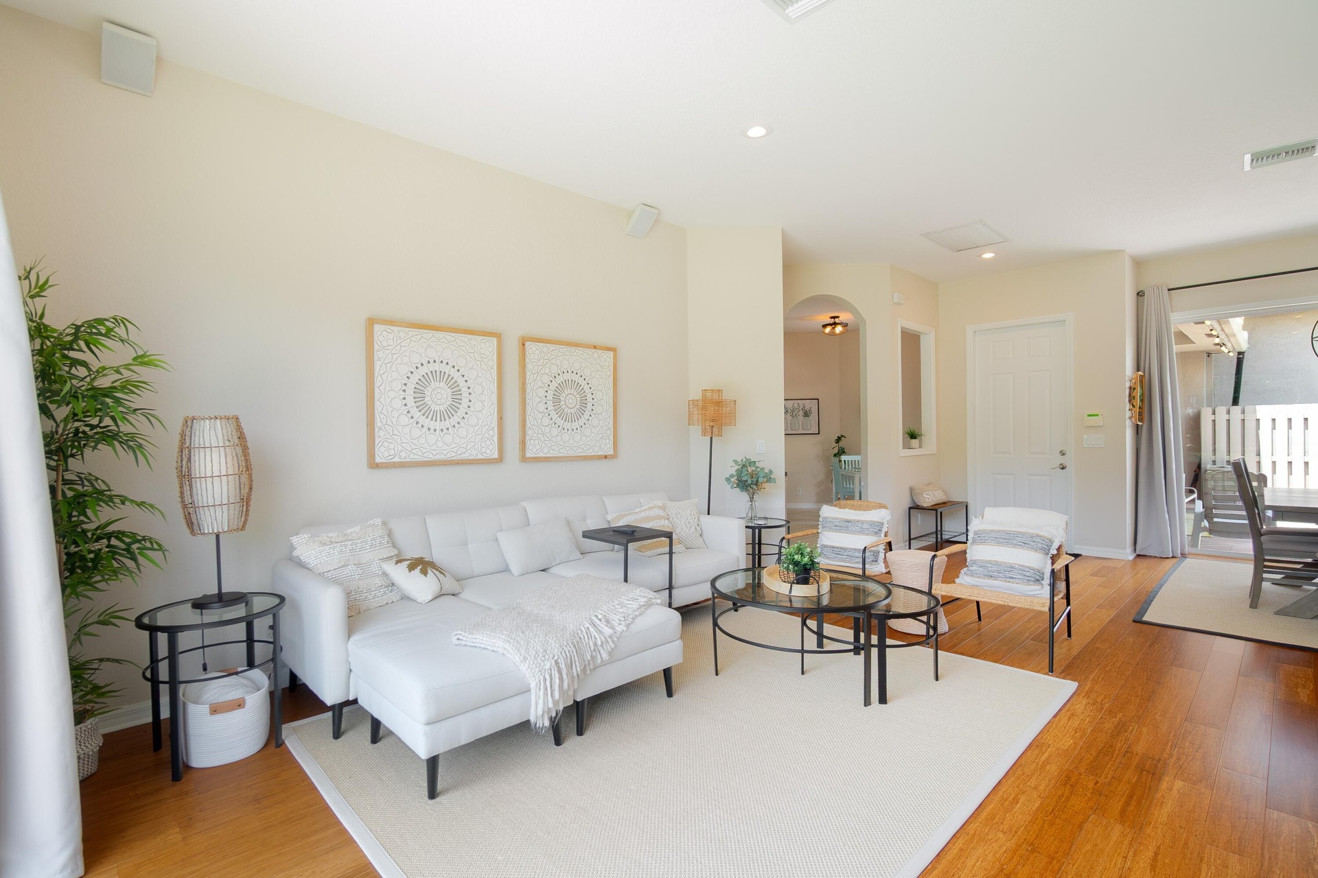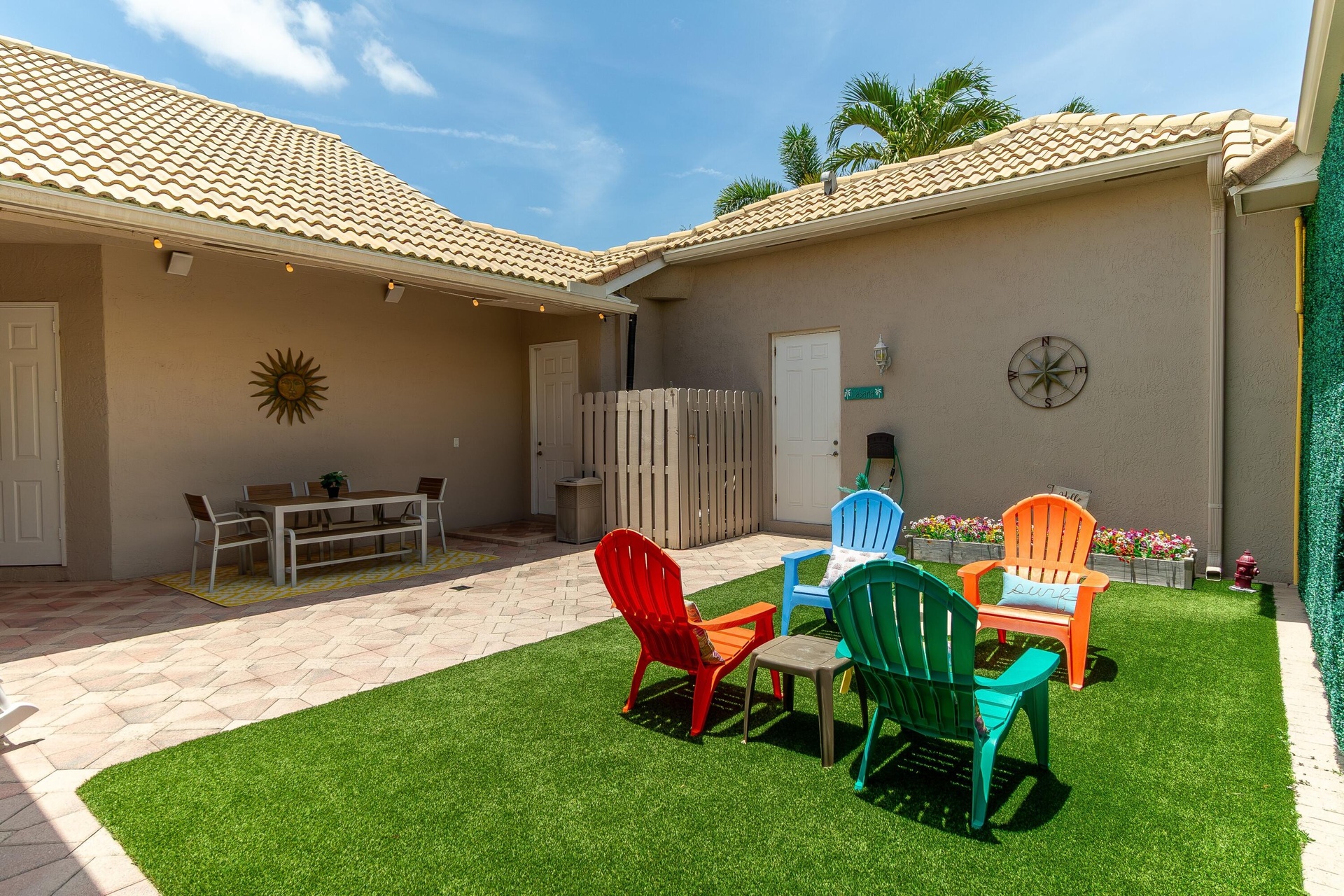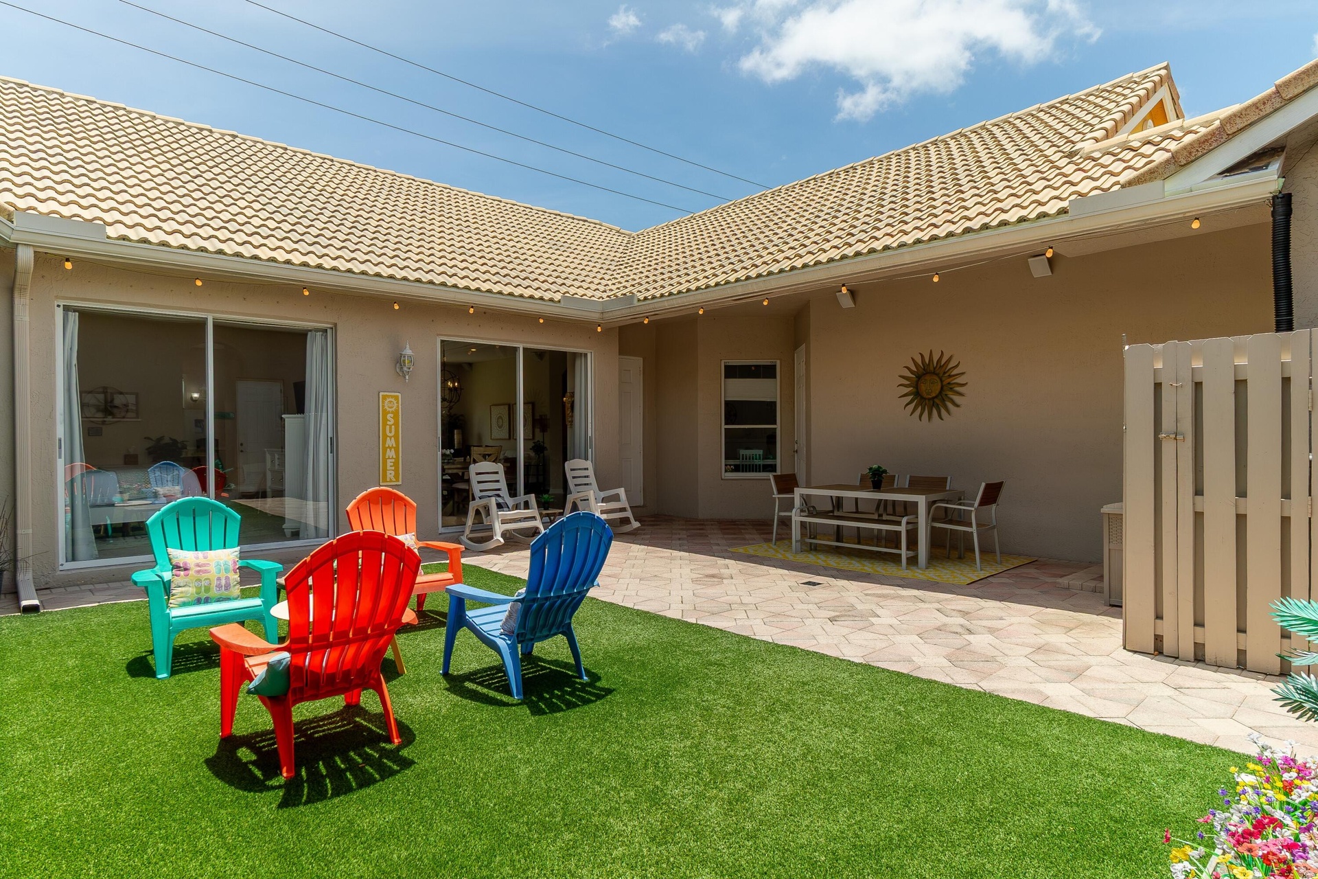 Welcome to your rarely available courtyard retreat in Boynton Gardens! This unique 3 bedroom, 3 bath villa boasts soaring 10 ft. ceilings, abundant natural light and a versatile layout for both comfort and flexibility. The primary suite features dual vanities, soaking tub and a separate shower for added luxury. The spacious great room opens seamlessly to a large private courtyard, ideal for entertaining, enjoying your morning coffee, or unwinding under the stars. A detached guest suite with its own entrance and full bath provides full privacy - perfect for visiting family, a home office or multi-generational living. With very low HOA fees, a community pool and a location near shopping, dining and major roadways, this home offers the perfect blend of style, function and convenience!