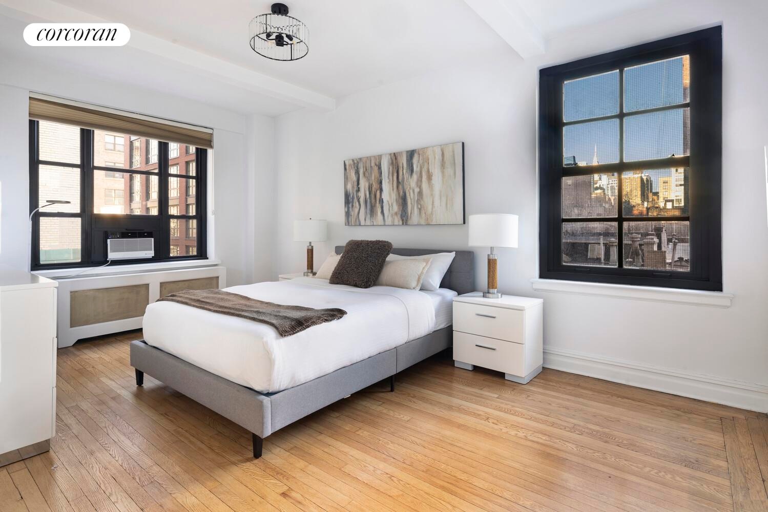 A beautiful and charming pre-war one bedroom with wood burning fireplace and open kitchen in the sought after Gramercy House. This move in ready home features original architecture, including beamed ceilings, hardwood floors, and a wood burning fireplace. There is an open kitchen with stainless steel appliances, a windowed bathroom with original pre-war tiles, and abundant closet space throughout. The kitchen opens to the great room that offers ample space for both living and dining. This sunlit home with large casement windows offers North and East exposures. The spacious bedroom can easily fit a king size bed and it offers a view of the Chrysler building!