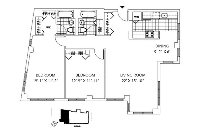 This two bedroom, two bath home has an expansive living and dining room with views of the East River, lower Manhattan and Empire State Building. The large windows with three exposures, allow for sunlight to pour through all day long. This spacious home has an open floor plan. This kitchen opens to the windowed dining alcove that could easily be closed off to make a home office or nursery. The large primary bedroom with en-suite bathroom, also boasts a spacious walk-in closet. This home is equipped with an in-unit washer and dryer. This home is virtually staged.