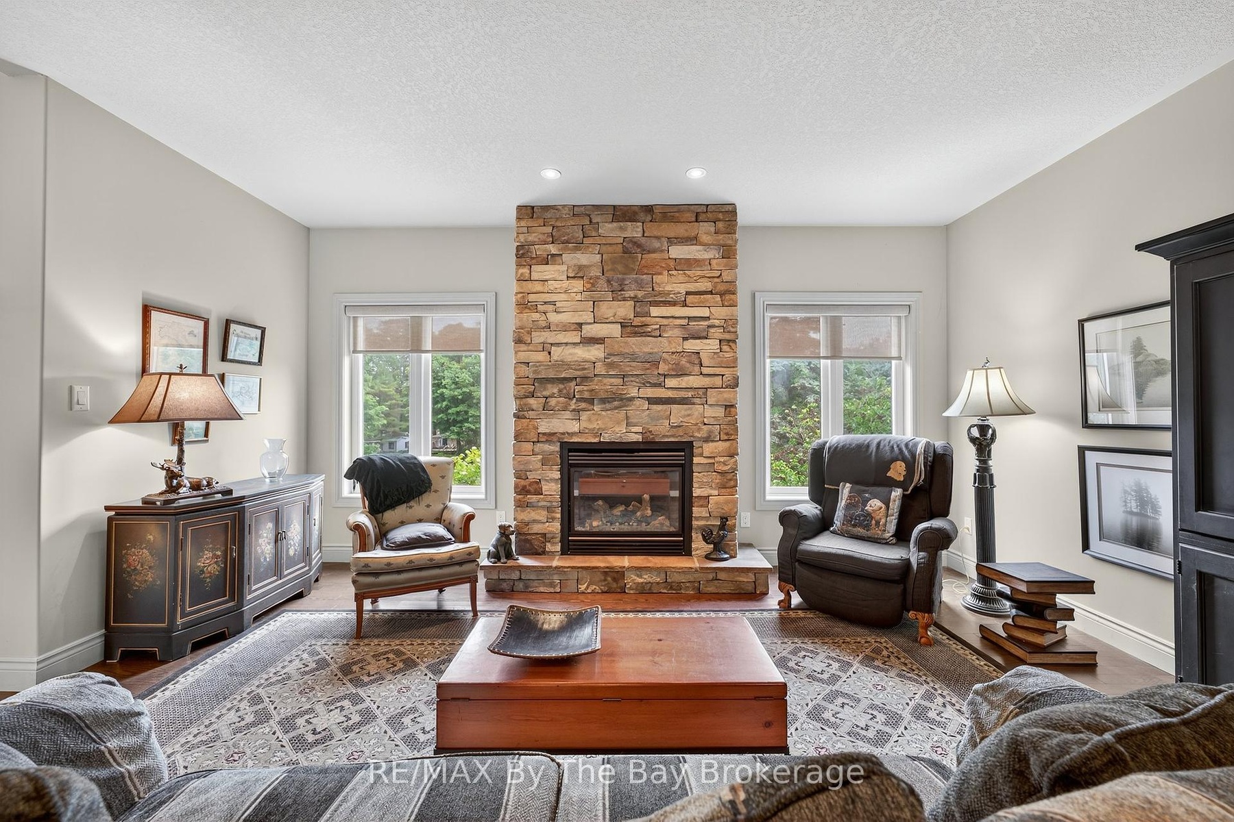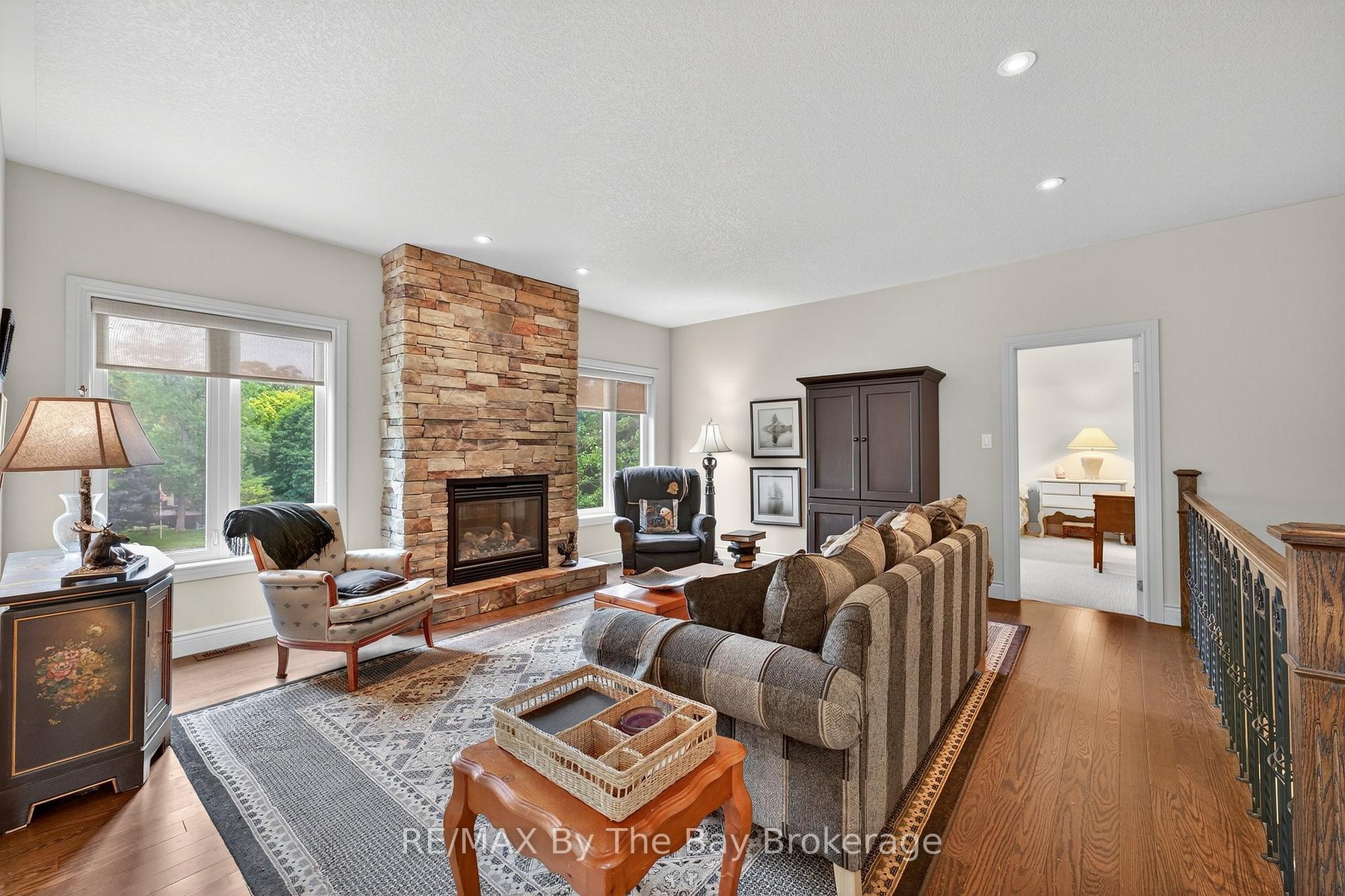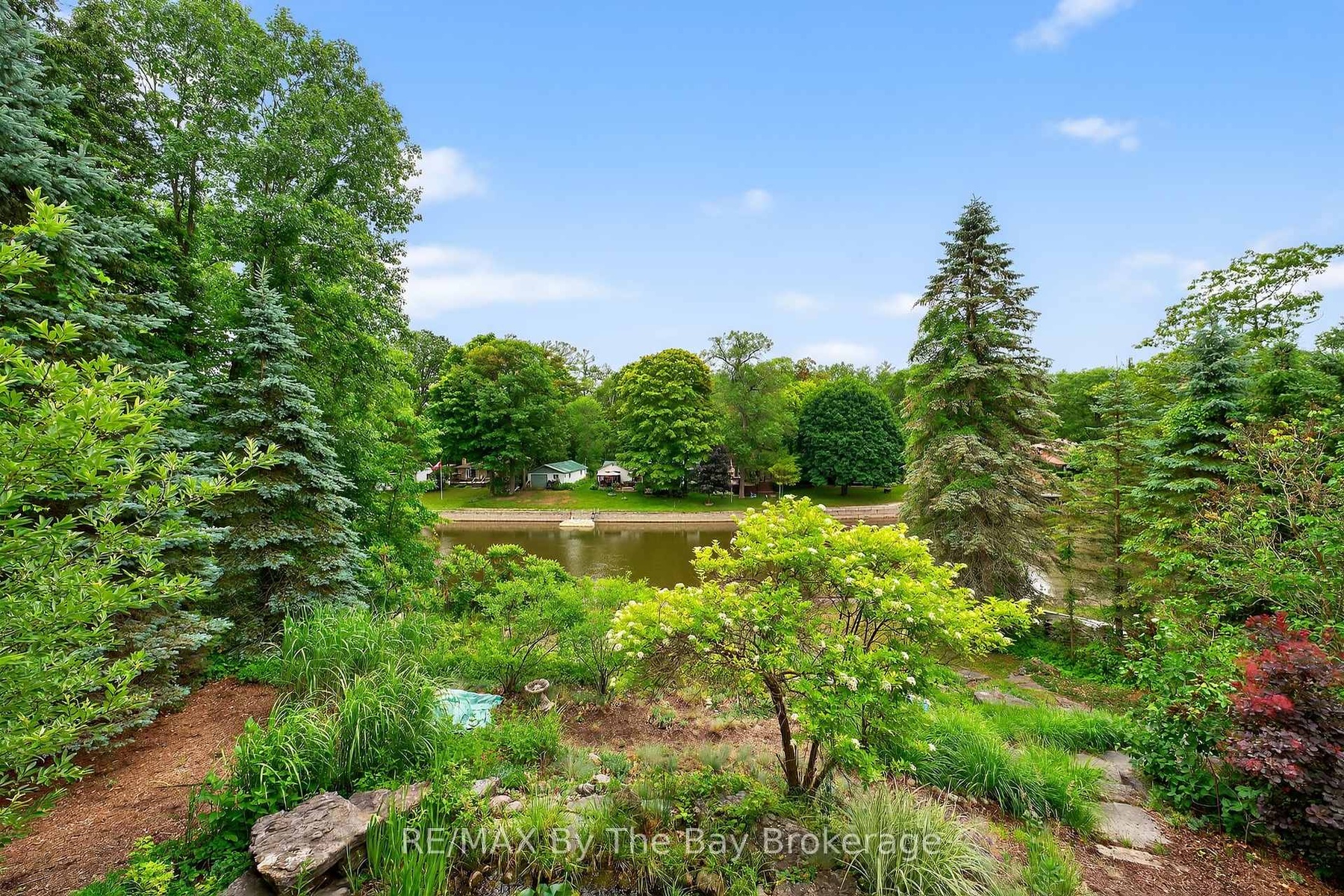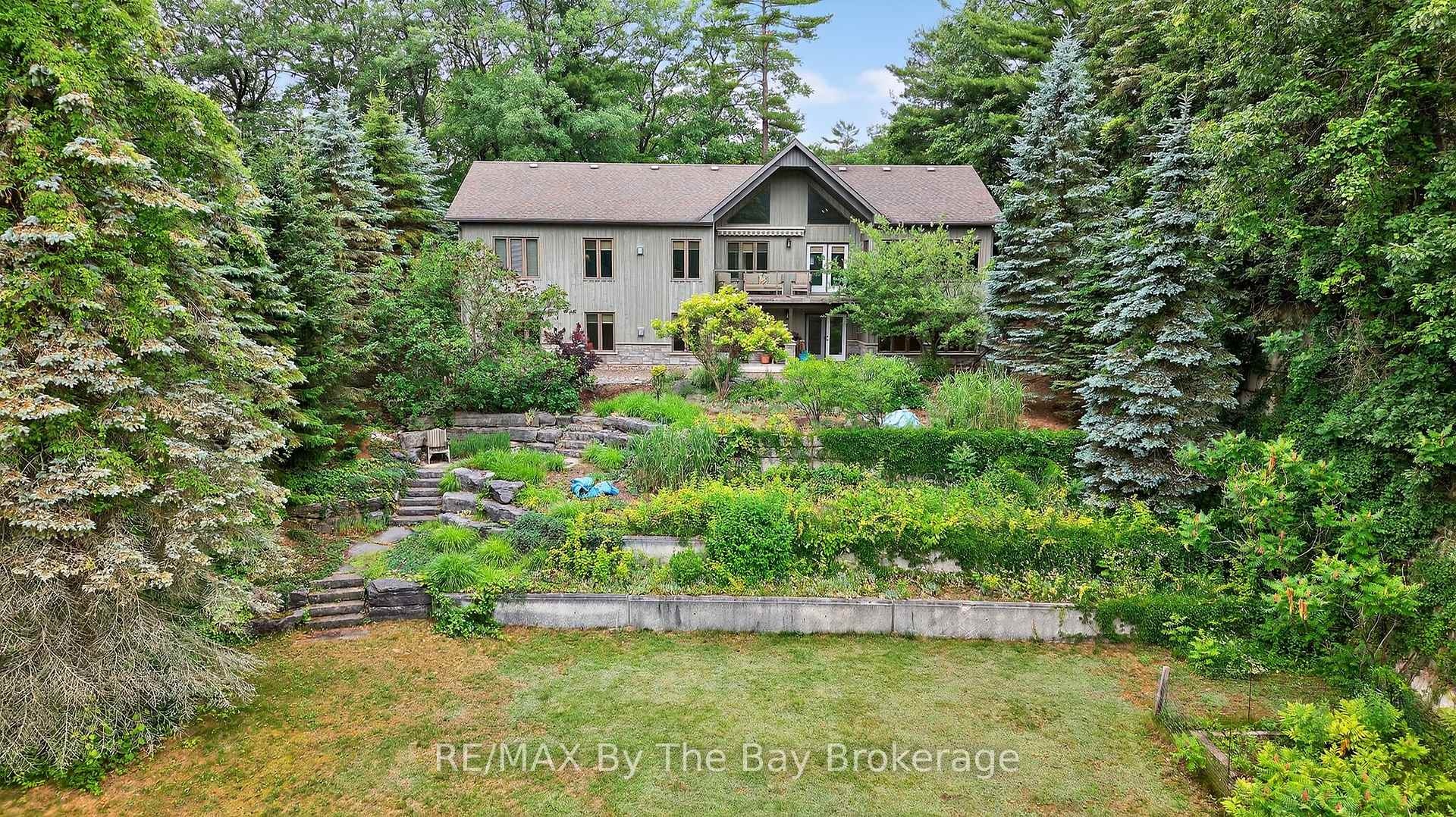 DescriptionA true serene feeling from the moment you step on the property. Custom built Timlock home with 2 bedrooms plus 2 additional potential bedrooms as described below. This home has approximately 3,000 sq ft of finished living area, on a 100ft x 214ft Lot. Frontage of 100ft on the Nottawasaga River with a breakwall. The mature trees provide privacy while enjoying the river view from both levels of the home, as well as on the cozy back deck. The deck also includes a retractible awning for additional shade on hot summer day. Inside the home, you'll enter through the spacious foyer with glass french doors leading you into the main living area. The first thing you'll notice is the abundance of natural light that fills the home. The kitchen is equipped with refrigerator, stove, microwave, quartz counter tops and endless cabinet space. The main floor primary bedroom has a beautiful view of the landscaped backyard and river. It also has a walk-in closet and a 3pc ensuite with granite counters and a standup glass shower. The second bedroom, also located on the main floor, is equipped with its own private 4pc ensuite with granite counters. In addition to the 2 main floor bedrooms, there are two spacious bonus rooms with double doors that can be easily used as a 3rd and 4th bedroom. In the main living area, you'll notice the stunning stone fireplace which warms the settling of the living room. The private home office space provides a tranquil work setting with views of the river and the ability to be converted to a 3rd main floor bedroom. Downstairs in the basement, the flooring is a travertine tile with plenty of open space to have an additional family room, games area and the capability for the 4th bedroom. The basement also has a large laundry room, 3pc bathroom with a stand up glass shower, a storage room with built-ins and cold cellar. Through the walk-out basement door, you are welcomed by the love of the garden and pond. Follow the stone steps to enjoy the rivers edge!Amenities- Awnings