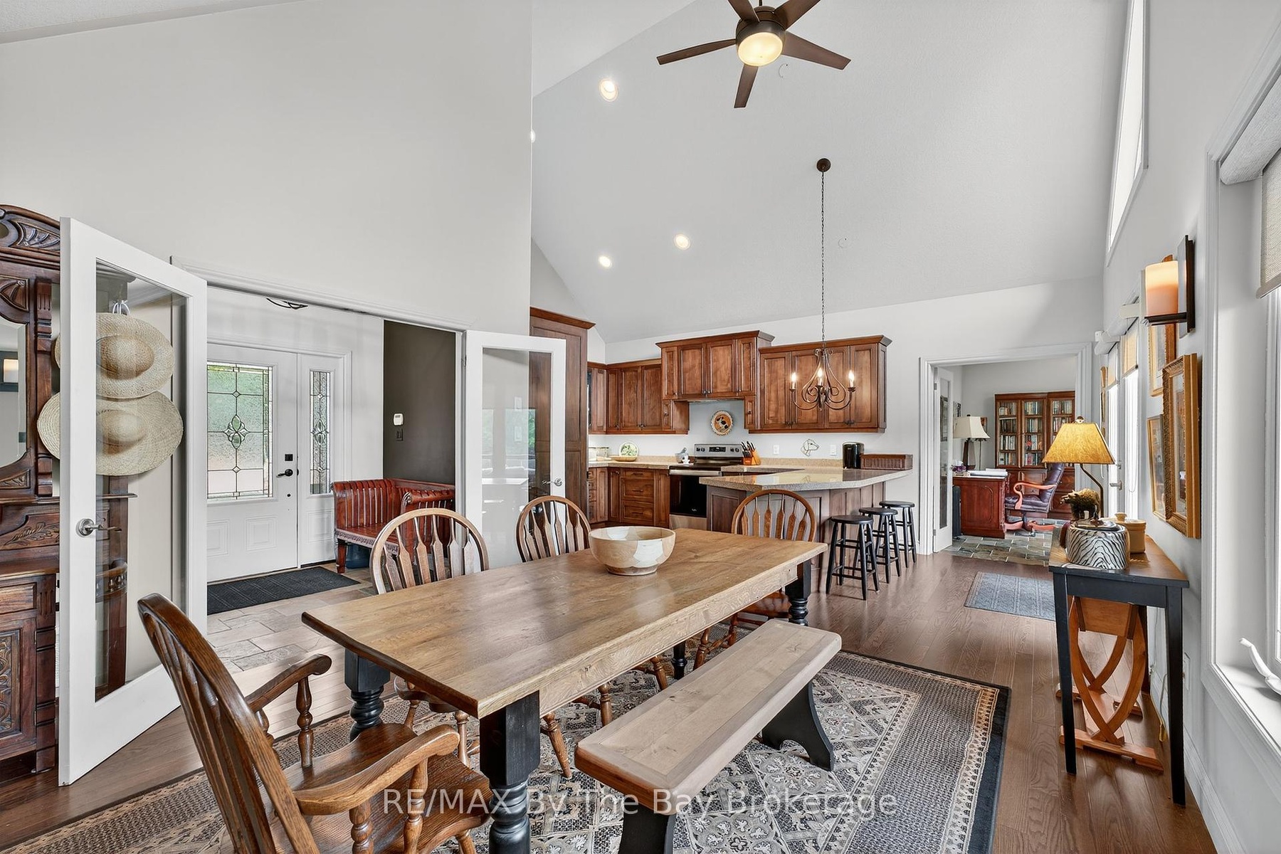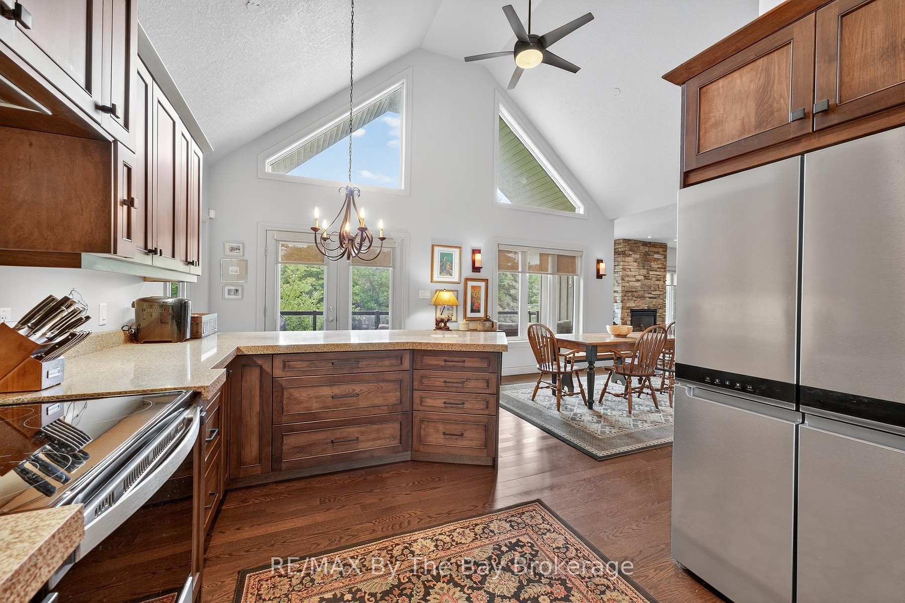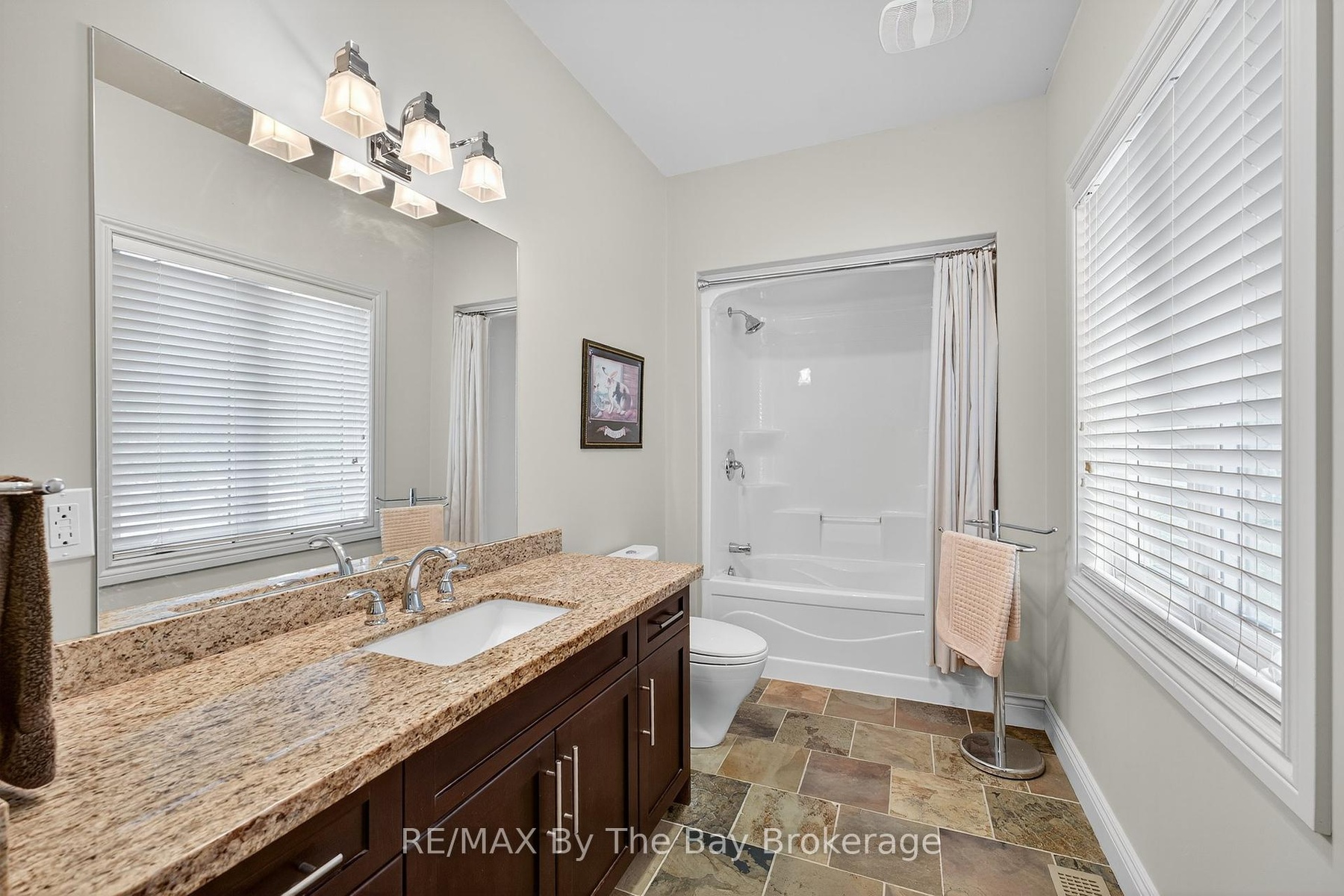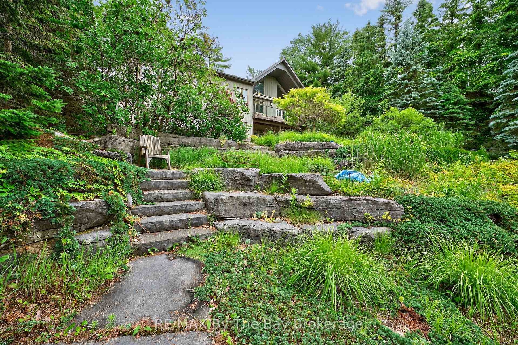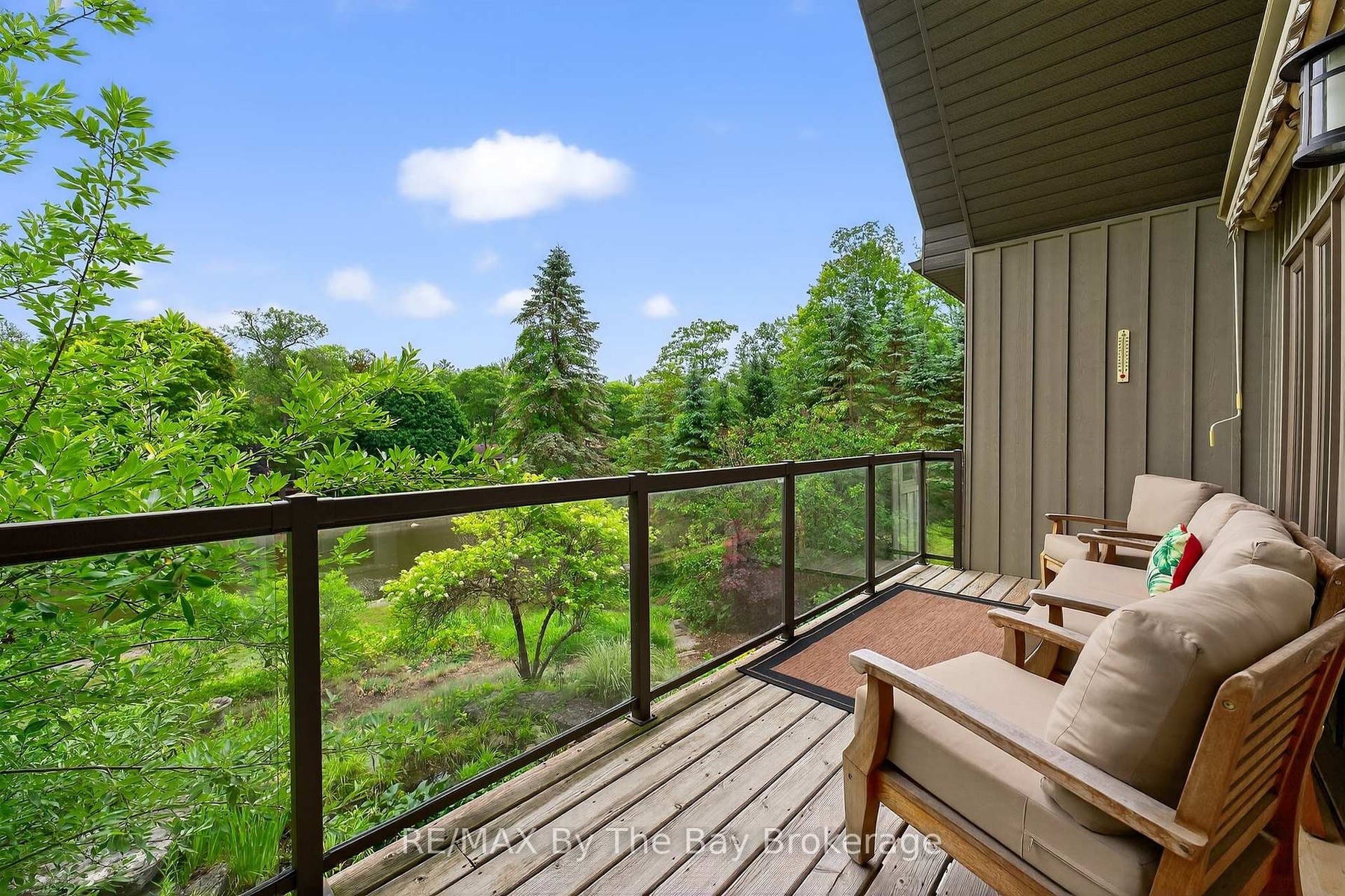 DescriptionA true serene feeling from the moment you step on the property. Custom built Timlock home with 2 bedrooms plus 2 additional potential bedrooms as described below. This home has approximately 3,000 sq ft of finished living area, on a 100ft x 214ft Lot. Frontage of 100ft on the Nottawasaga River with a breakwall. The mature trees provide privacy while enjoying the river view from both levels of the home, as well as on the cozy back deck. The deck also includes a retractible awning for additional shade on hot summer day. Inside the home, you'll enter through the spacious foyer with glass french doors leading you into the main living area. The first thing you'll notice is the abundance of natural light that fills the home. The kitchen is equipped with refrigerator, stove, microwave, quartz counter tops and endless cabinet space. The main floor primary bedroom has a beautiful view of the landscaped backyard and river. It also has a walk-in closet and a 3pc ensuite with granite counters and a standup glass shower. The second bedroom, also located on the main floor, is equipped with its own private 4pc ensuite with granite counters. In addition to the 2 main floor bedrooms, there are two spacious bonus rooms with double doors that can be easily used as a 3rd and 4th bedroom. In the main living area, you'll notice the stunning stone fireplace which warms the settling of the living room. The private home office space provides a tranquil work setting with views of the river and the ability to be converted to a 3rd main floor bedroom. Downstairs in the basement, the flooring is a travertine tile with plenty of open space to have an additional family room, games area and the capability for the 4th bedroom. The basement also has a large laundry room, 3pc bathroom with a stand up glass shower, a storage room with built-ins and cold cellar. Through the walk-out basement door, you are welcomed by the love of the garden and pond. Follow the stone steps to enjoy the rivers edge!Amenities- Awnings