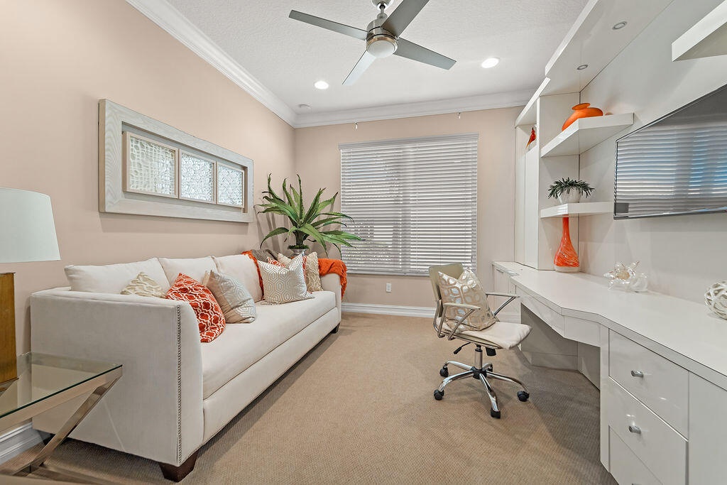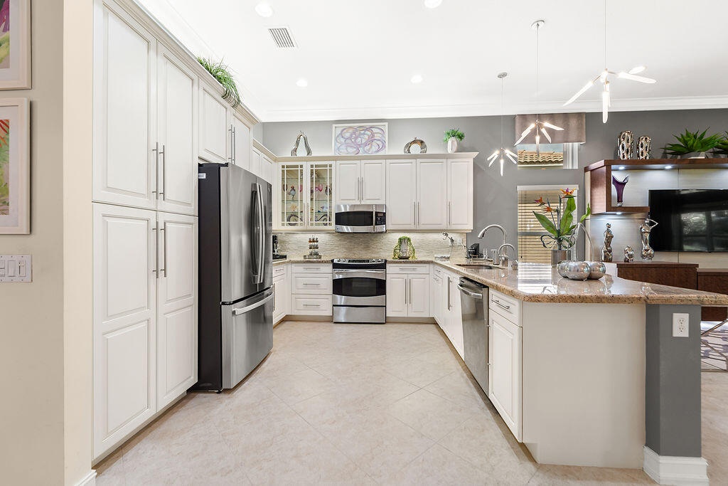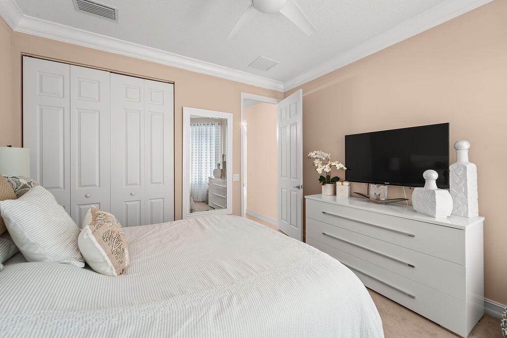 Welcome to this impeccably maintained, move-in ready home that effortlessly blends elegance, comfort, and functionality. Featuring an open-concept layout filled with natural light, this bright and spacious residence offers two generous bedrooms, a versatile den, a formal living room, and a formal dining room--perfect for both everyday living and entertaining. The gourmet kitchen is a standout, with granite countertops, upgraded cabinetry, quality appliances, and a brand new refrigerator. The primary suite provides a serene retreat with custom finishes and a spa-like bathroom. Neutral flooring, stylish lighting, and ceiling fans add warmth and sophistication throughout.