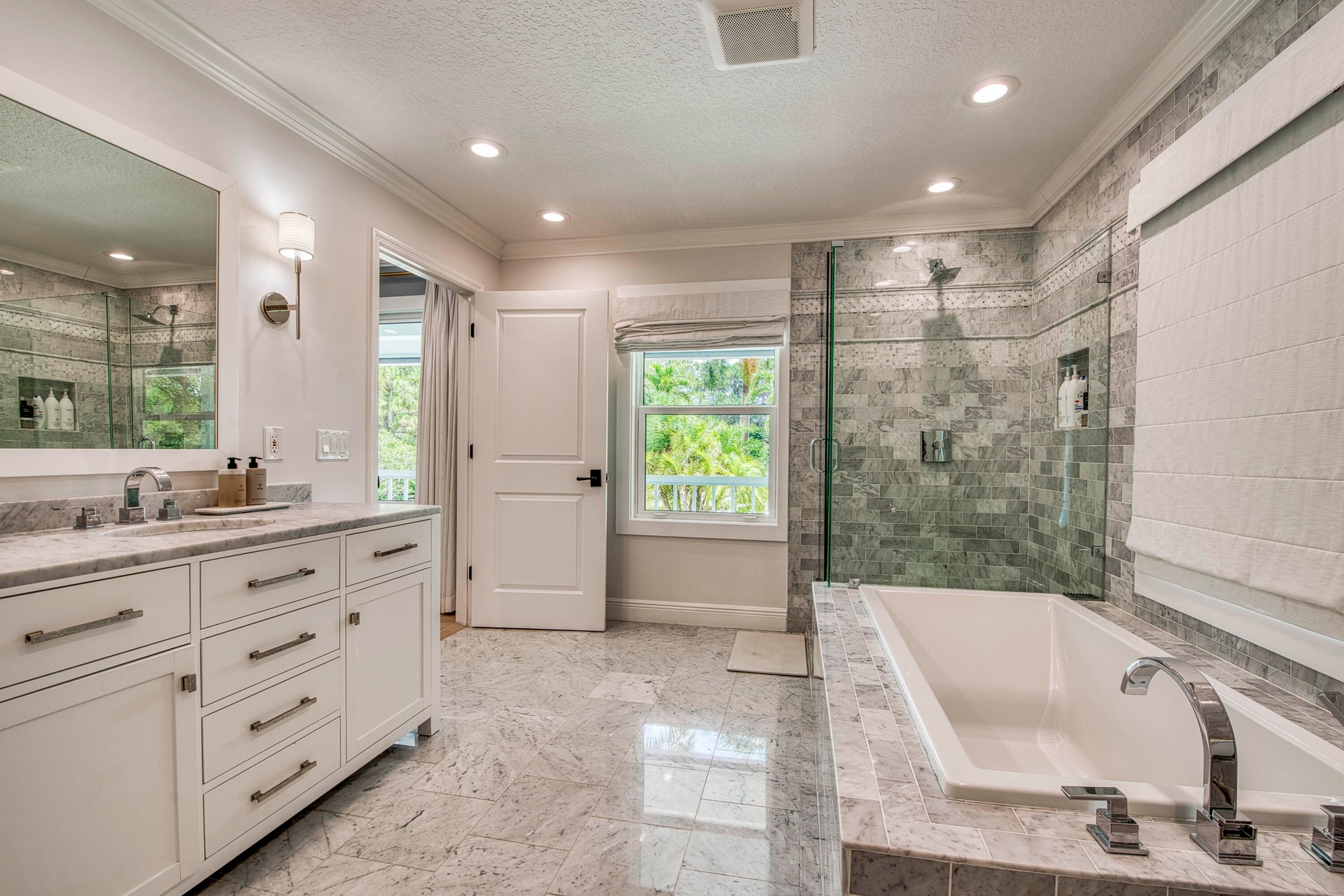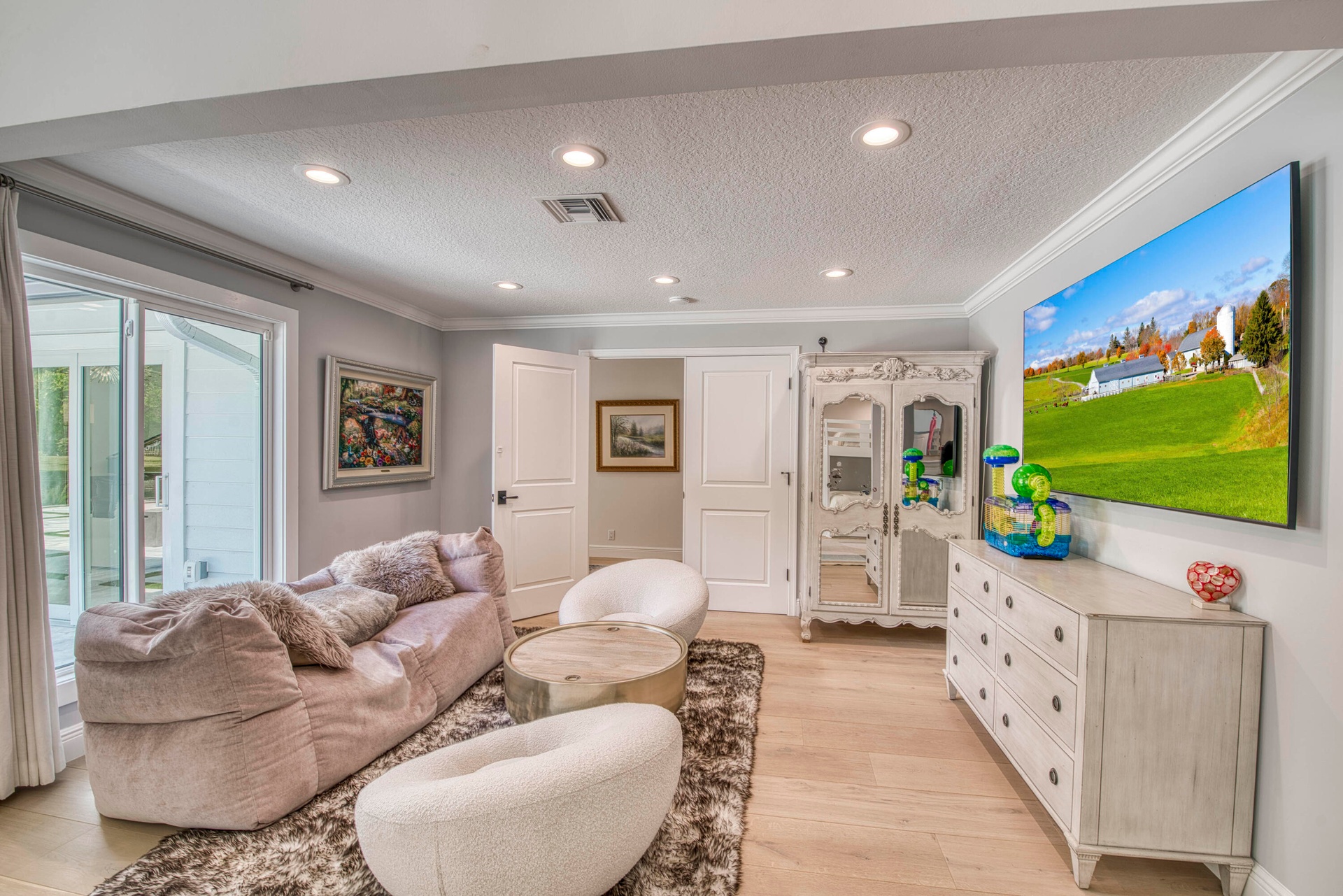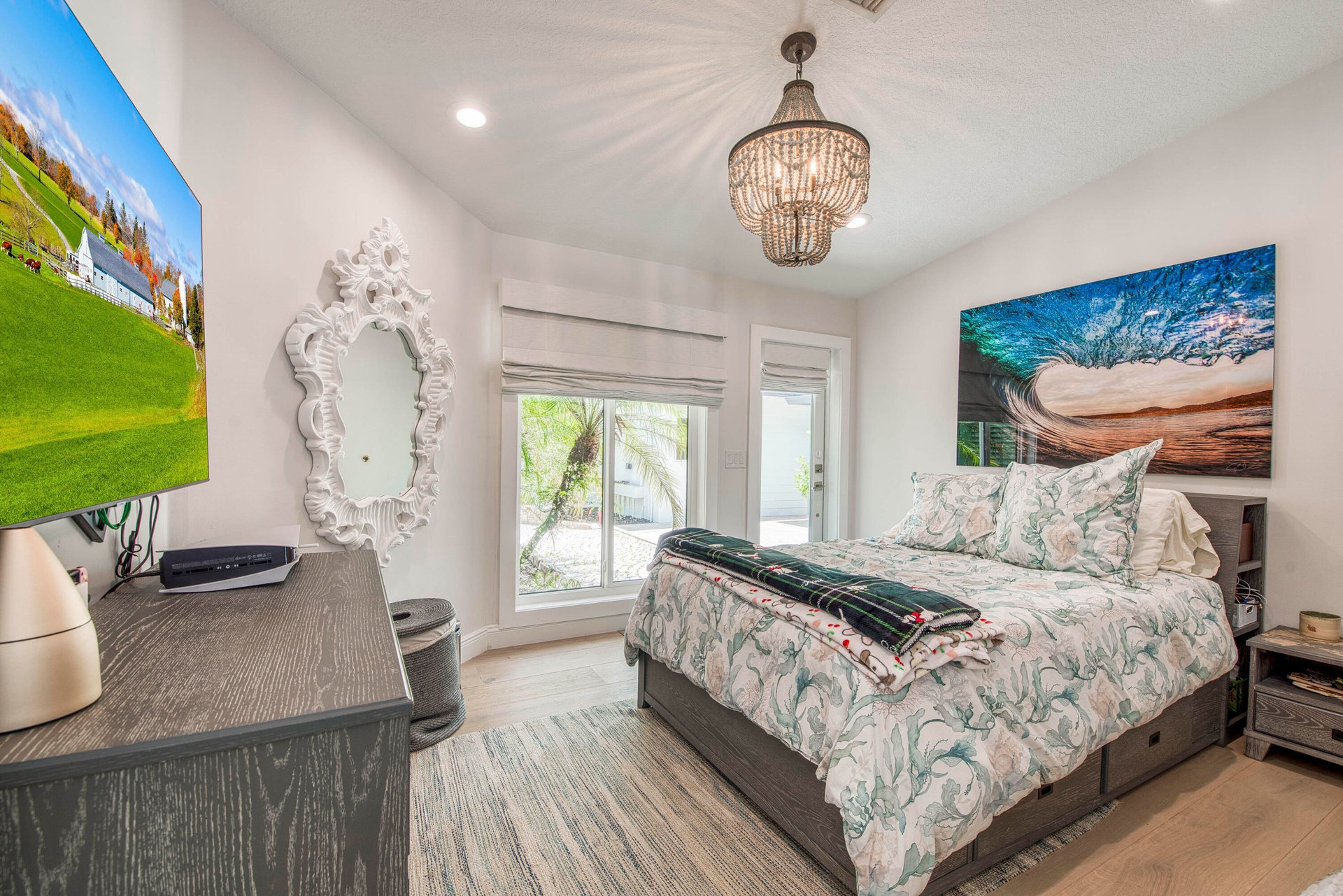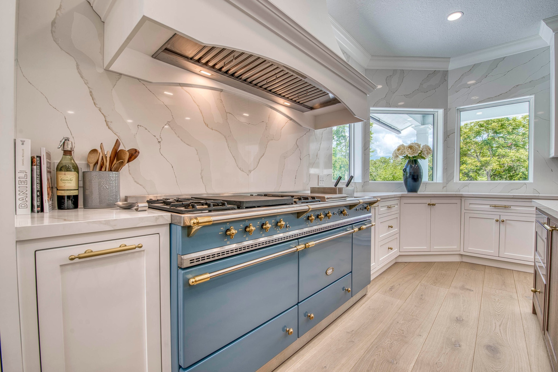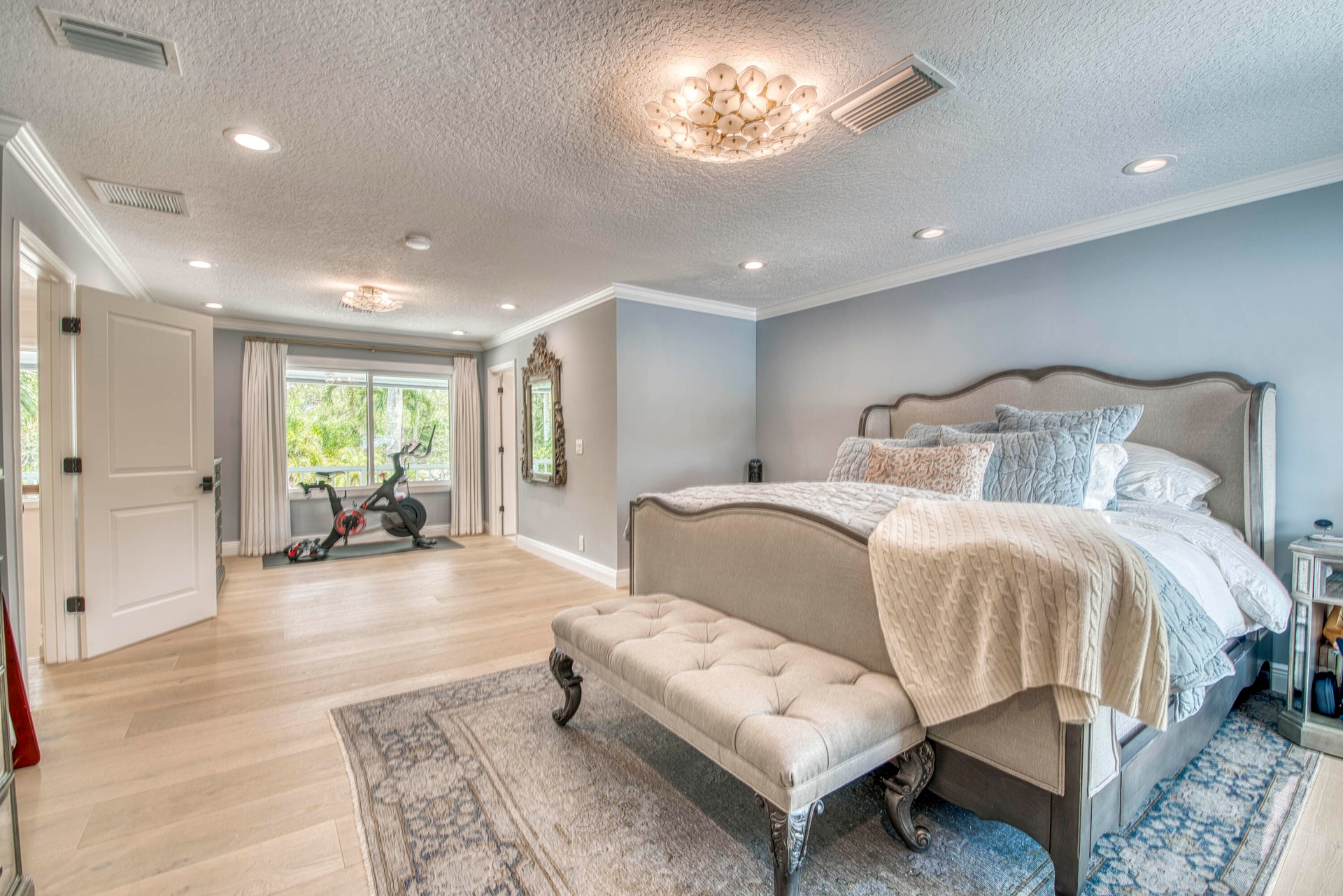 Escape to your private South Florida sanctuary, a modern French Country estate that redefines refined living on over five acres of lush, equestrian land. Here, tranquility, craftsmanship, and contemporary luxury coexist in perfect balance. Every inch of this estate has been thoughtfully redesigned, blending timeless European charm with the ease of contemporary luxury living. From the moment you arrive along the long private drive, the home reveals its elegance through vaulted, skylit ceilings, walls of glass, and wide-plank European oak flooring that flood each space with natural light. The heart of the home is the show-stopping chef's kitchen, anchored by dual oversized islands, quartz countertops, and ceiling-height custom cabinetry. A statement wood hood crowns the professional