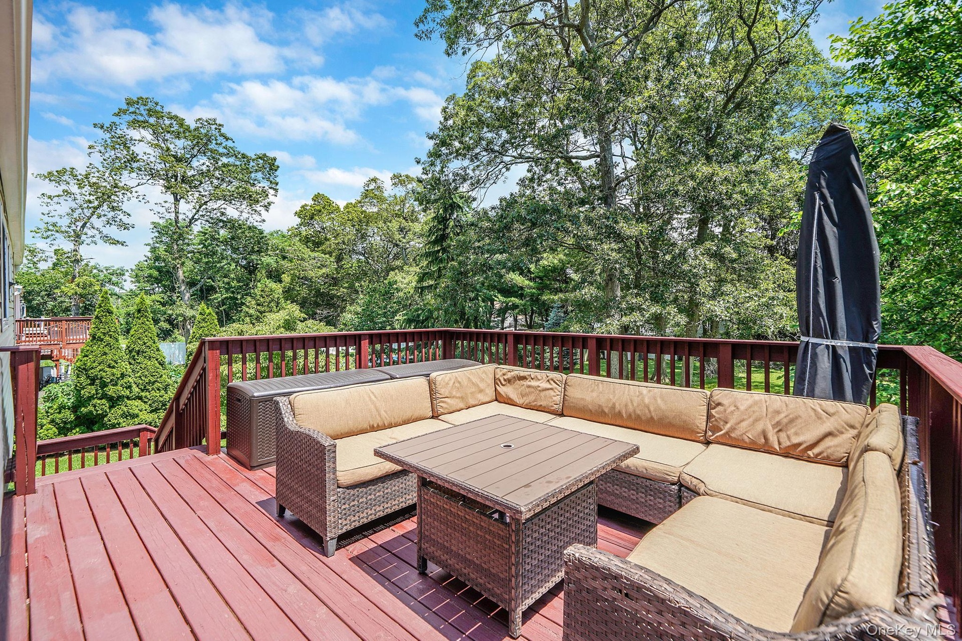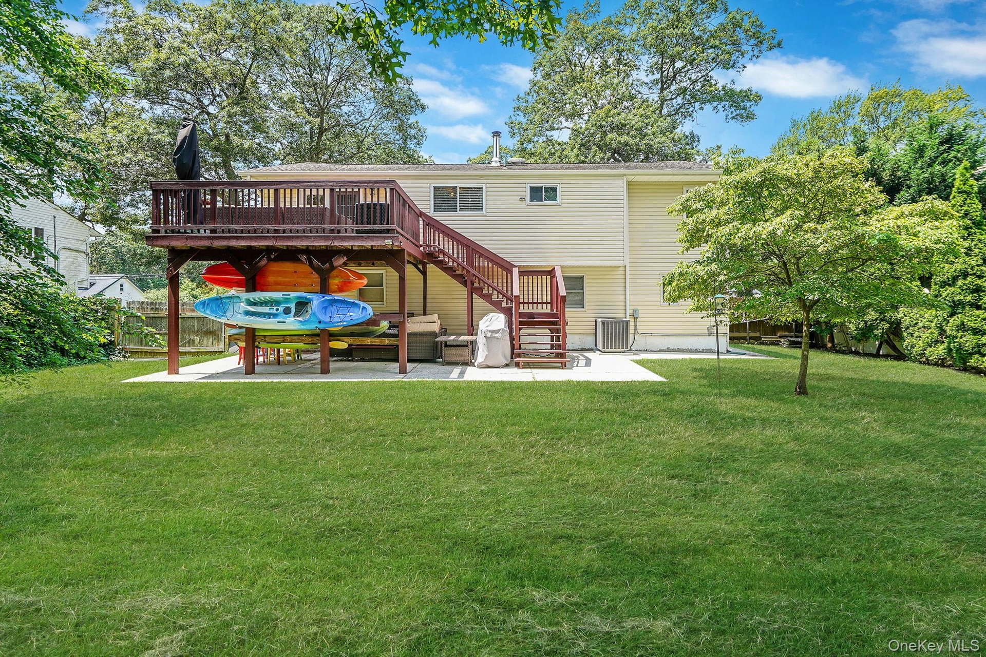 Location! Location! Welcome to this beautifully updated 4-bedroom, 2-bath home for rent in the heart of Ronkonkoma with access to all major highways and LIRR! This spacious and sun-filled residence offers a perfect blend of modern updates and classic charm. Step into the freshly painted interior featuring gleaming hardwood floors throughout, high ceilings, ceiling fans throughout the home offer added comfort year-round. and Andersen windows that bring in plenty of natural light. The updated kitchen is a chef’s dream with stainless steel appliances, tile flooring, a center island with seating, and French doors leading to the deck—ideal for entertaining. The home includes a formal dining room, den, family room, and a wet bar, providing multiple spaces to relax or gather. The main recently updated bathroom features with subway tile, a marble-top vanity, and a pocket door for added privacy. Enjoy the outdoors in the beautifully landscaped, fully fenced yard, complete with pavers, an expanded driveway, and plenty of space for outdoor activities. Don’t miss your chance to rent this home in a desirable location!