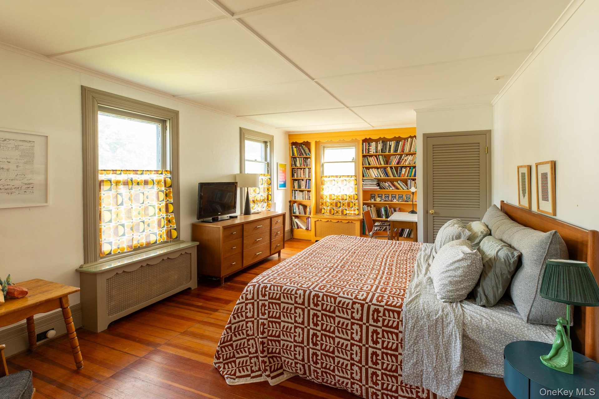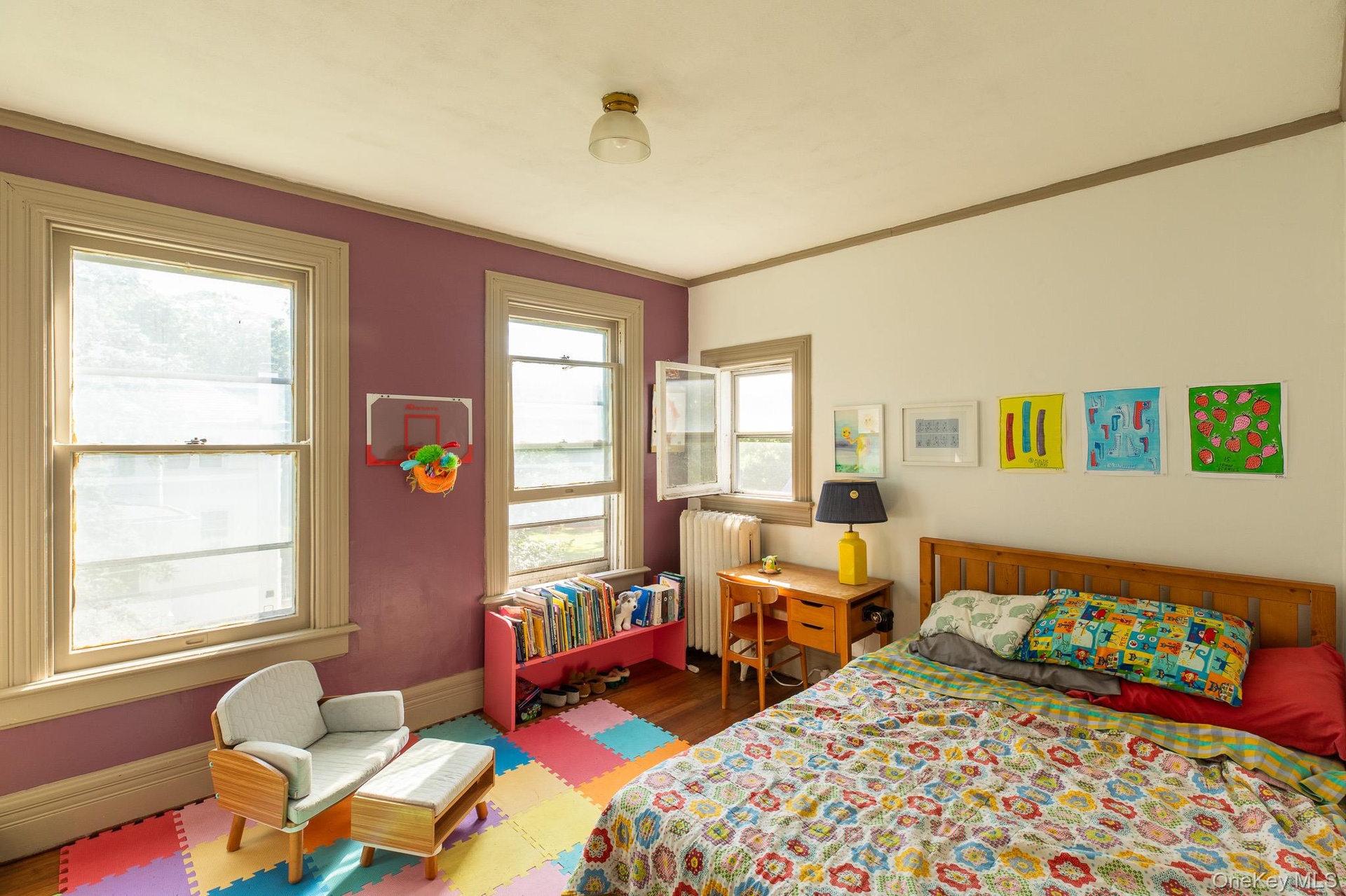 - Bedroom featuring radiator and wood finished floors