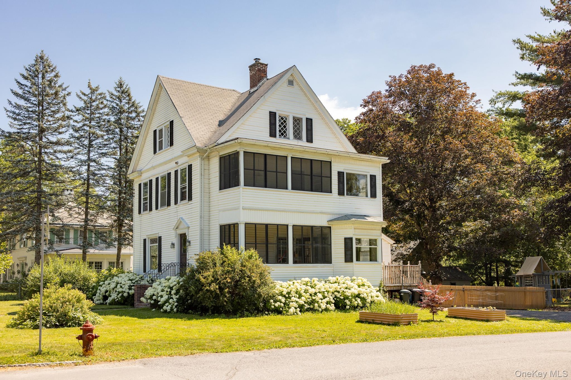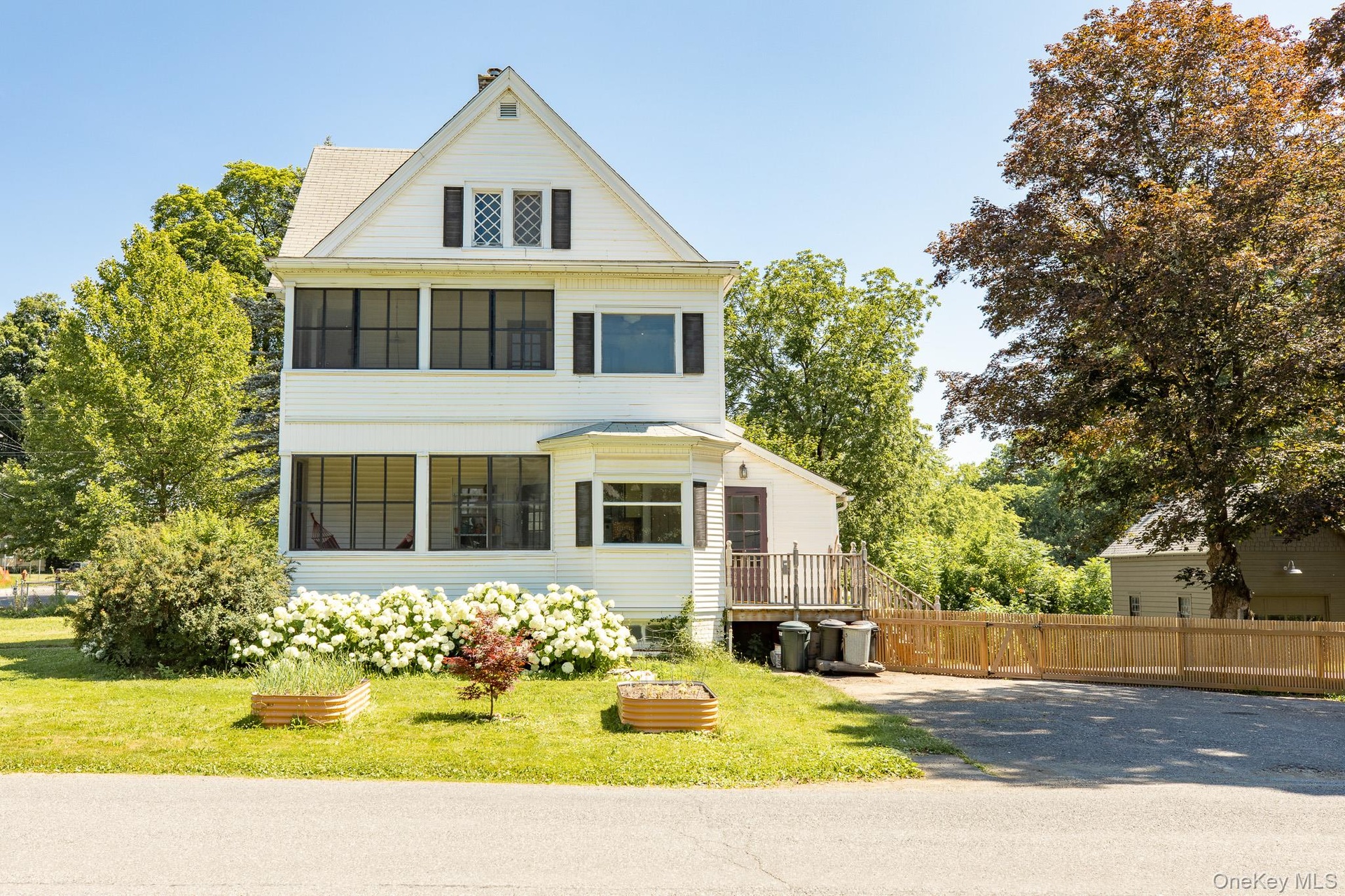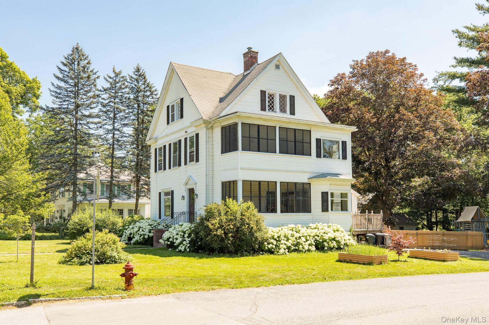 The 2,559 square foot stately home stands tall and proud in the heart of the village. The corner parcel is two doors down from the library and the Bard shuttle. The home has many updates including the kitchen, bedrooms and outdoor patio. The interior exudes charm from its antique moldings, and stained glass window to the two screened in porches, one on each level. Two staircases lead you up to the second floor that boasts large bedrooms and an office. The third floor offers a large apartment, with sitting room, bedroom, bathroom and kitchenette.