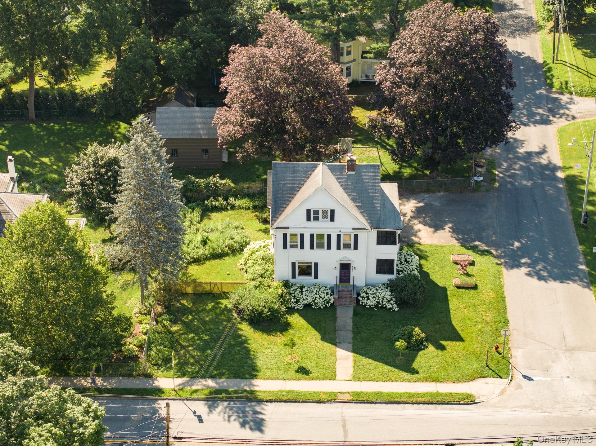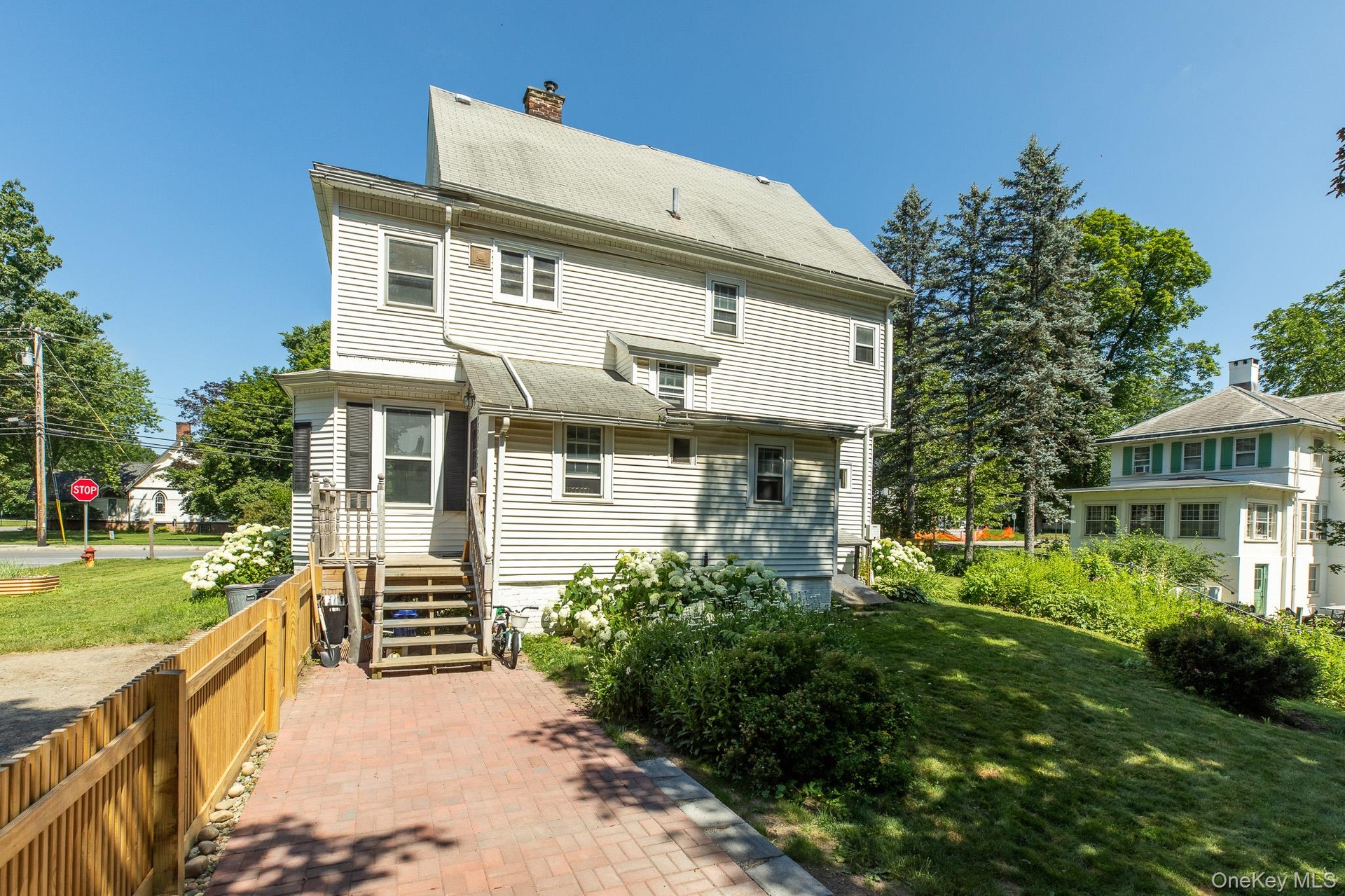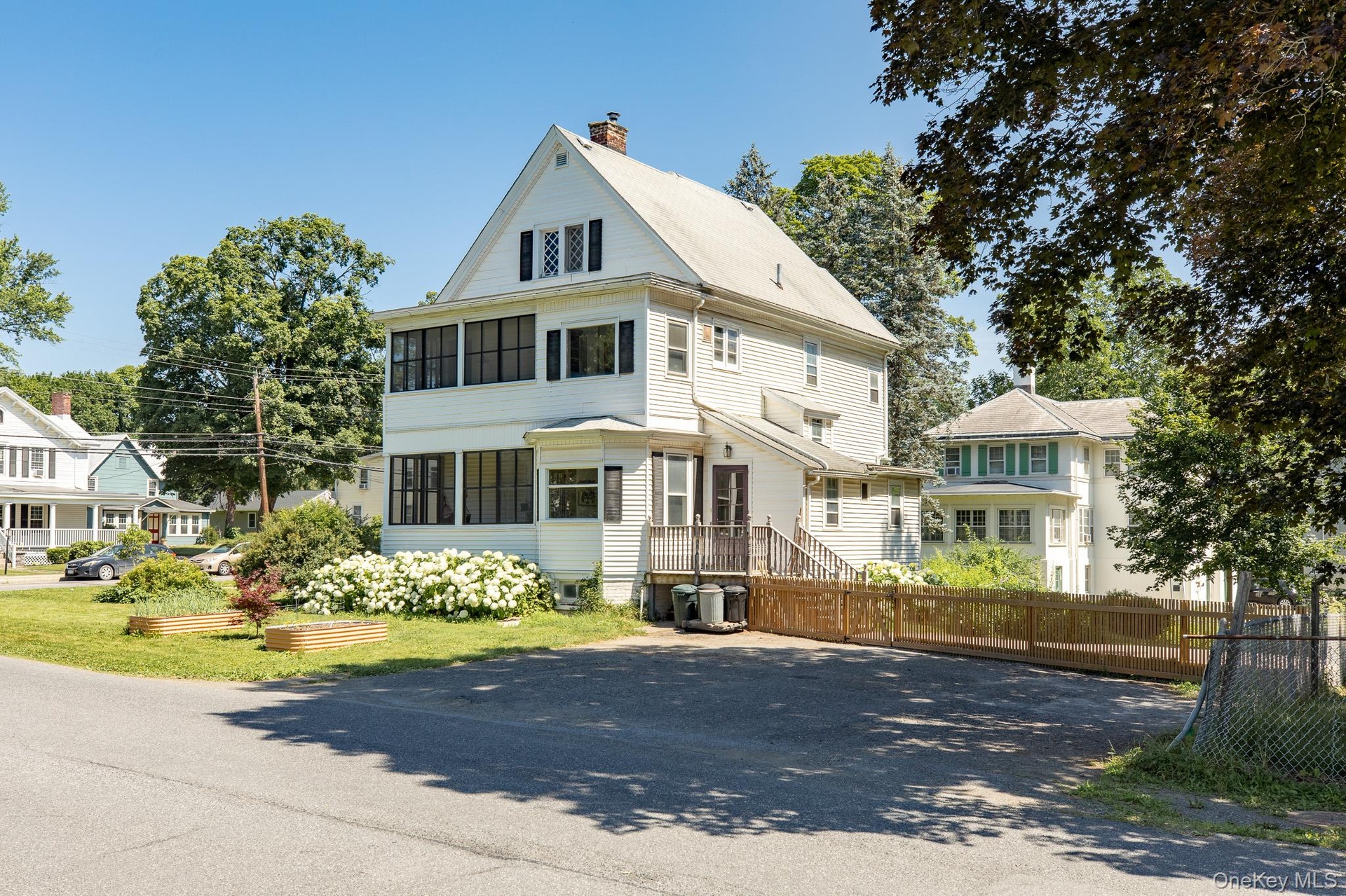 The 2,559 square foot stately home stands tall and proud in the heart of the village. The corner parcel is two doors down from the library and the Bard shuttle. The home has many updates including the kitchen, bedrooms and outdoor patio. The interior exudes charm from its antique moldings, and stained glass window to the two screened in porches, one on each level. Two staircases lead you up to the second floor that boasts large bedrooms and an office. The third floor offers a large apartment, with sitting room, bedroom, bathroom and kitchenette.