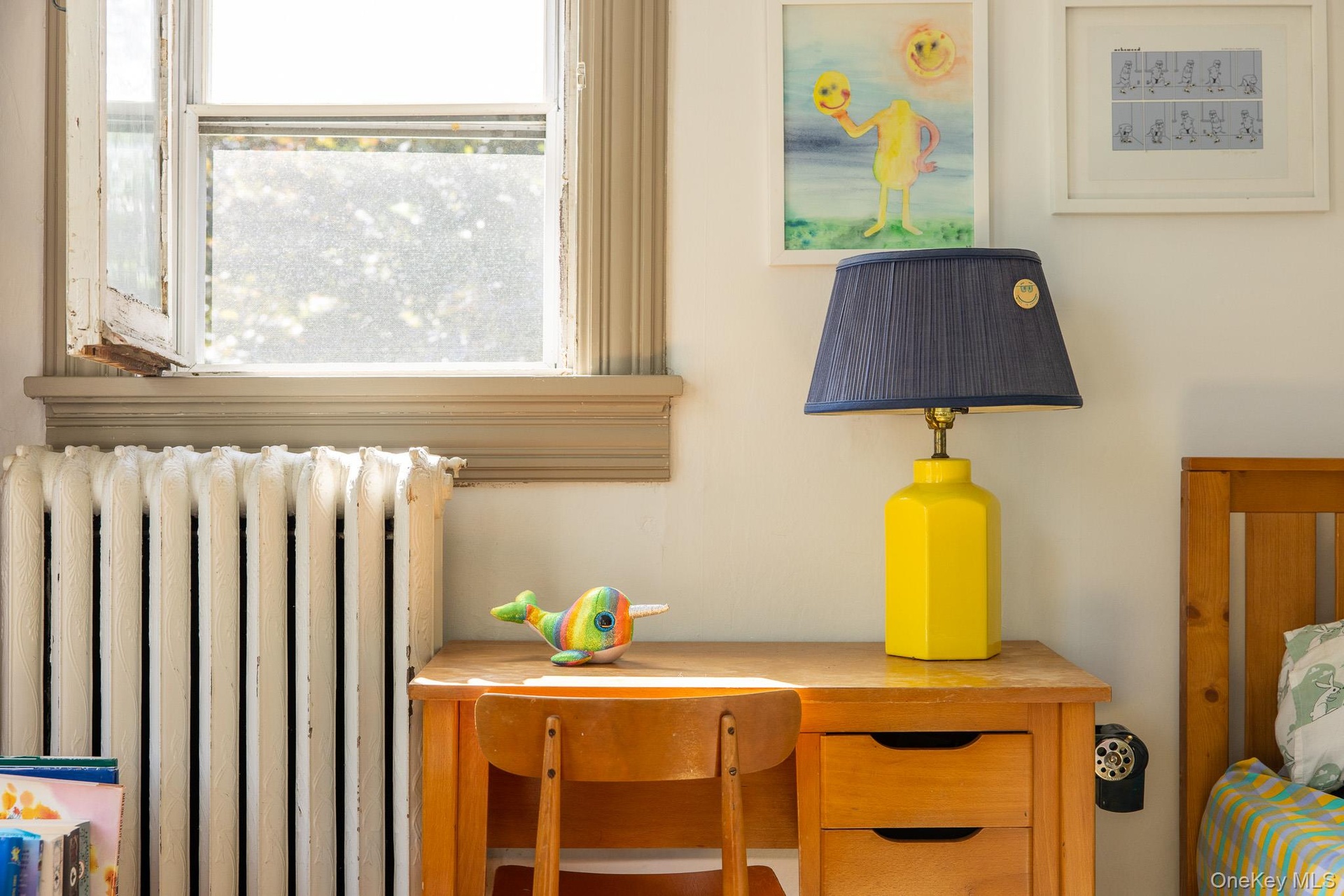 - Detailed view of radiator heating unit and an office area