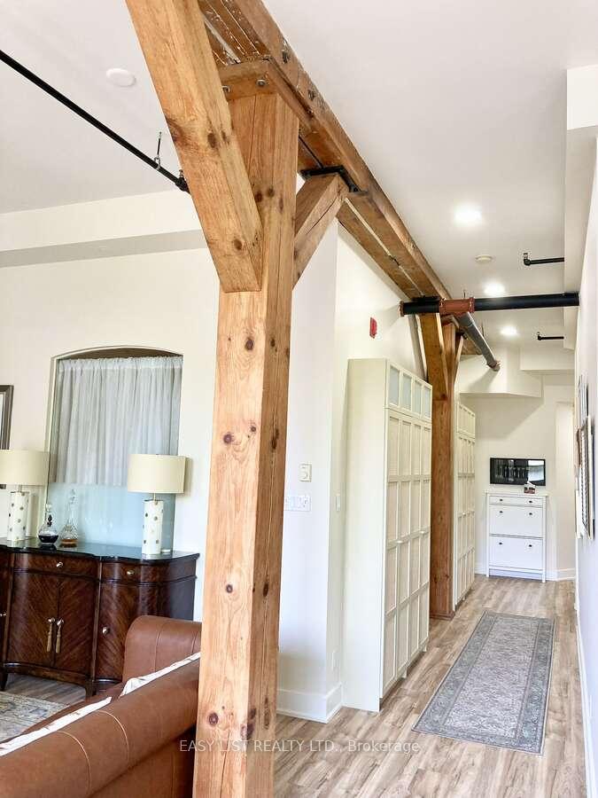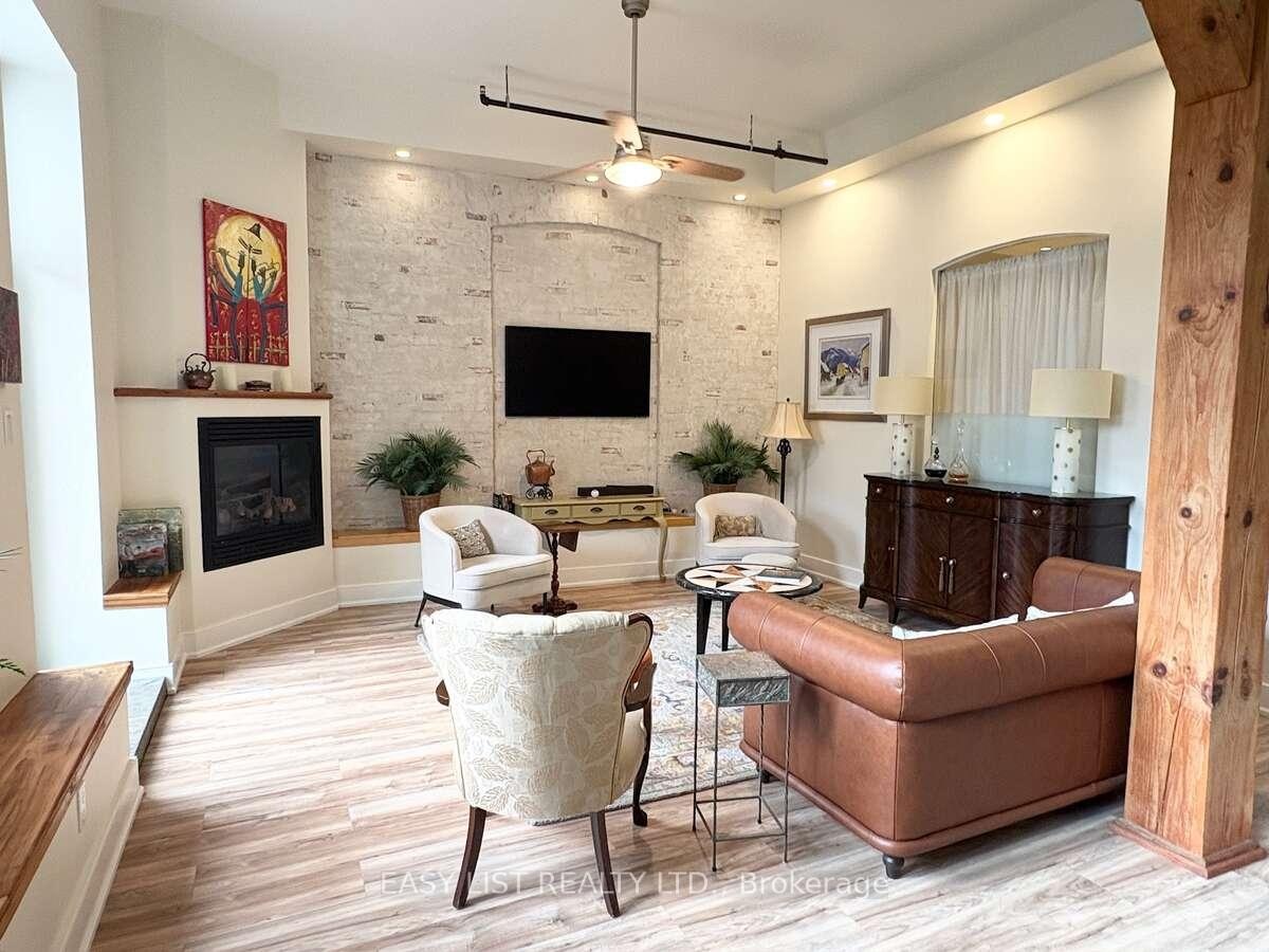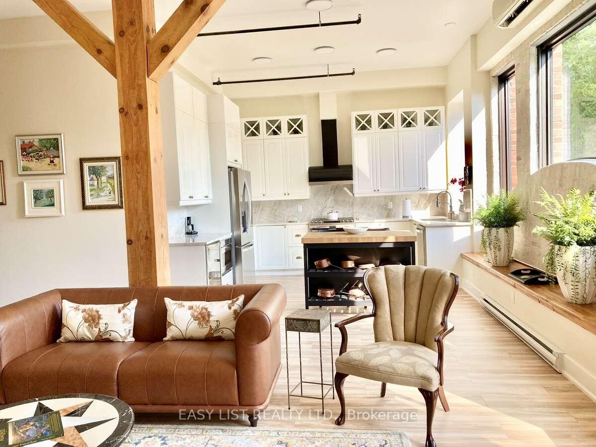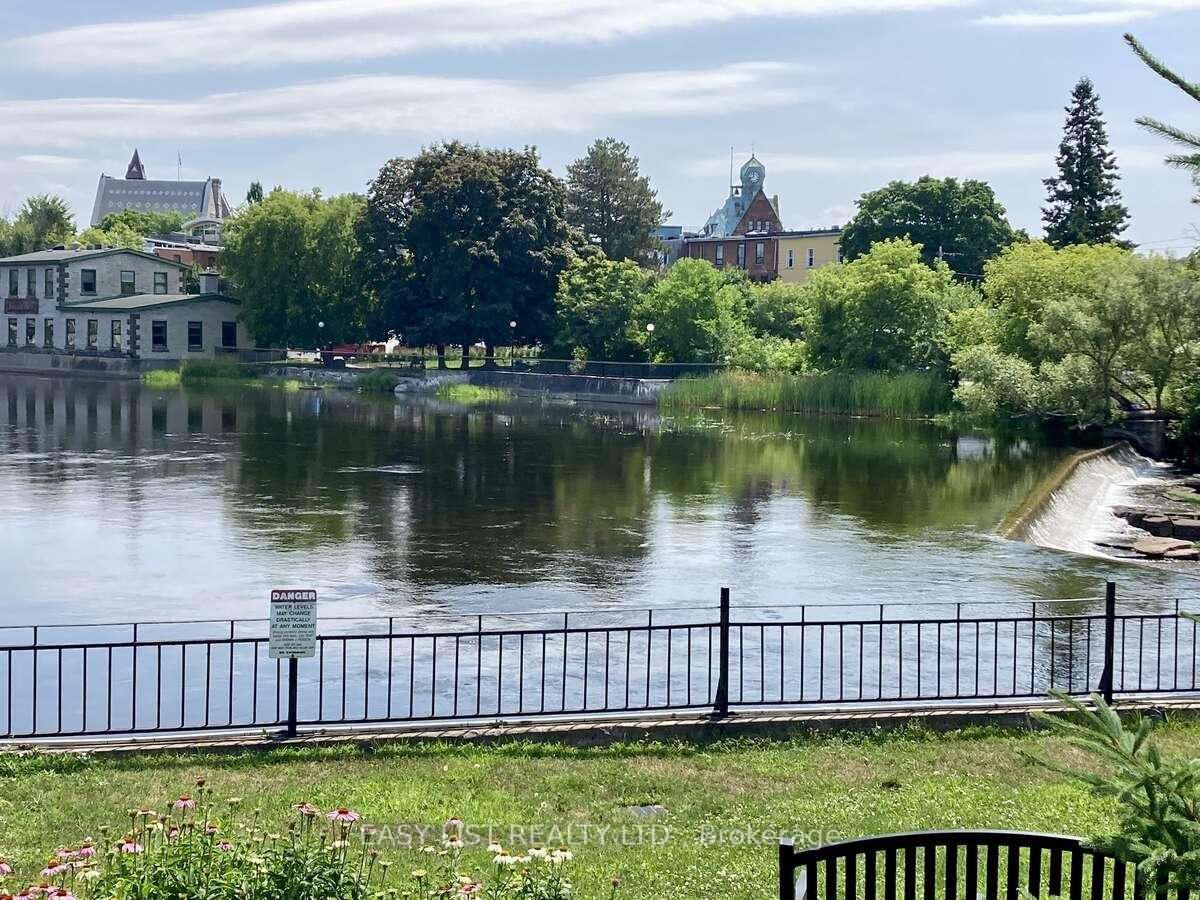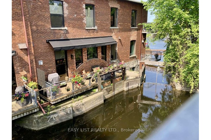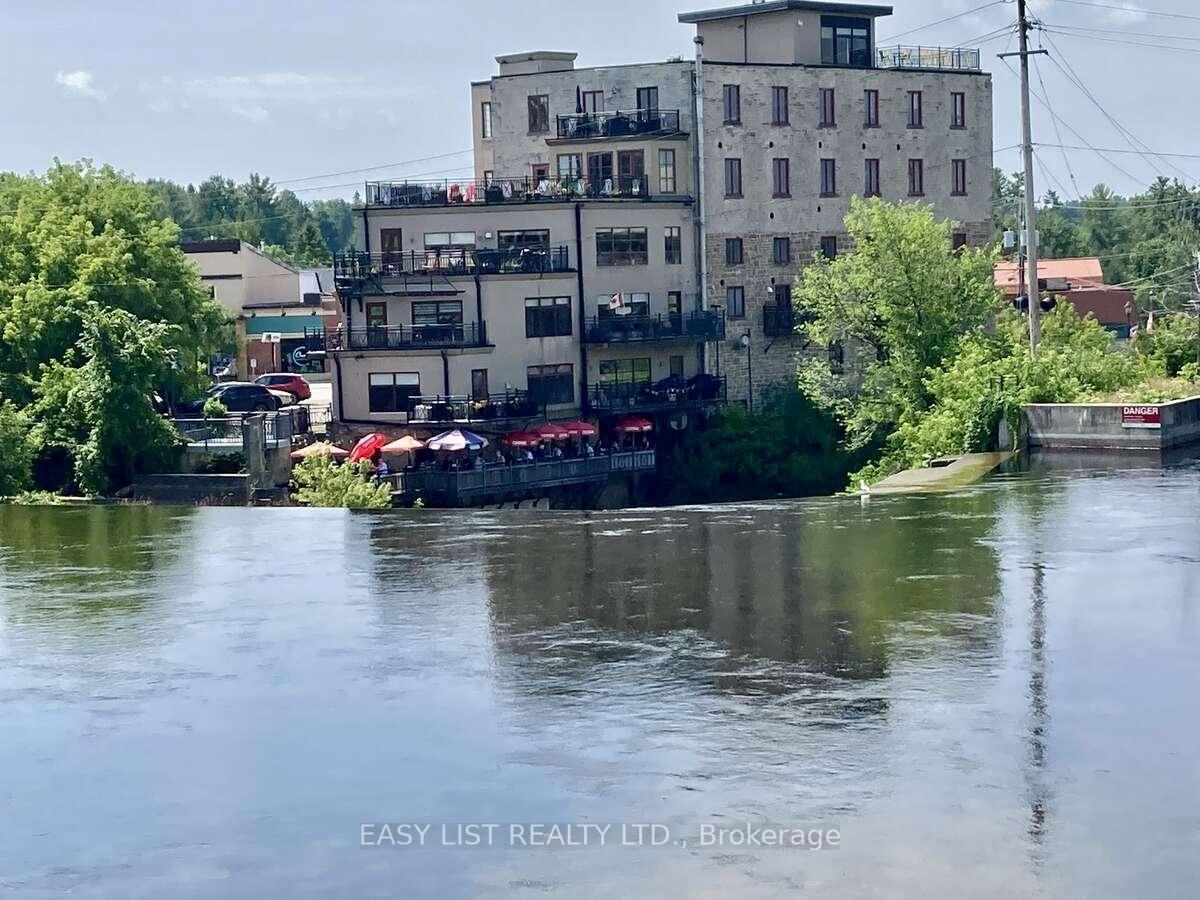 DescriptionFor more information, please click Brochure button. Heritage Waterfront Condo Downtown Almonte. Experience the perfect blend of heritage charm and modern living in this beautifully renovated 2-bedroom, 2-bathroom waterfront condo nestled in the heart of downtown Almonte. Offering direct access to the Mississippi River, this home invites you to enjoy kayaking, fishing, or simply relaxing on your private 26-foot riverside deck with peaceful views. Completely renovated in 2024, the condo features a brand-new kitchen, bathrooms, luxury vinyl flooring, lighting, fresh paint, a new deck and awning, front door, and hot water tank. The open-concept living area boasts soaring 11.4-foot ceilings, original wood beams, and a cozy natural gas fireplace. The modern kitchen includes five appliances, a wine fridge, drawer microwave, and in-unit laundry. Additional features include a gas BBQ hook-up on the deck, an owned hot water tank, and a generous 4x7x11 ft storage unit with built-in shelving conveniently located on the same level. The condo is part of a pet-friendly, non-smoking building and includes a designated parking spot and storage locker. Enjoy the convenience of downtown living just steps from Almonte's charming shops, restaurants, and trails - all while enjoying the privacy and tranquility of riverside life.Amenities- Alarm system