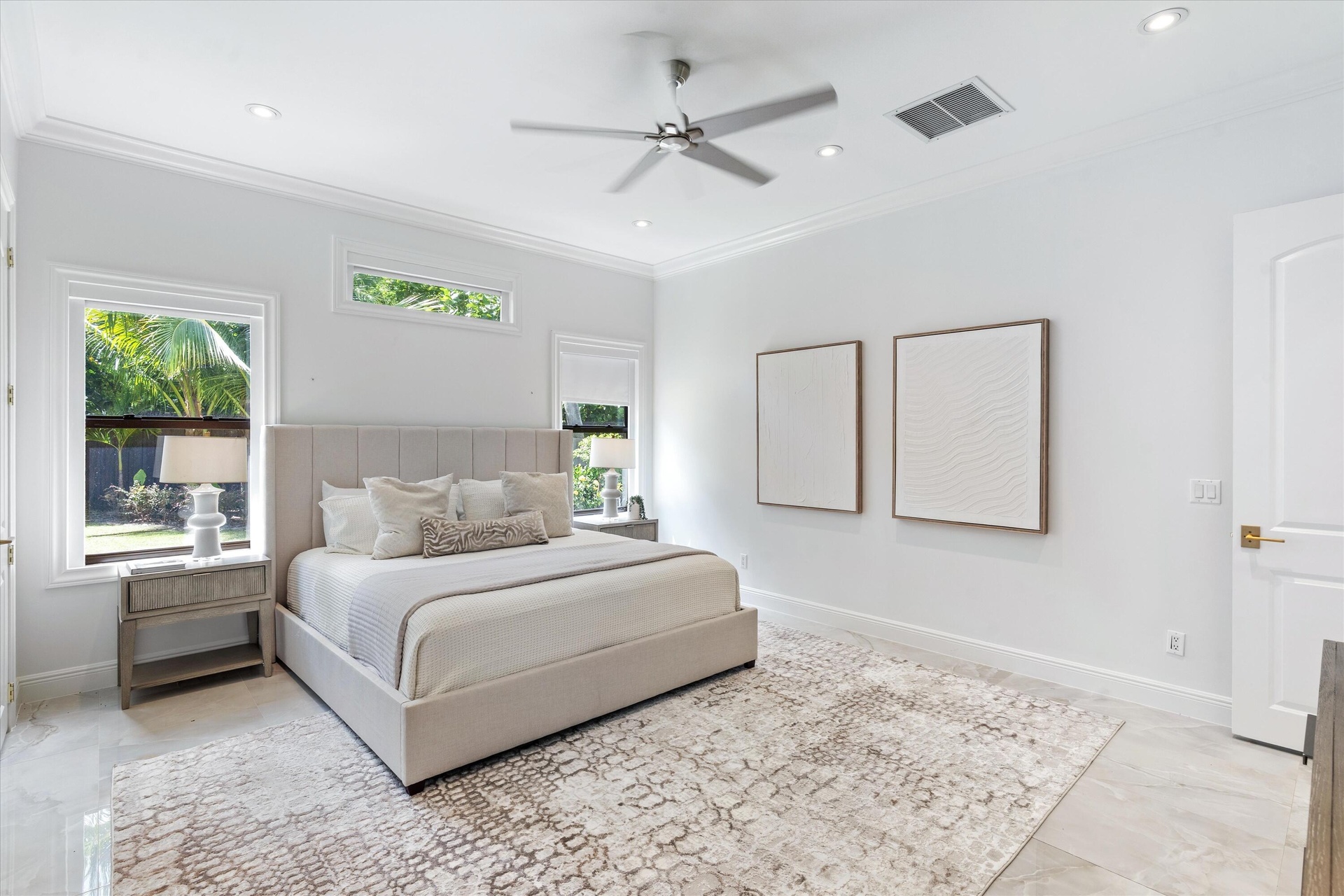 Remodeled and expanded in 2024, this elegant home offers 4,750 sq. ft. under air in a private gated community. Featuring 4 bedrooms, each with an en-suite bath and walk-in closet, plus 2 half baths and a third-floor office. The open floor plan highlights high ceilings, designer finishes, and a chef's kitchen with custom cabinetry, premium appliances, and quartzite countertops. A private courtyard pool with covered patio provides the perfect indoor/outdoor lifestyle. Additional features include a 2-car garage and 2-car carport. Ideally located near the marina, this home is perfect for boaters and just minutes from Jupiter's beaches, golf, and dining.