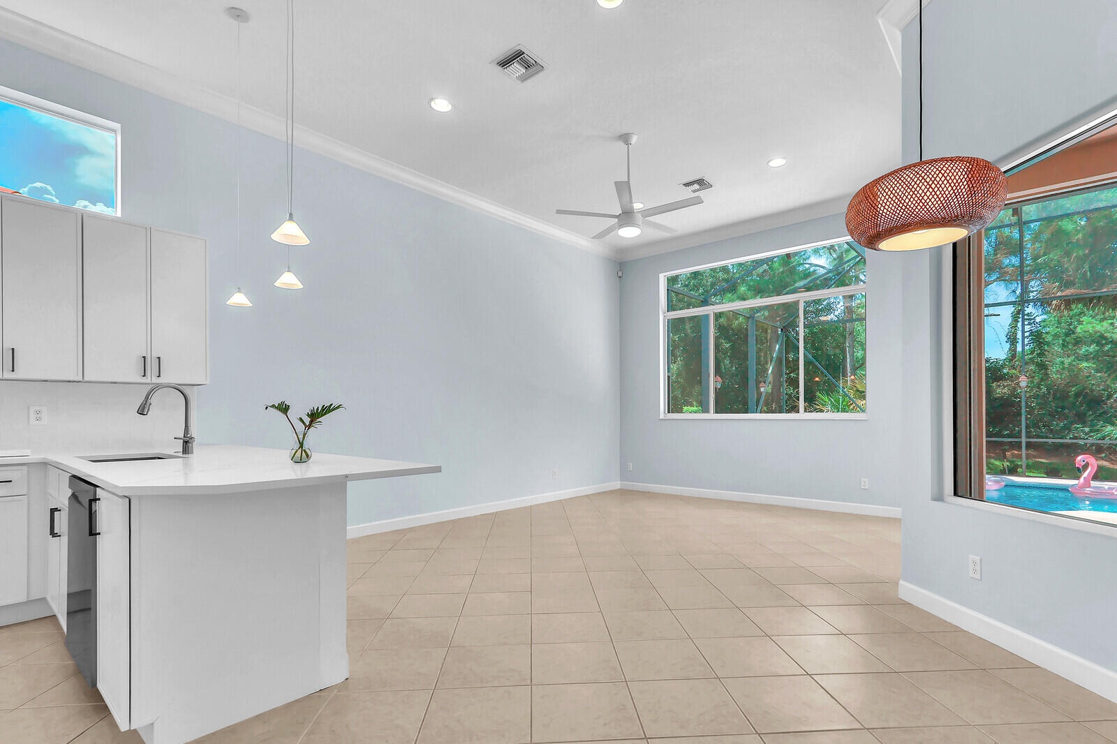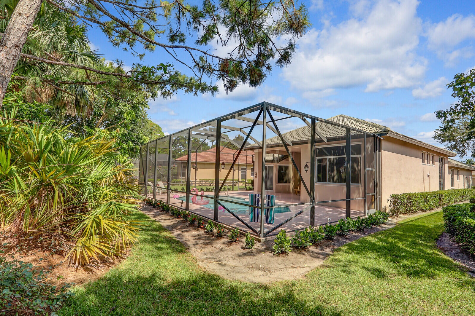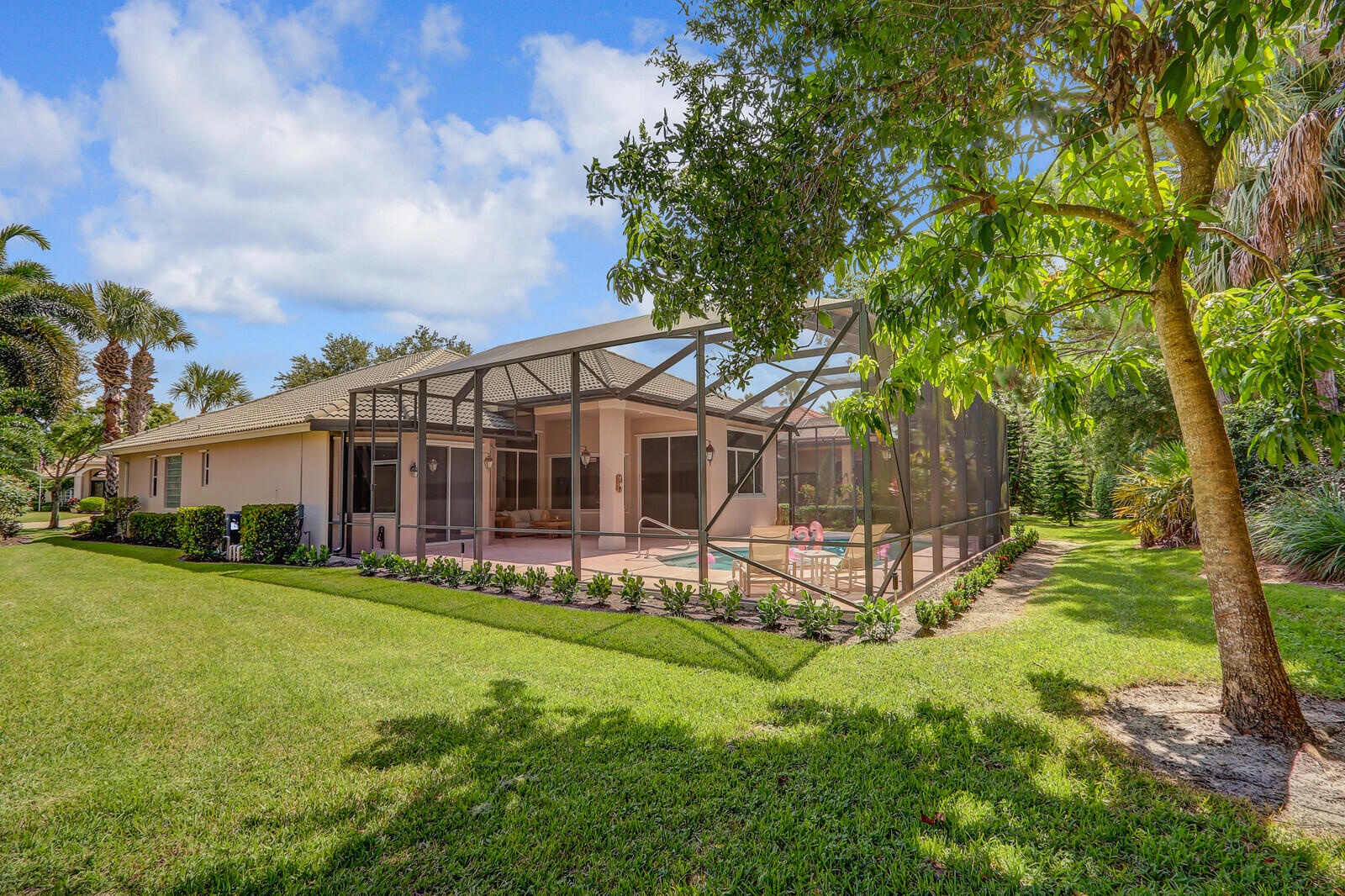 Beautiful, UPDATED 2BR with DEN home in the desirable Greenbrier neighborhood of PGA Village! This move-in-ready home features a light-filled kitchen with white cabinetry, sleek SS appliances, & stunning quartz countertops accented by a stylish tile backsplash. A breakfast bar opens seamlessly into the spacious family room--perfect for casual gatherings. Entertain effortlessly in the expansive living & dining areas, or step out to the large, screened lanai that overlooks a sparkling pool, ideal for outdoor relaxation & hosting guests. The generous primary suite offers ultimate comfort with two walk-in closets featuring custom built-ins & plush new carpeting. The luxurious ensuite bath boasts white cabinetry, new quartz countertops, & a fresh elegant design. Split floor plan ensures privacy