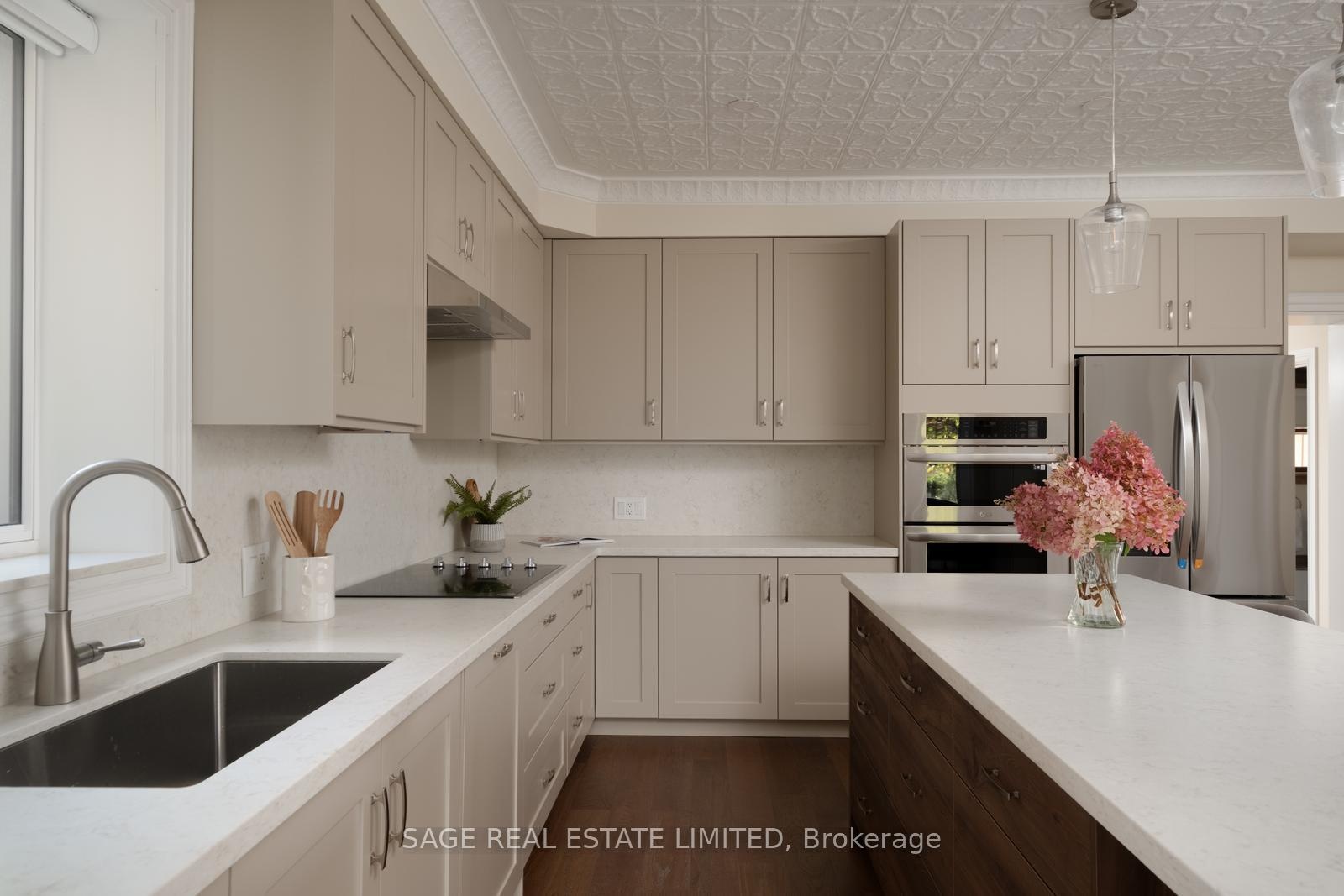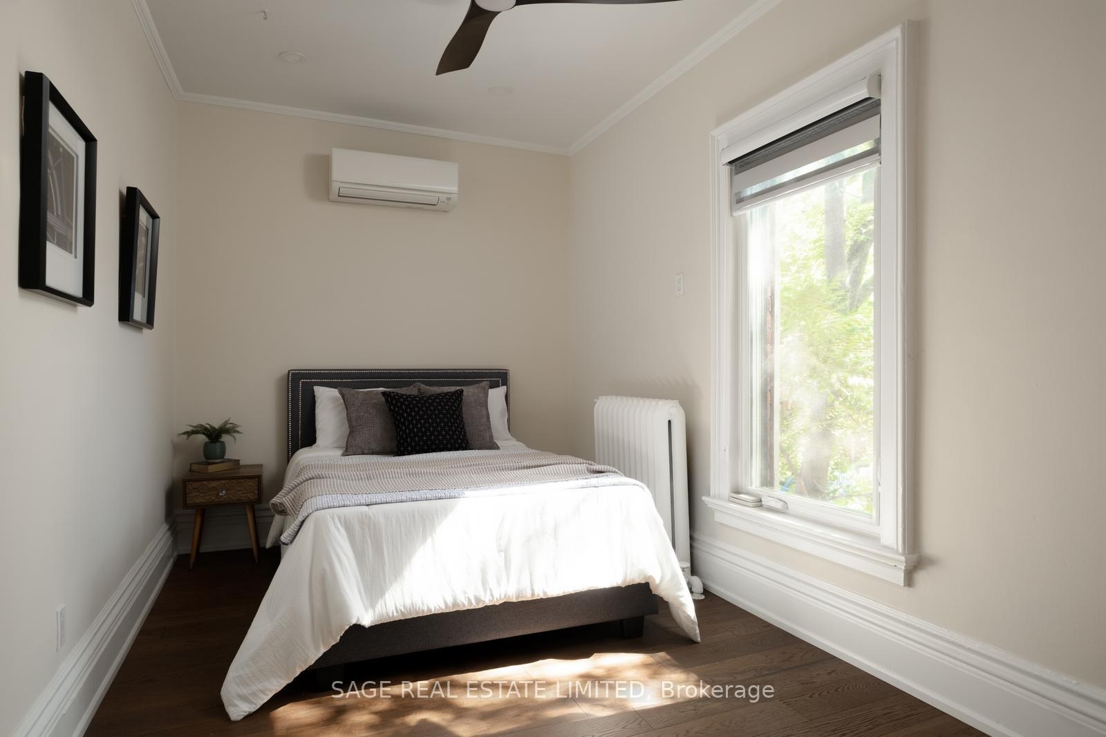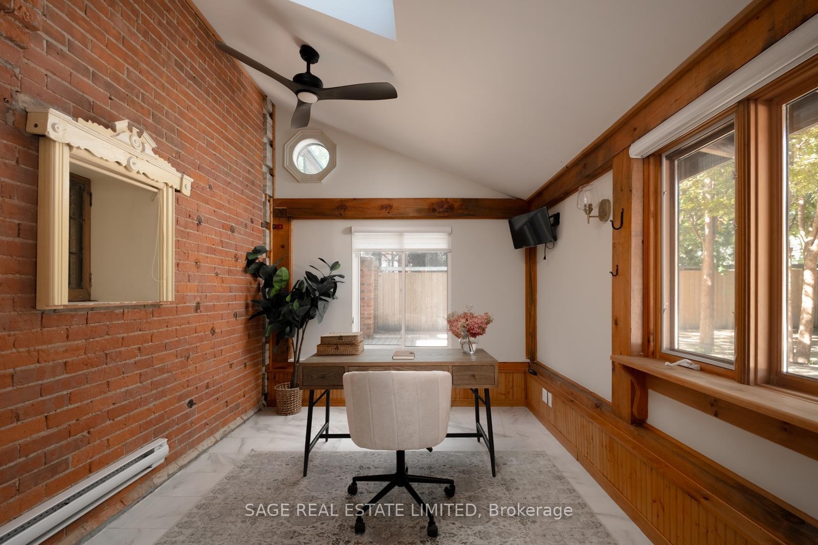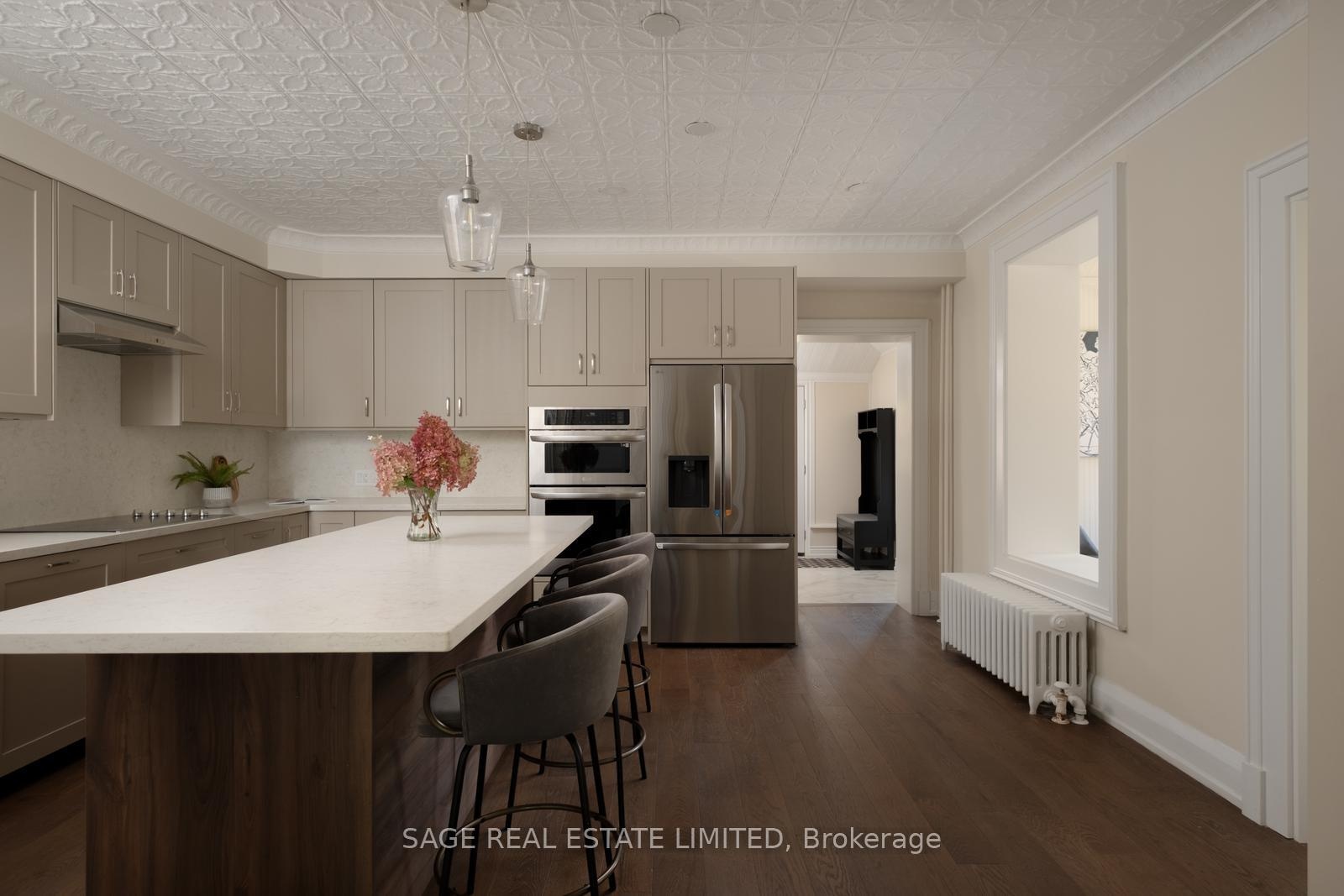 14 Halton Street A Rare, Renovated Detached Gem in the Heart of Trinity BellwoodsWelcome to 14 Halton Street, an iconic detached red-brick beauty tucked behind a private gate on one of the citys most sought-after streets. Lovingly renovated to preserve its period charm while embracing modern living, this exceptional home offers rare space, privacy, and style in the vibrant Ossington/Trinity Bellwoods neighbourhood.Step inside to discover expansive principal rooms with hardwood floors, soaring ceilings, and original architectural details. The grand formal living room features a statement period fireplace and oversized windows that flood the space with natural light. A spacious formal dining room is ideal for entertaining, while the stunning modern chefs kitchen boasts a large island, high-end appliances, and a bright eat-in area perfect for everyday living.A unique highlight is the main floor office/sunroom, surrounded by windows with a walkout to the deck ideal for working from home or soaking up the sun year-round.Upstairs, the primary suite is a private retreat with a large walk-in closet, custom built-ins, and a luxurious 4-piece ensuite overlooking the garden. Three additional generously sized bedrooms with hardwood floors and ample closet space complete the second level.The finished lower level adds versatility with a recreation room, family area, workout space, and plenty of storage.Step outside to your own urban oasis: a lush, treed, and fully fenced private garden perfect for relaxing, entertaining, or enjoying quiet mornings. At the rear, you'll find a rare, detached double garage with laneway access.Located just steps from Trinity Bellwoods Park, the Ossington Strip, Queen West, and top-rated schools, cafes, restaurants, shops, and transit. This is downtown living at its absolute best.
