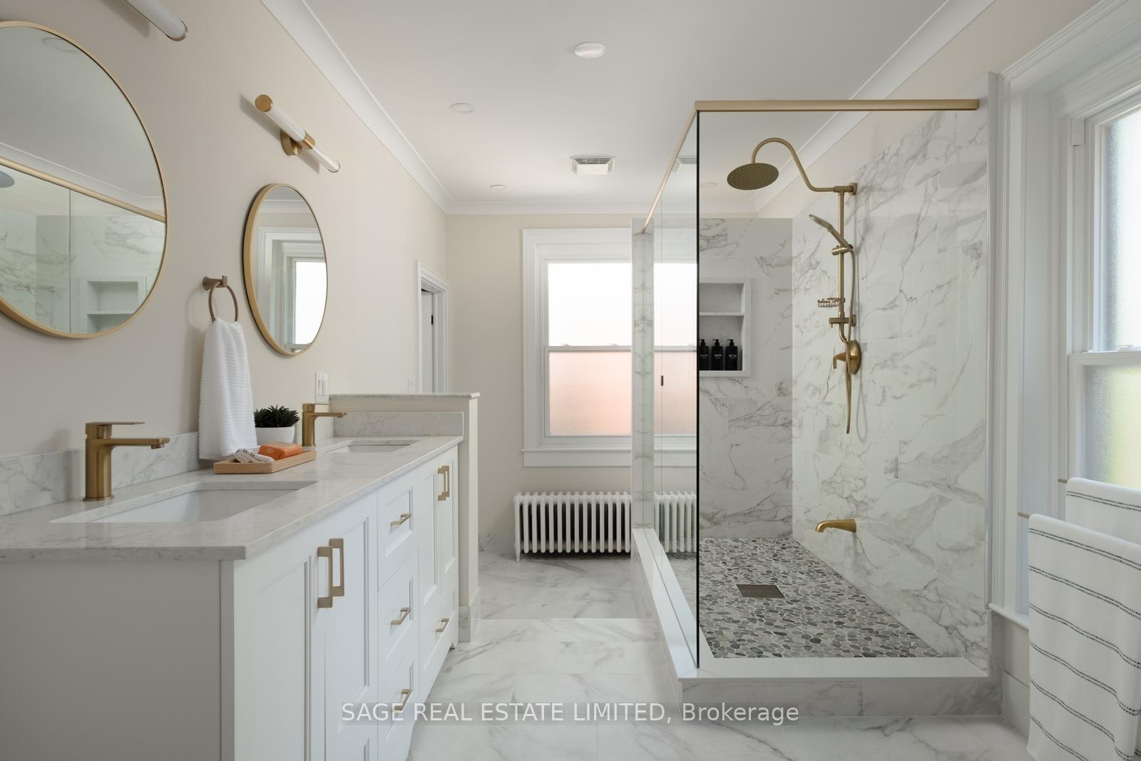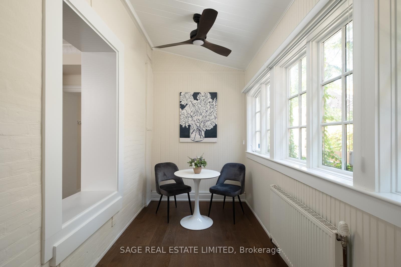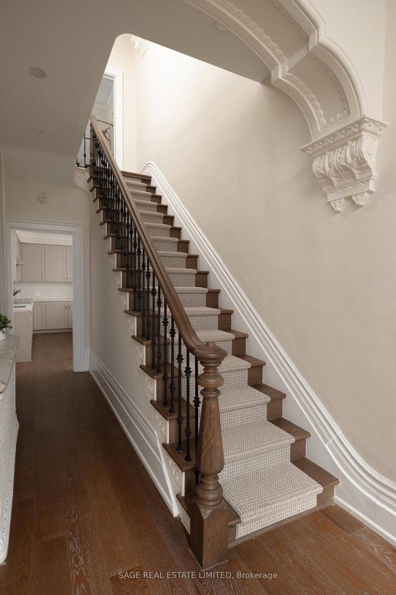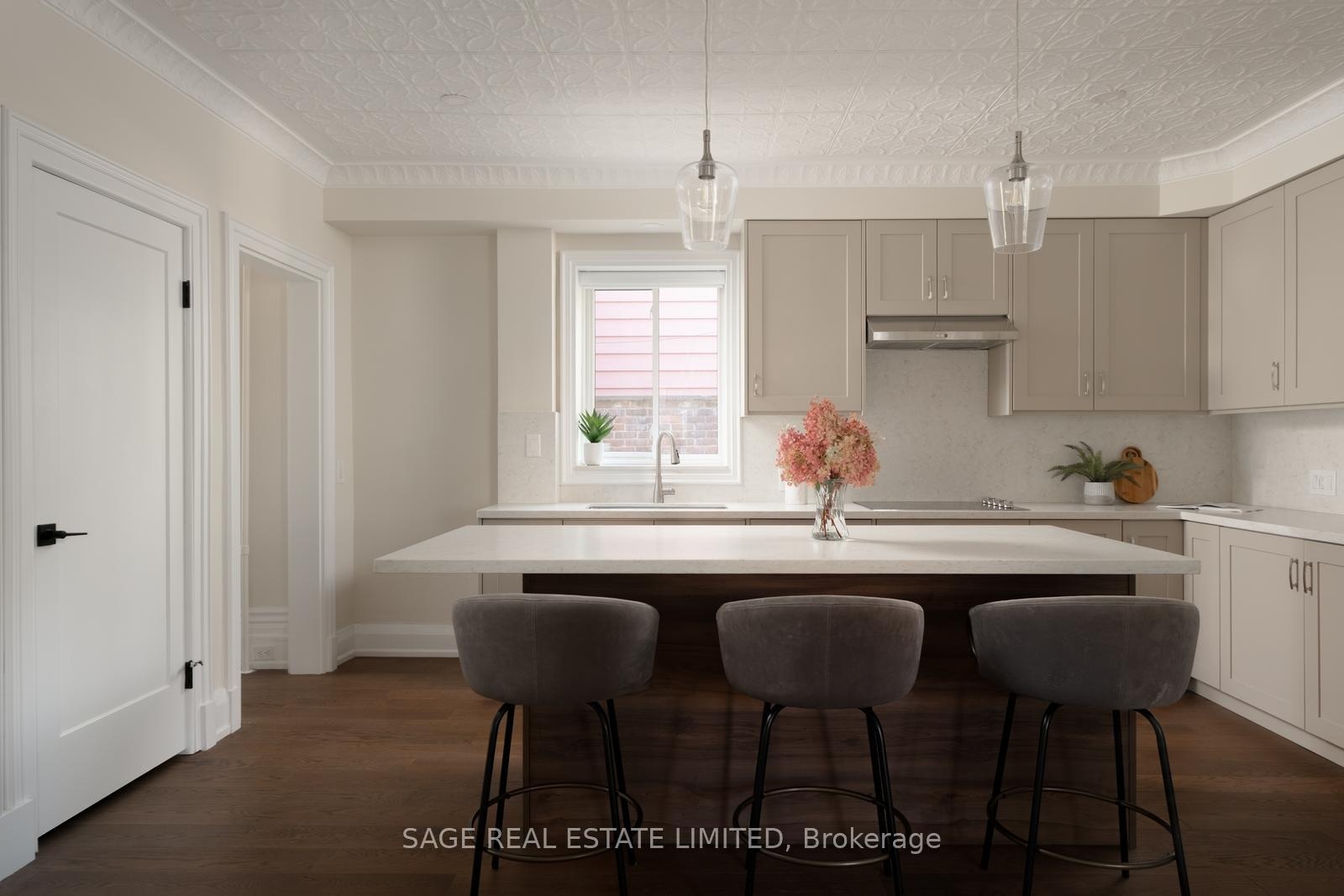 14 Halton Street A Rare, Renovated Detached Gem in the Heart of Trinity BellwoodsWelcome to 14 Halton Street, an iconic detached red-brick beauty tucked behind a private gate on one of the citys most sought-after streets. Lovingly renovated to preserve its period charm while embracing modern living, this exceptional home offers rare space, privacy, and style in the vibrant Ossington/Trinity Bellwoods neighbourhood.Step inside to discover expansive principal rooms with hardwood floors, soaring ceilings, and original architectural details. The grand formal living room features a statement period fireplace and oversized windows that flood the space with natural light. A spacious formal dining room is ideal for entertaining, while the stunning modern chefs kitchen boasts a large island, high-end appliances, and a bright eat-in area perfect for everyday living.A unique highlight is the main floor office/sunroom, surrounded by windows with a walkout to the deck ideal for working from home or soaking up the sun year-round.Upstairs, the primary suite is a private retreat with a large walk-in closet, custom built-ins, and a luxurious 4-piece ensuite overlooking the garden. Three additional generously sized bedrooms with hardwood floors and ample closet space complete the second level.The finished lower level adds versatility with a recreation room, family area, workout space, and plenty of storage.Step outside to your own urban oasis: a lush, treed, and fully fenced private garden perfect for relaxing, entertaining, or enjoying quiet mornings. At the rear, you'll find a rare, detached double garage with laneway access.Located just steps from Trinity Bellwoods Park, the Ossington Strip, Queen West, and top-rated schools, cafes, restaurants, shops, and transit. This is downtown living at its absolute best.
