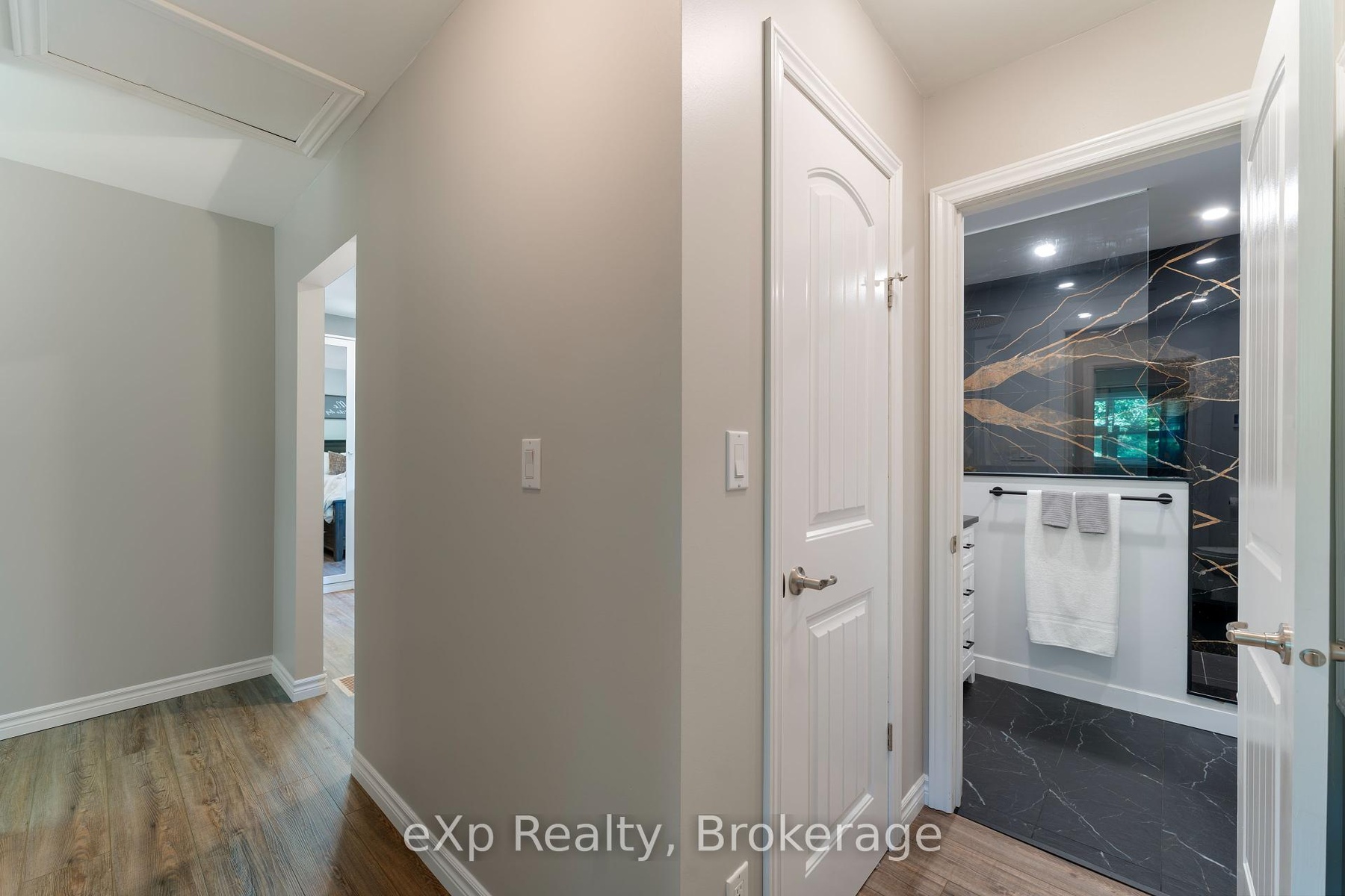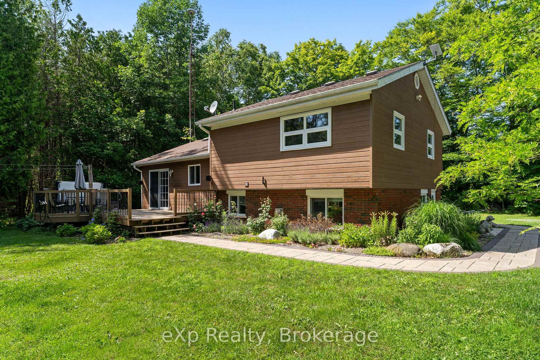 Welcome to your own private retreat nestled on 40 acres of peaceful countryside just outside of Sauble Beach. This exceptional property offers the perfect blend of rural charm and modern comfort, featuring a meticulously maintained and spacious 2-bedroom plus a den, 2-bathroom sidesplit home with beautiful upgrades throughout. Whether you're looking for a hobby farm, private nature getaway, or an opportunity to run a small business from home, this versatile property is packed with potential. As you arrive, you're greeted by a paved driveway (2023) that leads you through a beautifully landscaped setting. The home offers an open-concept design thats warm and inviting, ideal for entertaining or relaxing in peaceful surroundings. The spacious living area flows seamlessly into the dining and kitchen spaces, creating an ideal gathering spot with natural light and views of the surrounding nature. Pride of ownership is evident with numerous recent updates, including a new roof (approx. 7 years), updated siding (approx. 6 years), and septic system (approx. 7 years). The main bathroom has been tastefully renovated and features heated flooring, perfect for cozy mornings year-round. Step outside and enjoy the tranquil beauty of the grounds. The yard is landscaped with stamped concrete walkways (2022) and patio areas, perfect for summer entertaining or enjoying quiet evenings in the hot tub under the stars. Follow your own private trails through the woods or pick apples in your small on-site orchard, theres no shortage of ways to connect with nature here. The oversized drive shed is a major highlight, offering plenty of room for all your recreational toys, tools, and equipment. It features both hydro and water, and is equipped with two horse stalls with access to pasture ideal for horse lovers or hobby farmers. In addition, a separate grooming station is fully serviced with hydro and water, making it ideal for personal use or operating a small animal care business from home.