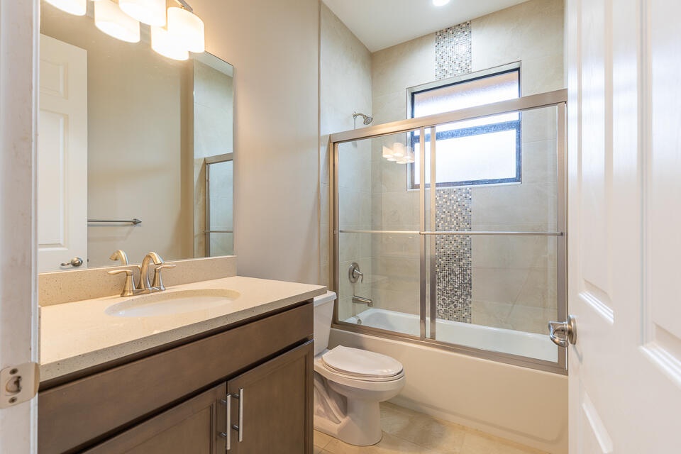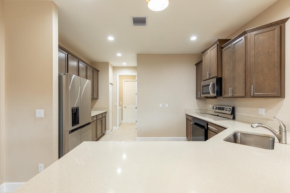 MAJOR PRICE REDUCTION!!!! CORPORATE OWNER. Wonderful 5 bedroom, 3 bath, 2 car garage home. Features include full impact glass windows and sliders, fenced in yard, tile flooring in all living areas and bathrooms, vinyl flooring in bedrooms. Tile and glass inserts in all baths, all cabinets upgraded to level 4 (even laundry room) with self-close doors and drawers. Quartz tops in kitchen and baths, stainless steel appliances, washer & dryer conveys. This home will not disappoint. Some photos have been virtually staged.
